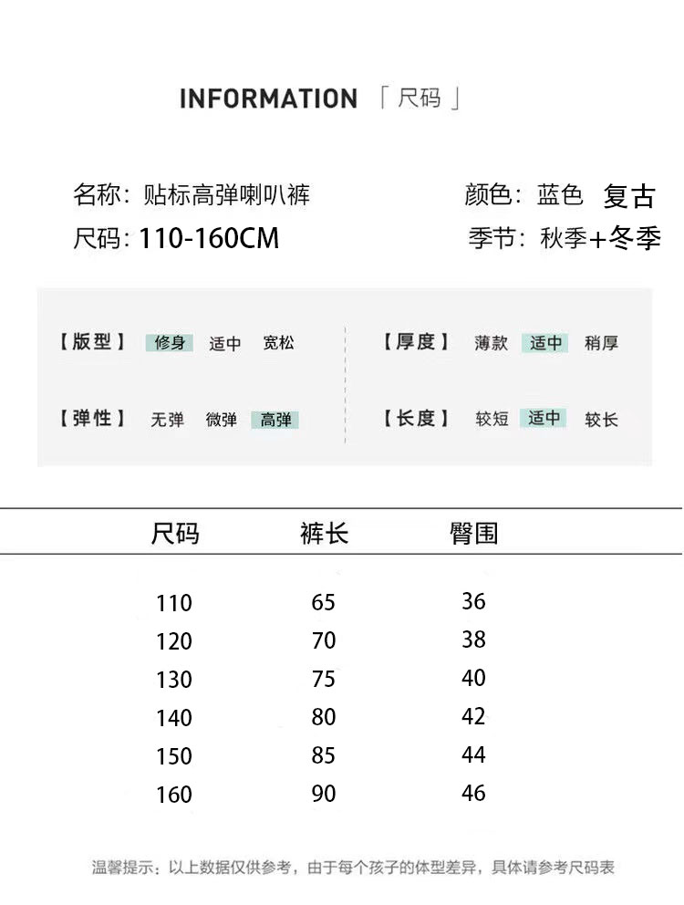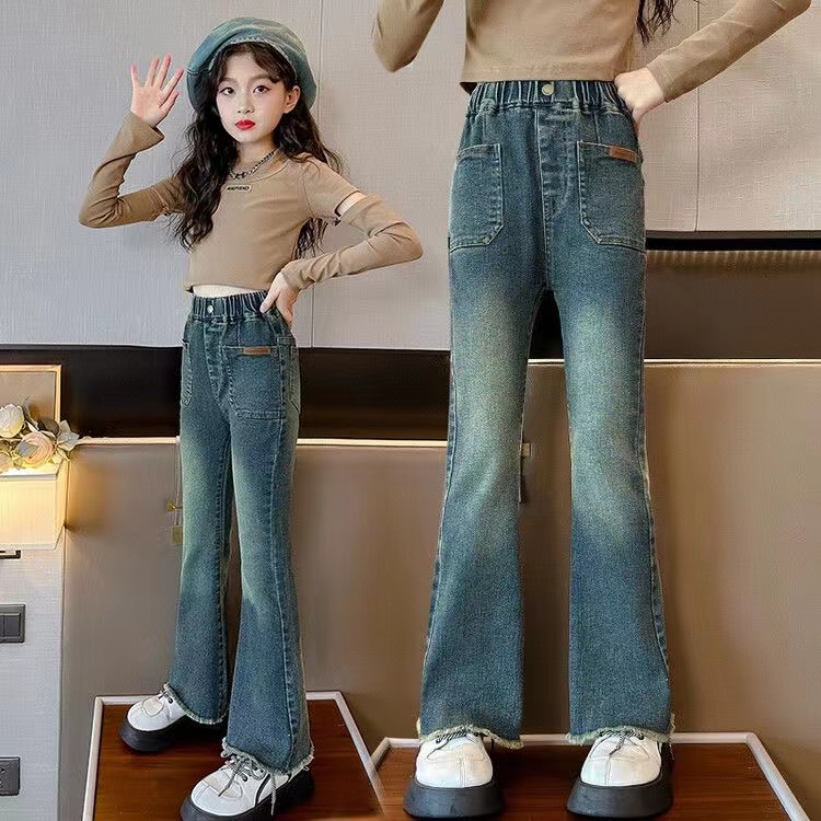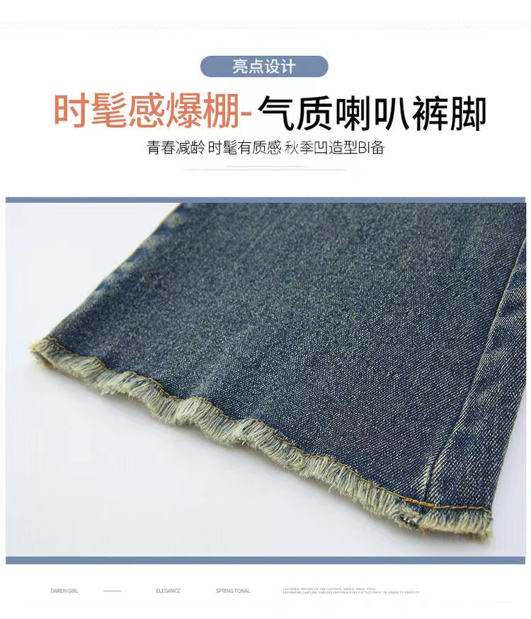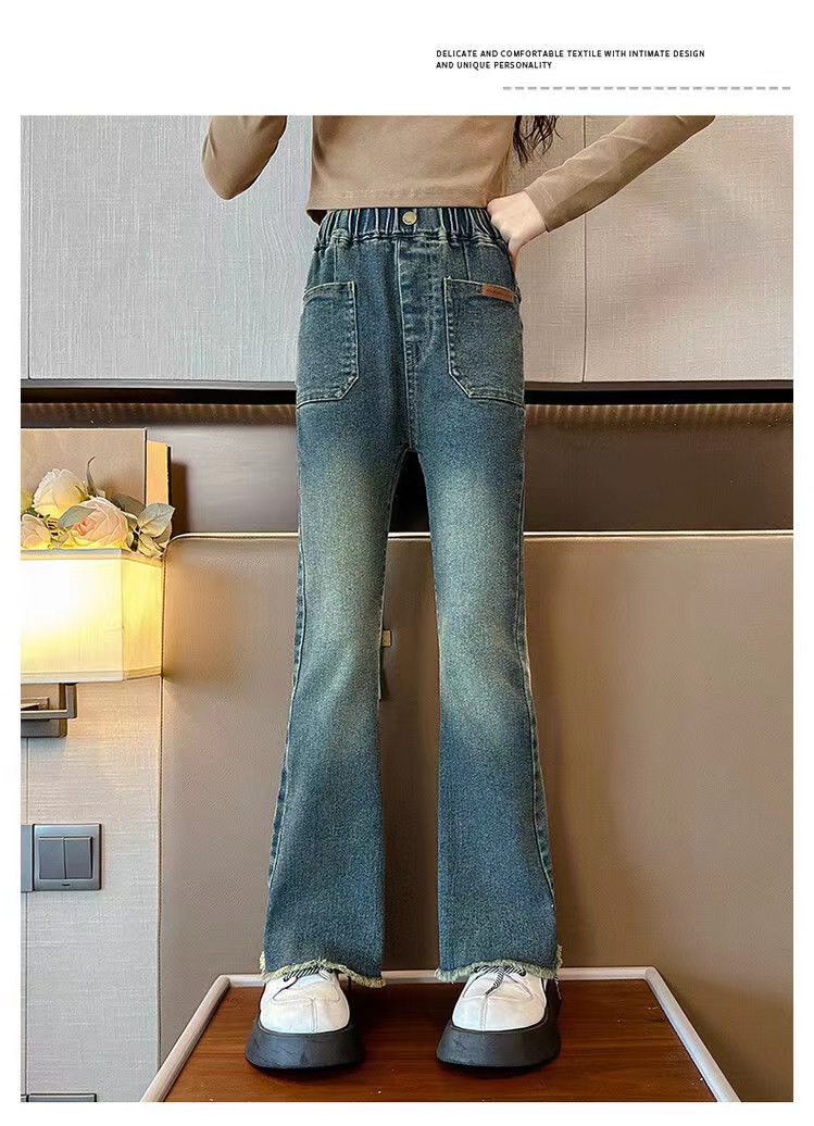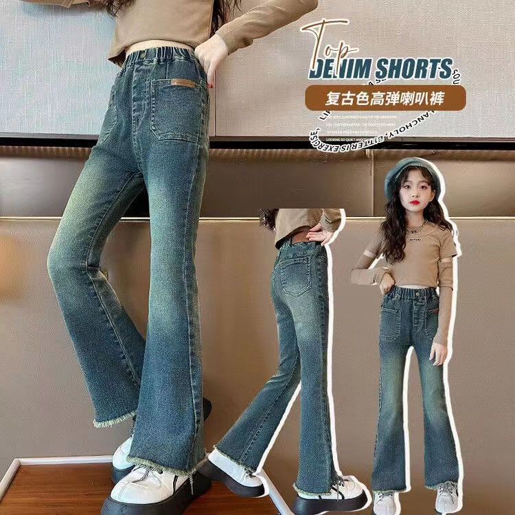 悠卡漫春秋款女童牛仔裤儿童喇叭裤女孩时髦裤子外穿中大童长裤