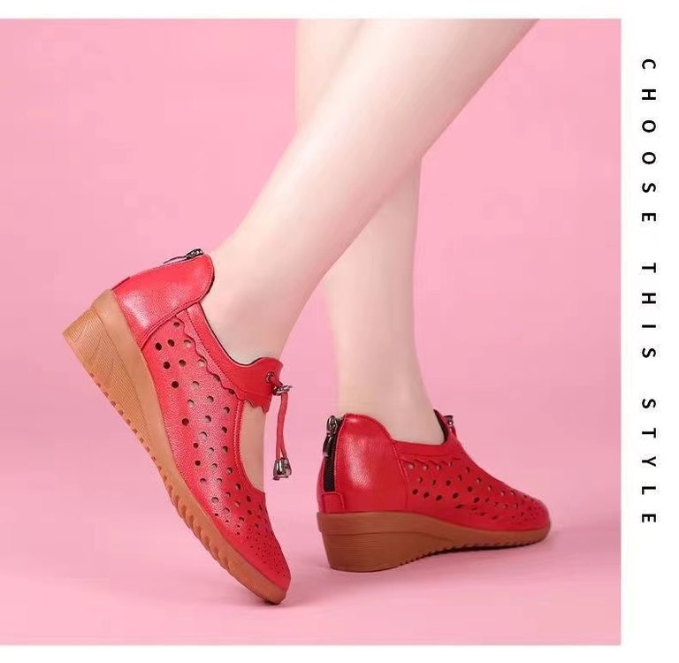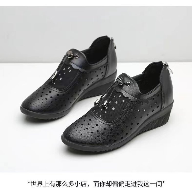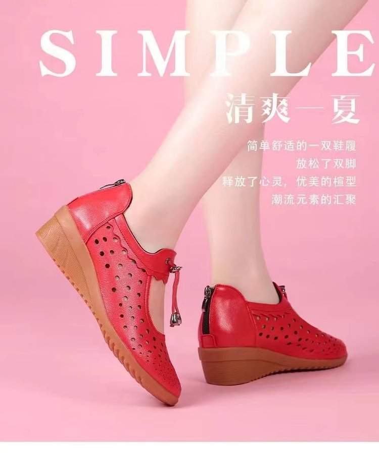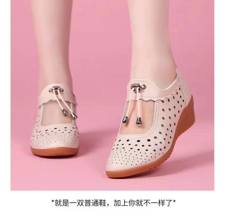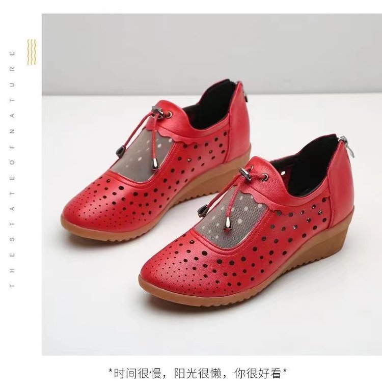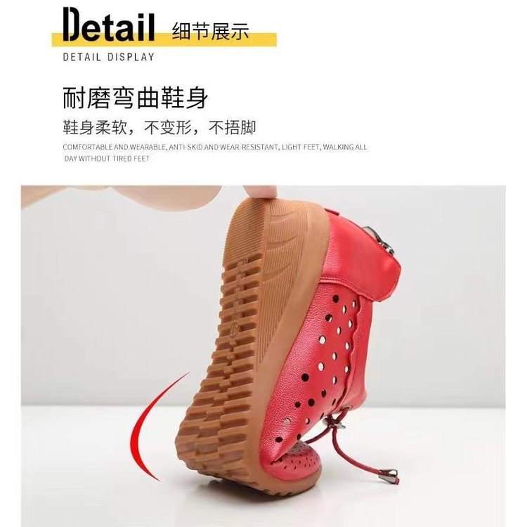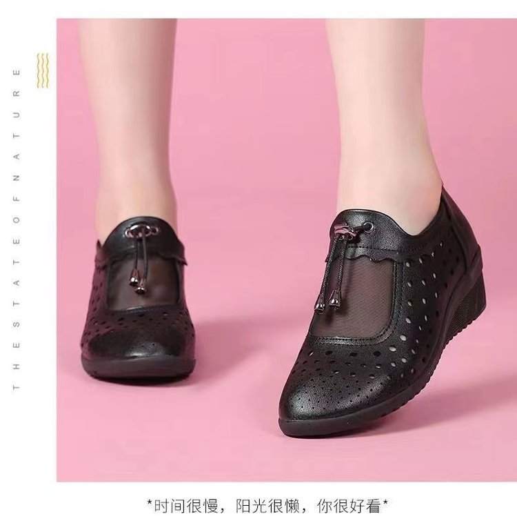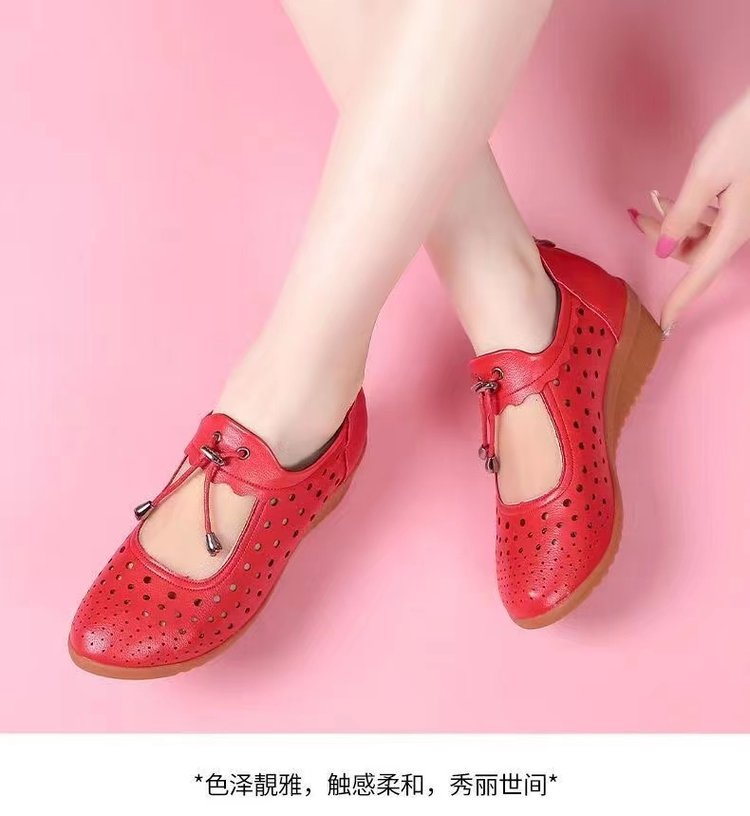 断码清仓凉鞋女2025夏季新款妈妈单鞋软底坡跟洞洞鞋真皮广场舞鞋