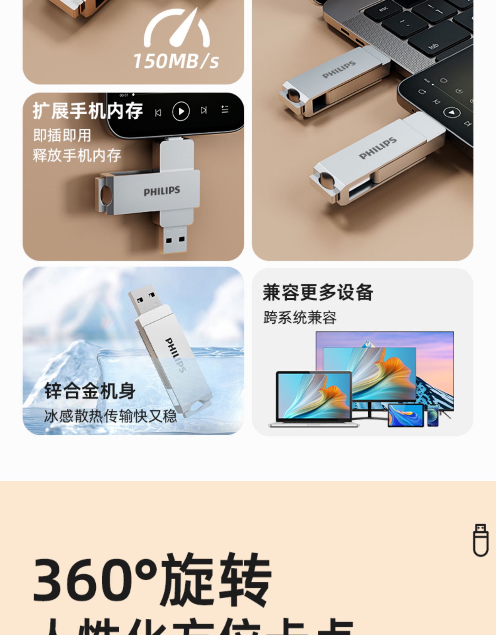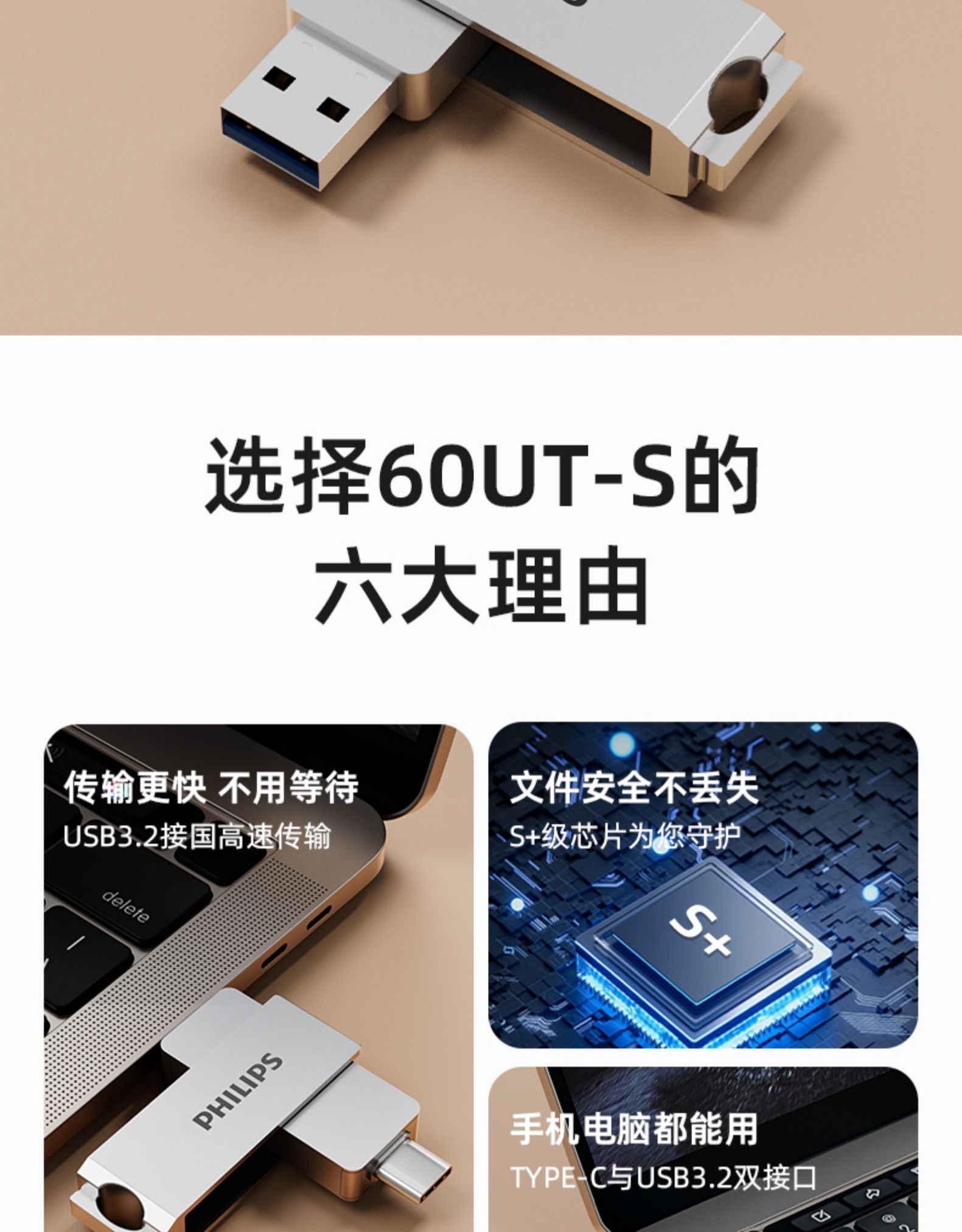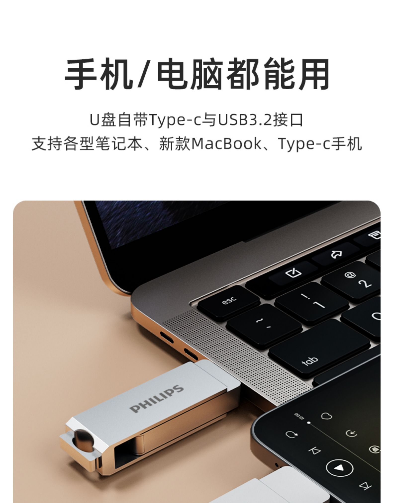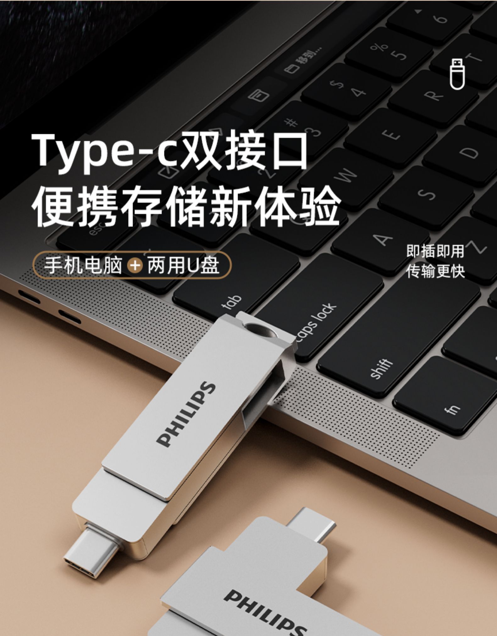 飞利浦typec双接口u盘手机电脑两用大容量高速双头优盘官方正品