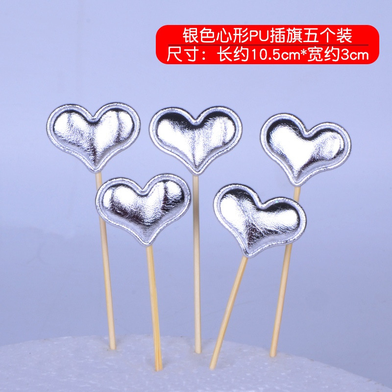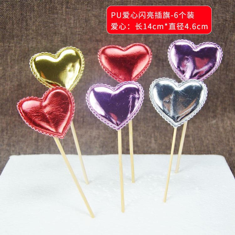 烘焙插旗 蛋糕爱心插旗派对插牌插签心形PU材质情景装饰插件5支装