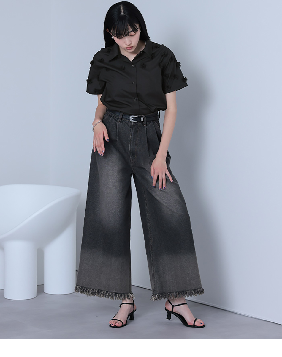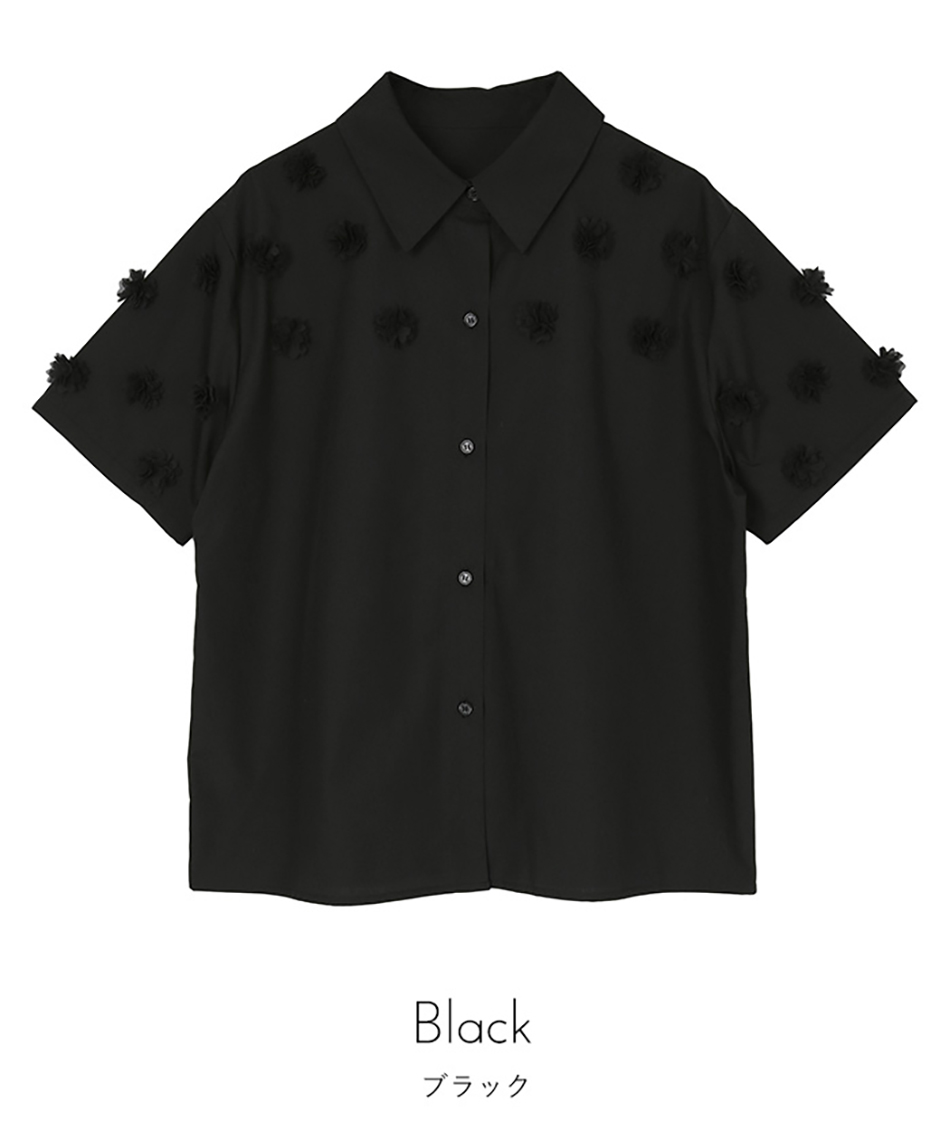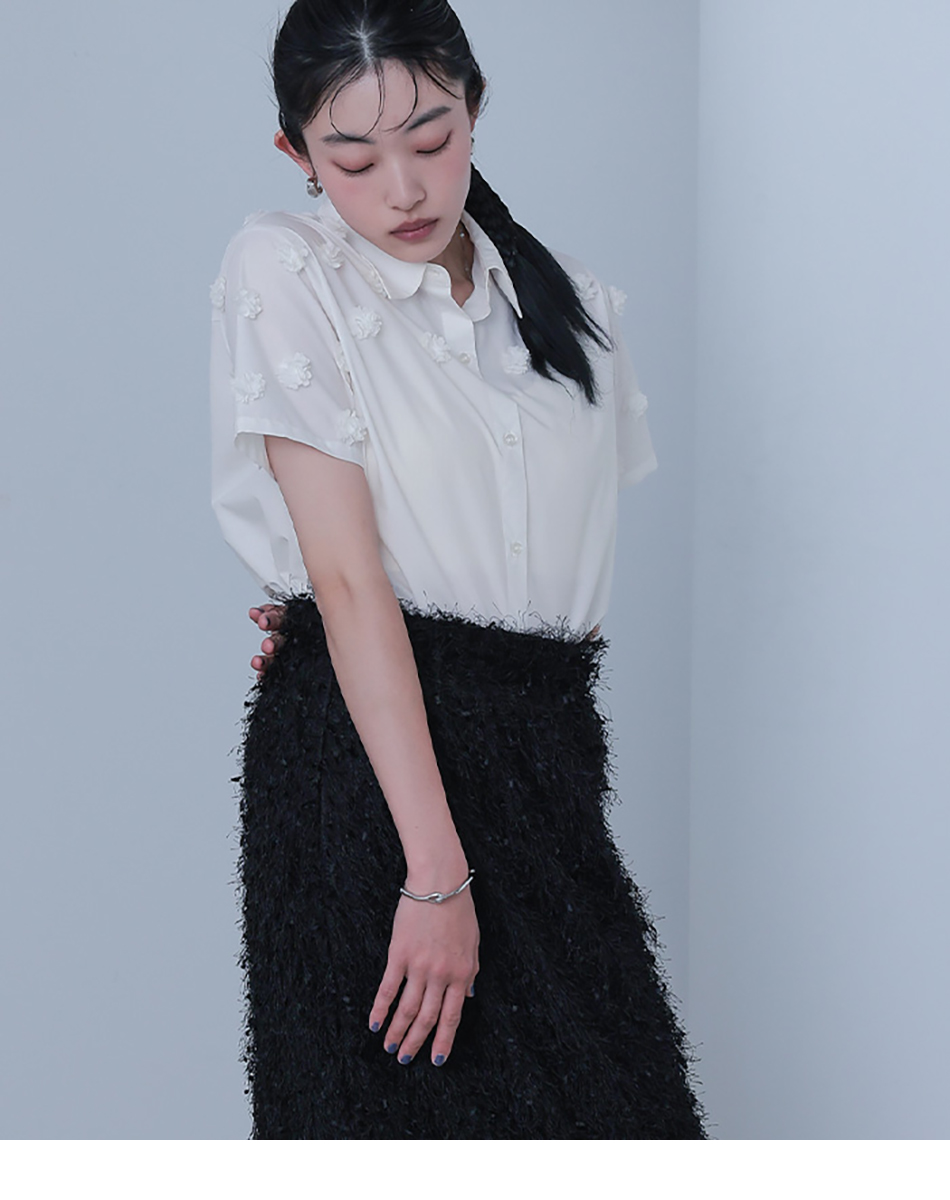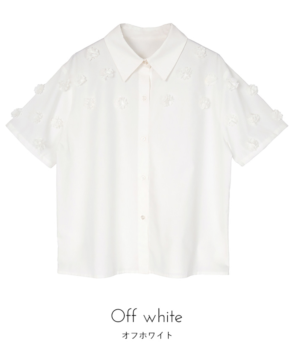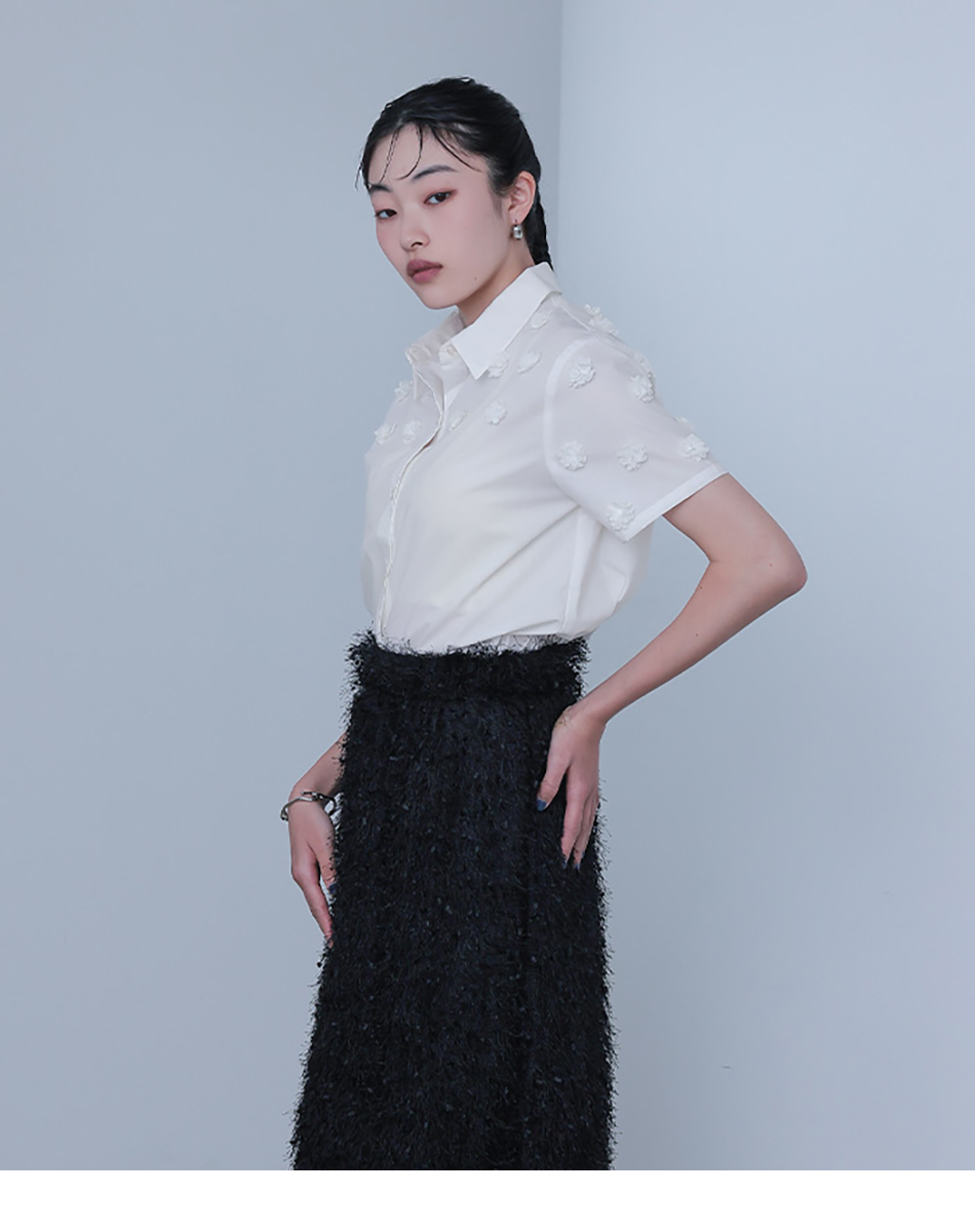 WICK BUEN 2025夏季新款立体花朵短袖衬衫女宽松显瘦百搭上衣