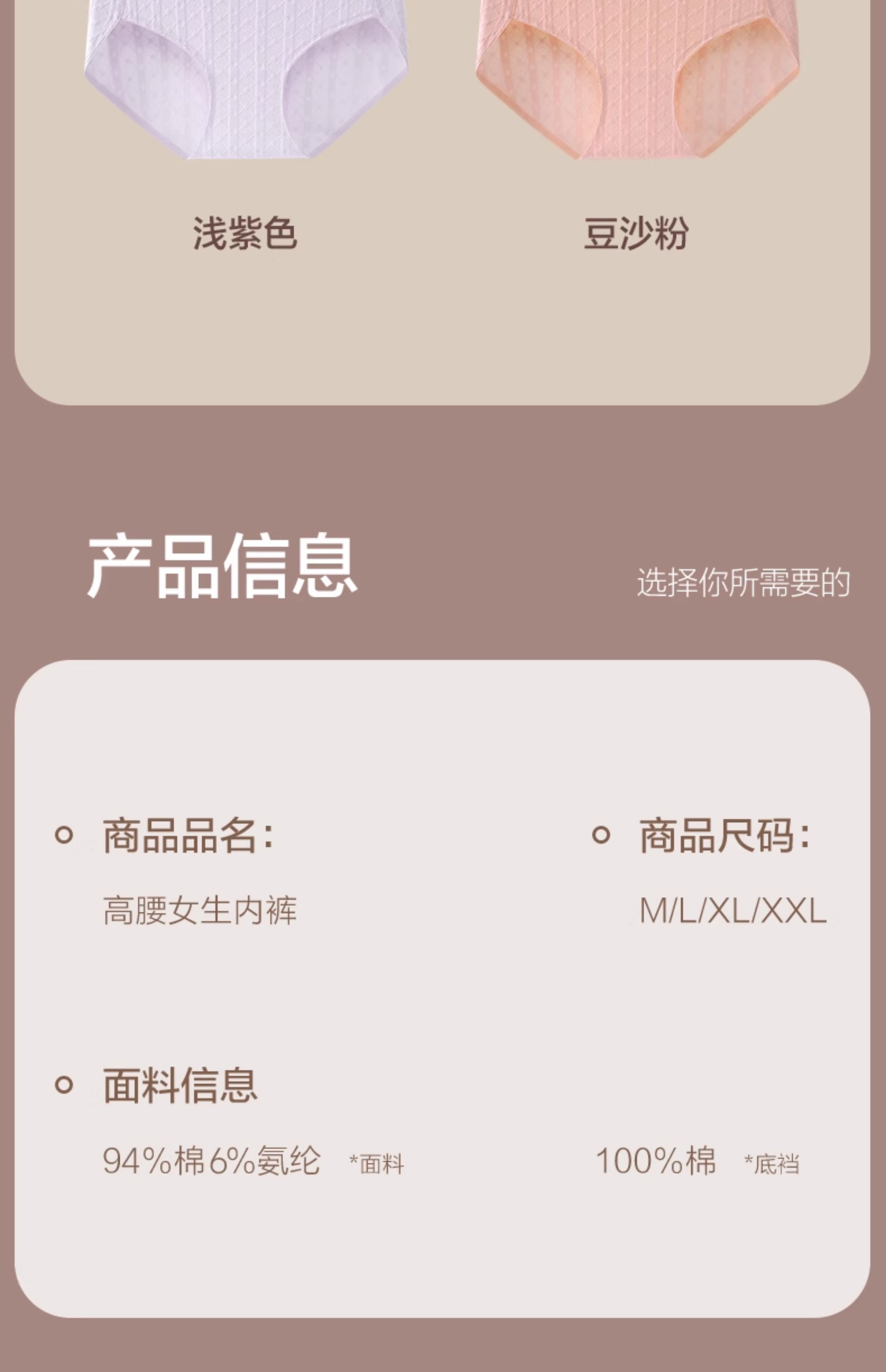 芬腾内裤女士纯棉裆高腰收腹抗菌大码女生无痕三角短裤头2025新款