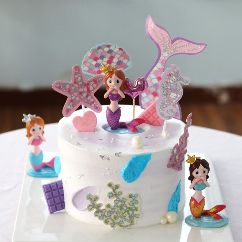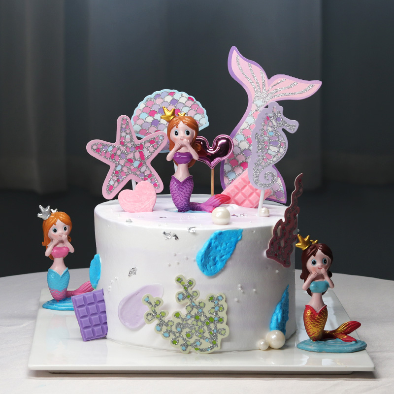 美人鱼蛋糕装饰插牌摆件插件少女心网红人海洋鱼公主烘焙派对配件