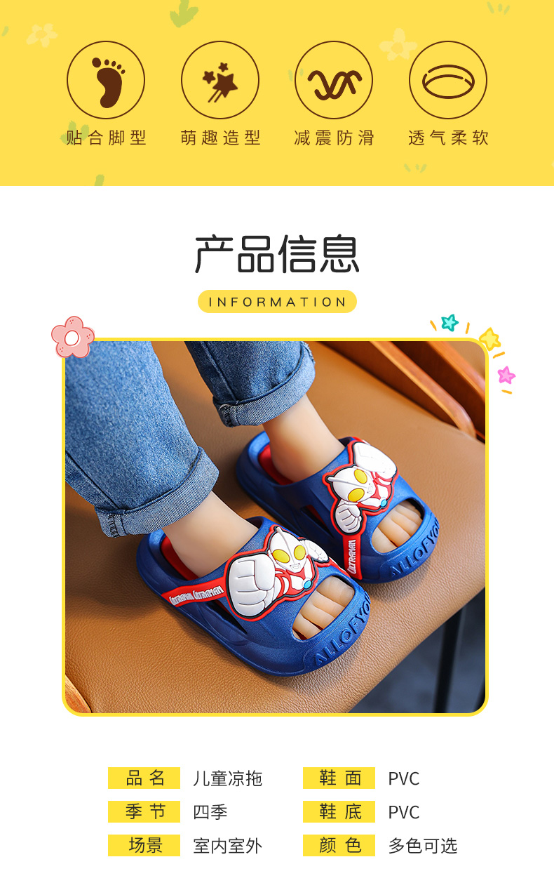 正品奥特曼儿童凉拖鞋夏季小孩中大男童外穿居家宝宝防滑包头拖鞋