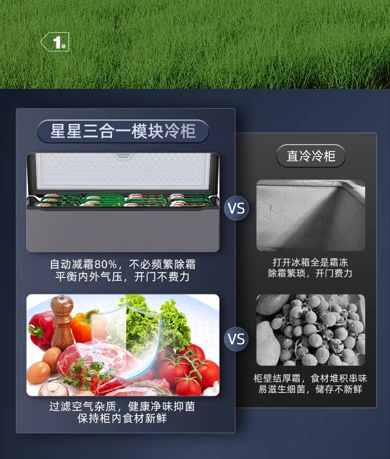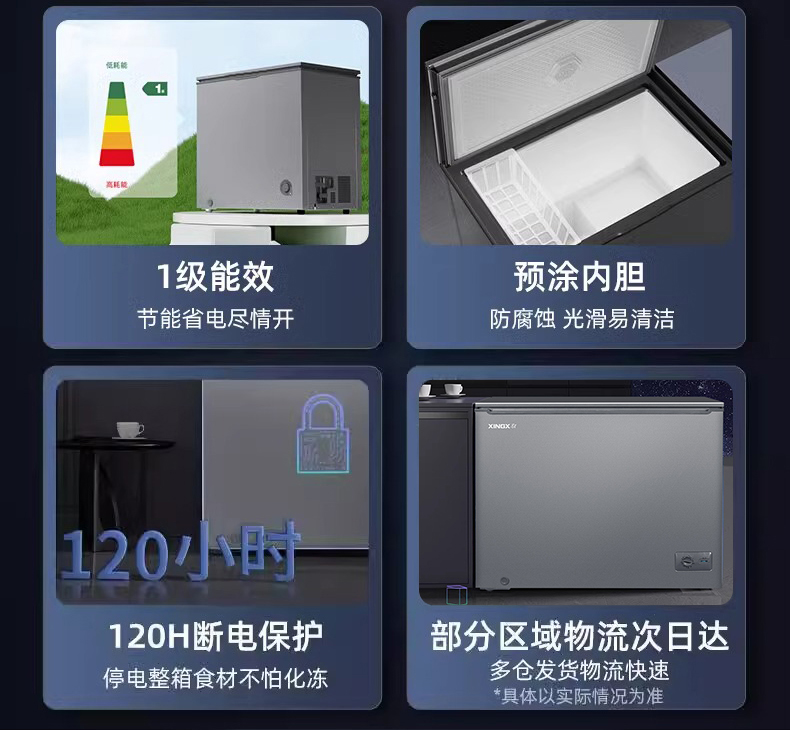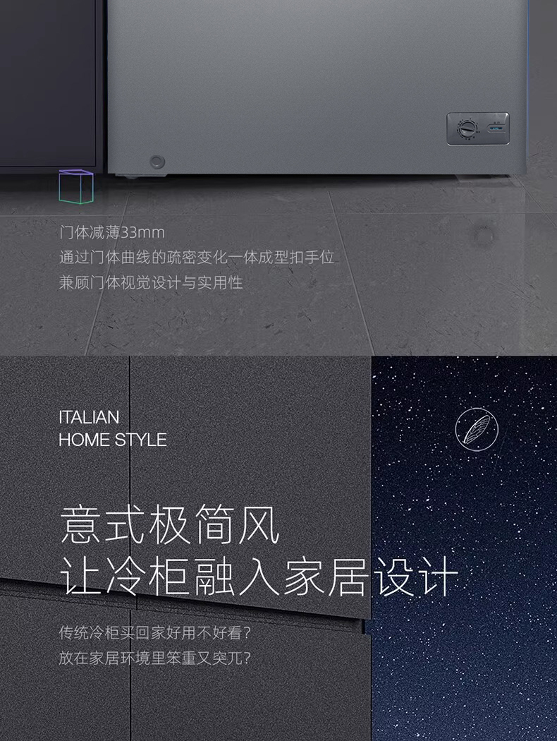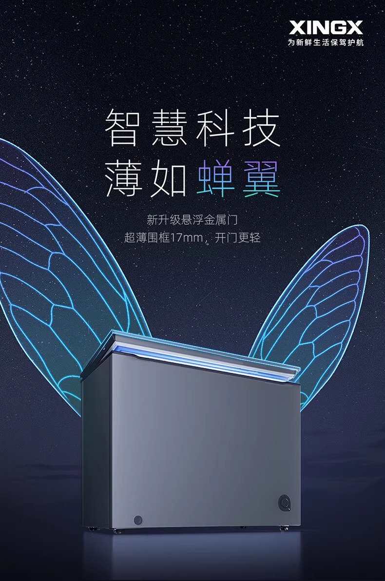 星星冰柜开口笑系列305升纤薄家用小容量冷藏冷冻节能卧式冷柜KC
