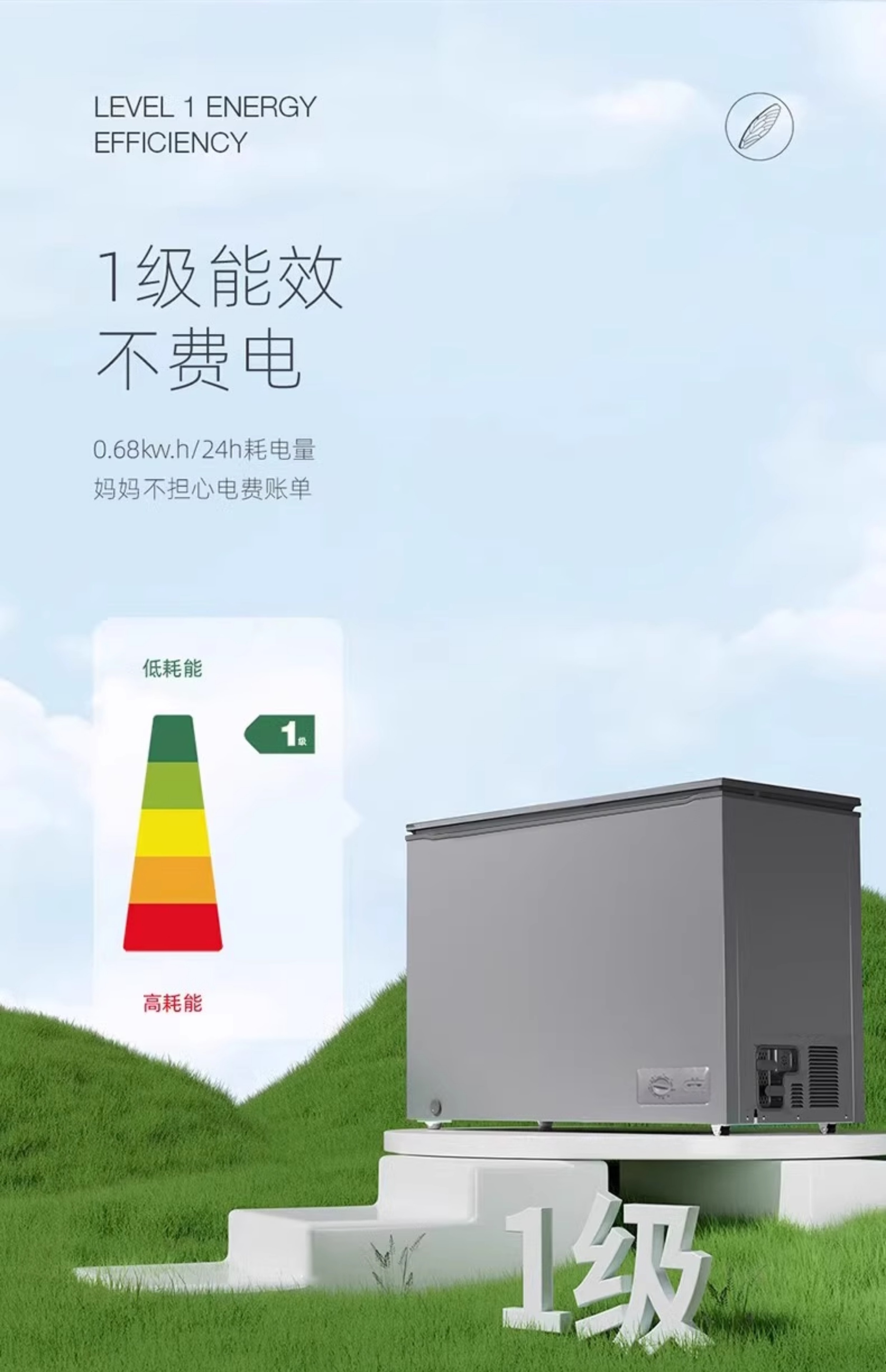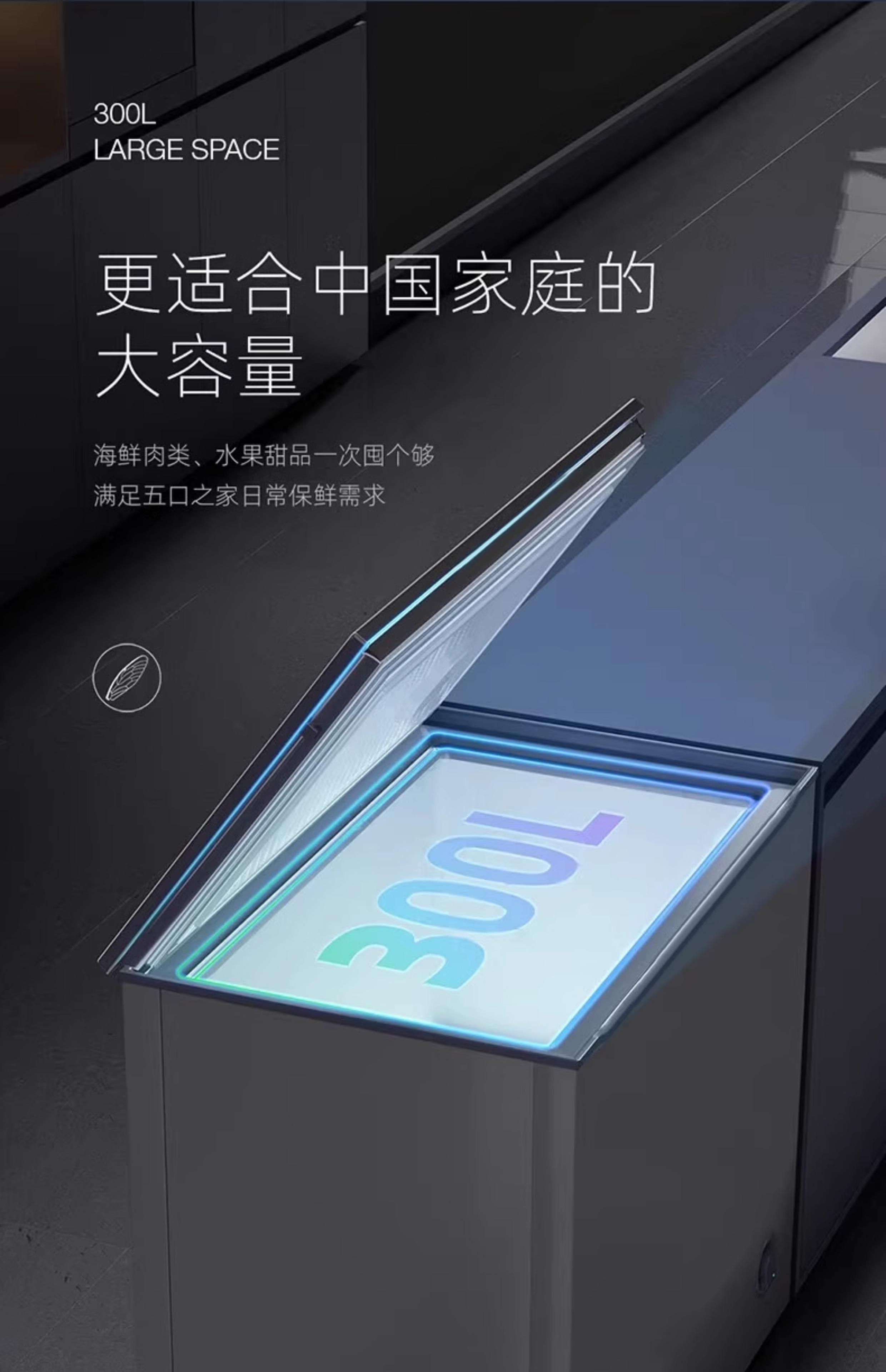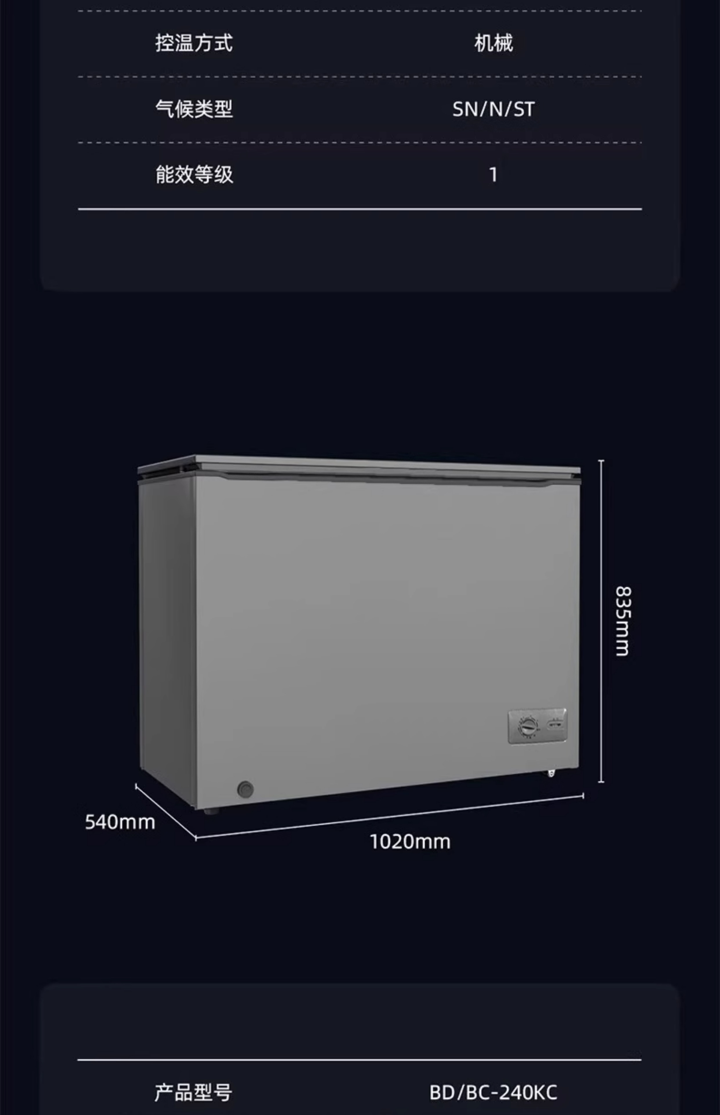 星星冰柜开口笑系列305升纤薄家用小容量冷藏冷冻节能卧式冷柜KC