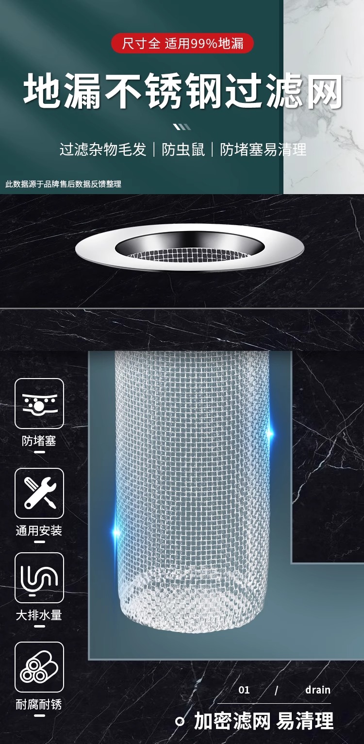 卫生间地漏下水道水槽垃圾浴室头发过滤网不锈钢厕所防虫防堵神器
