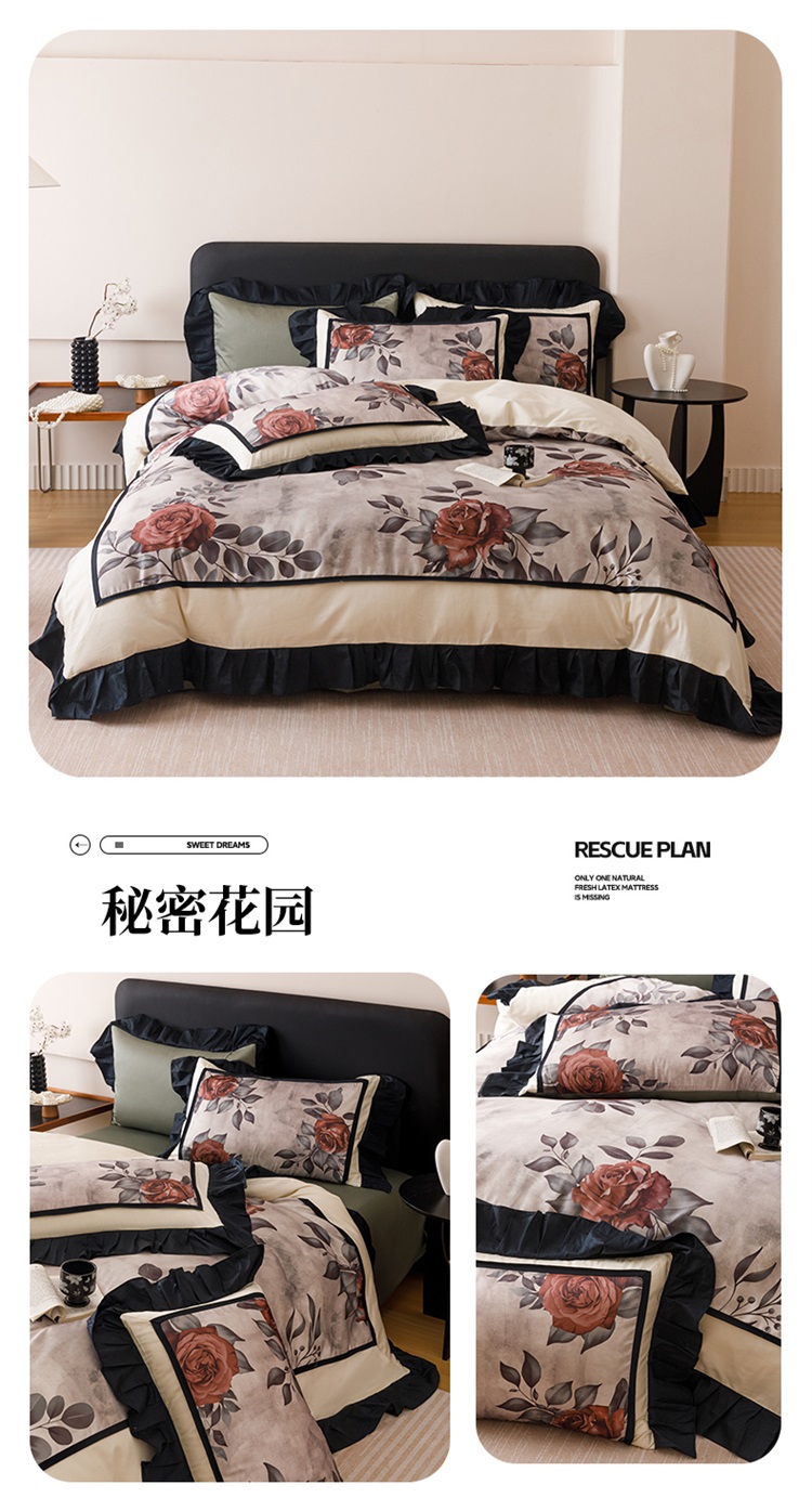 法式复古风长绒棉四件套全棉2025新款床单印花被套床笠床上用品