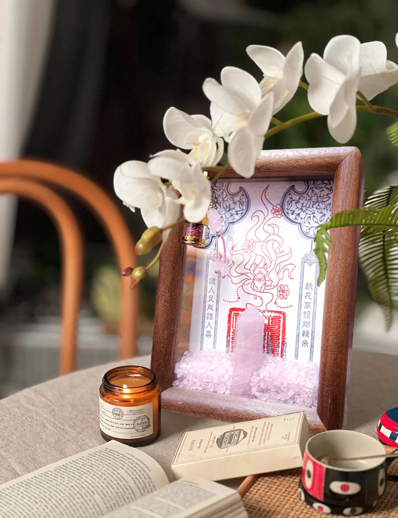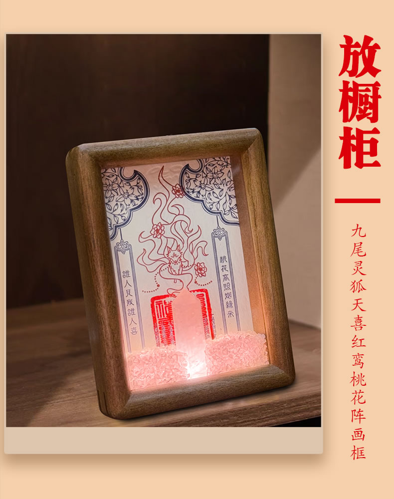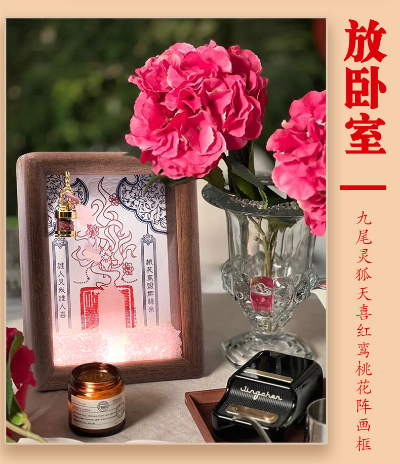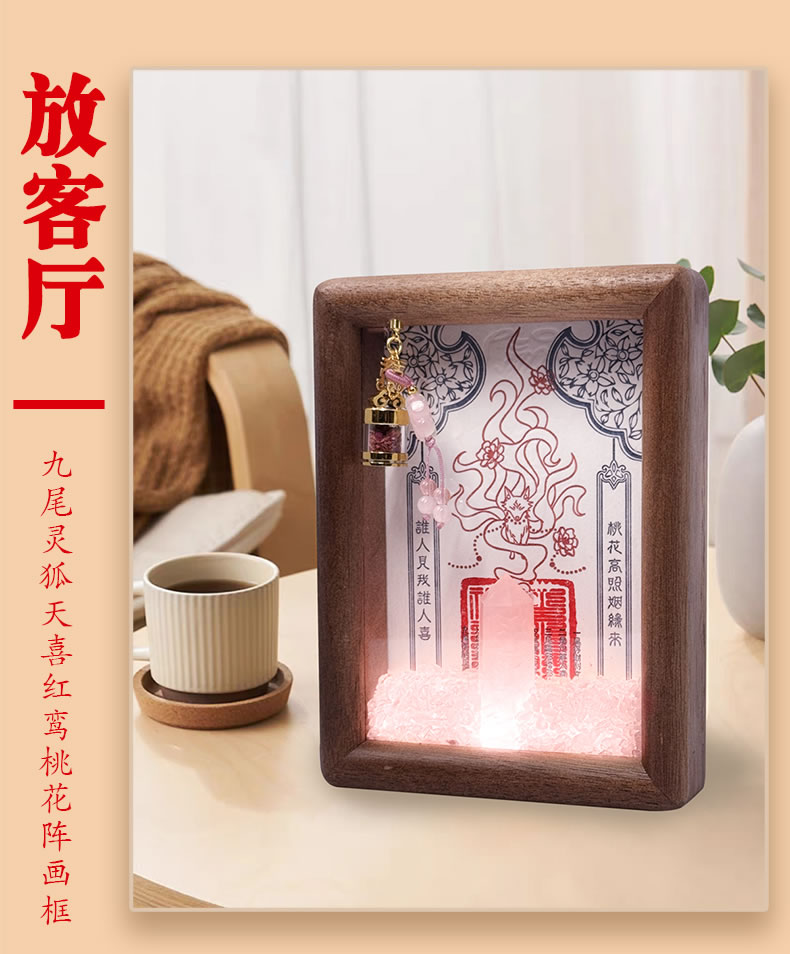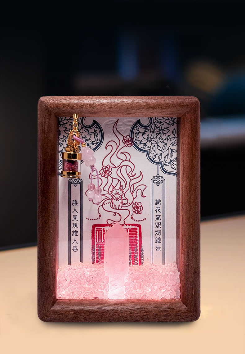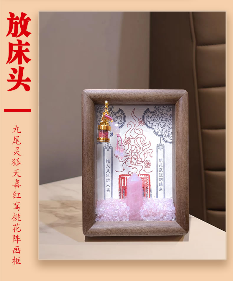 天禧红鸾招桃花单身男女固感情良缘复合摆台粉水晶摆件柱挂画相框