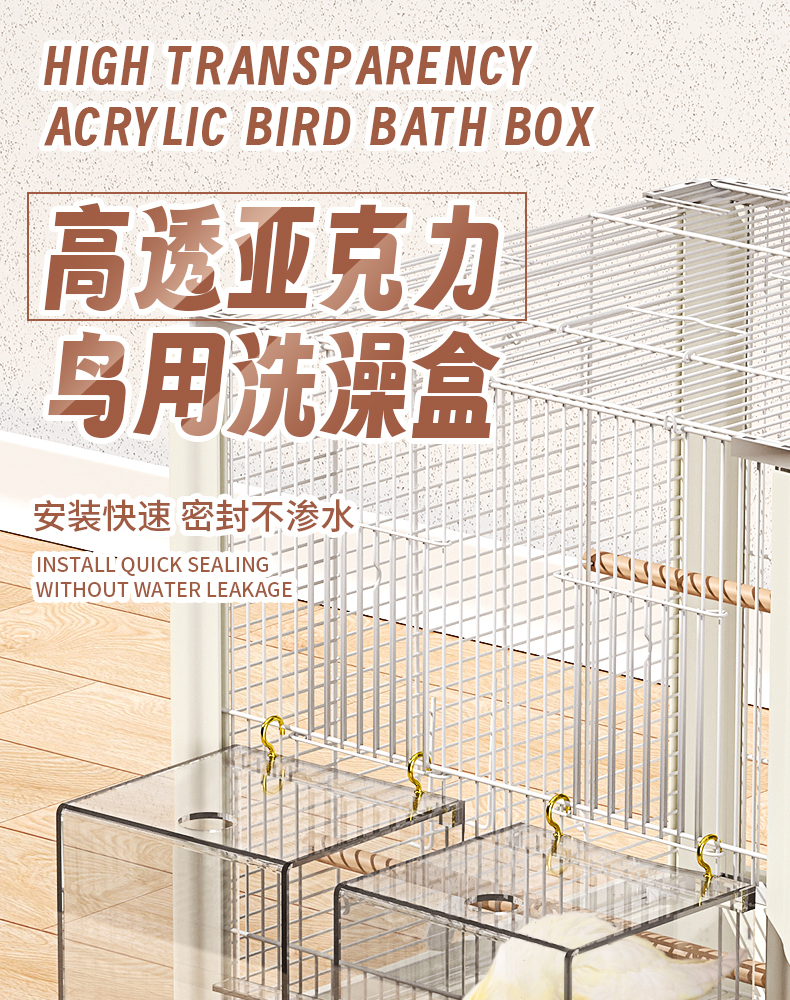 鹦鹉亚克力洗澡盆浴盆浴室鸟食盒防撒防溅食盒自动喂食器下料器
