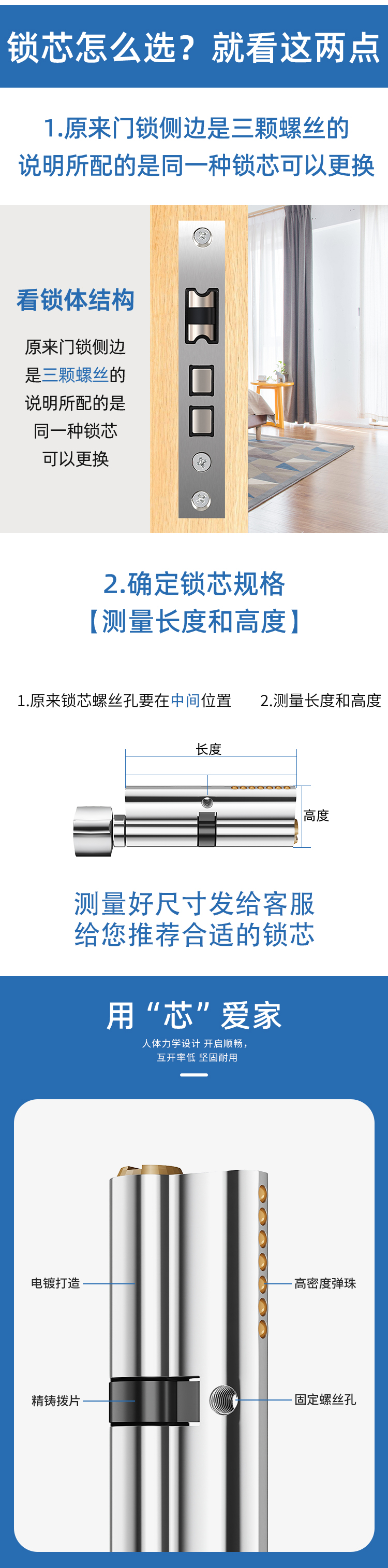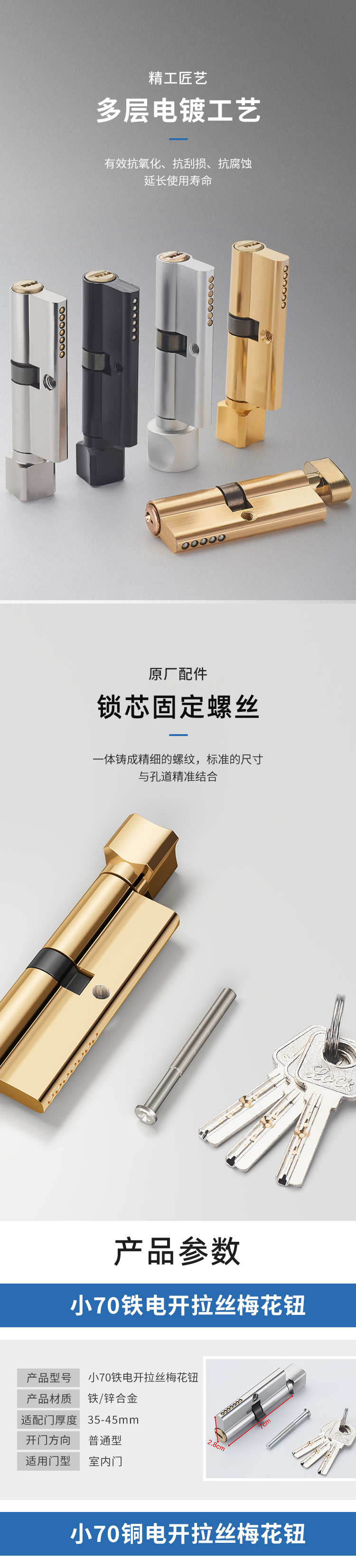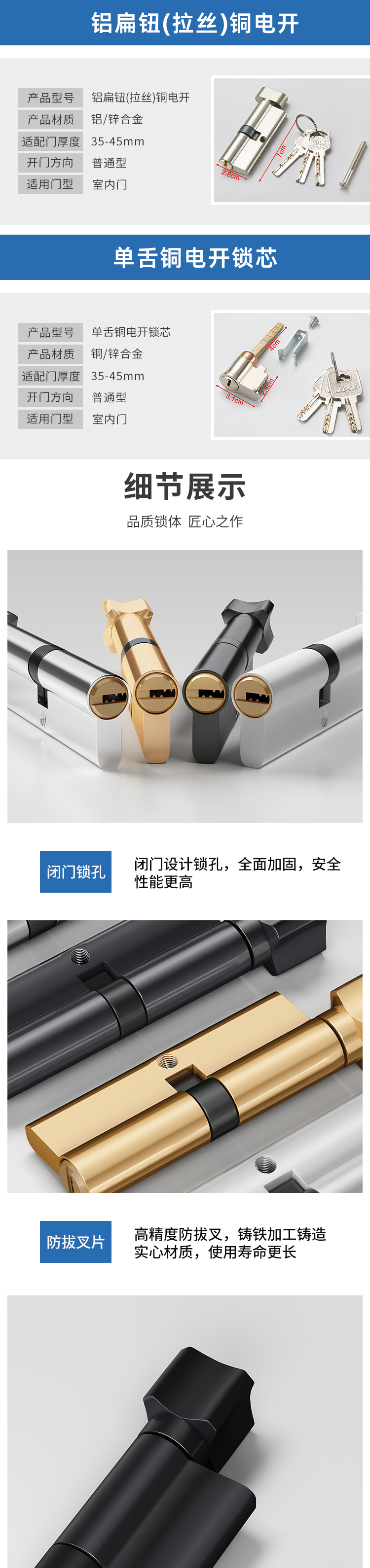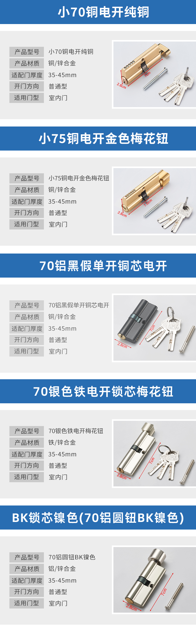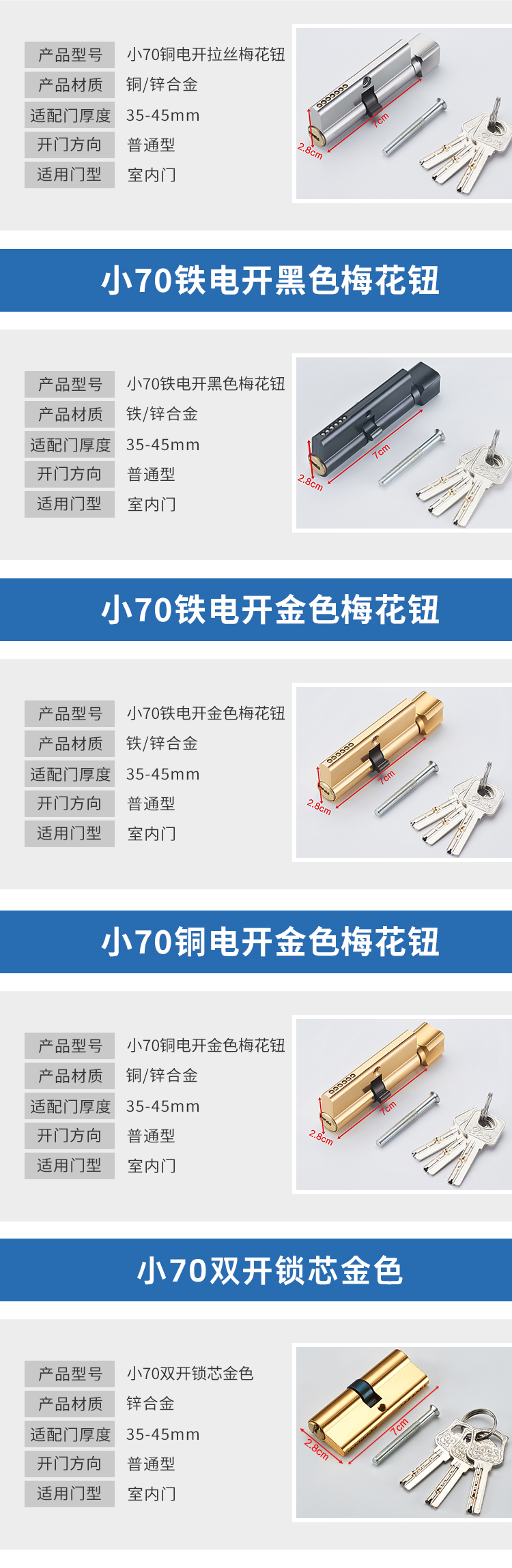 卧室门铜锁芯防盗室内木门锁心锁体配件五金室内门家用通用型