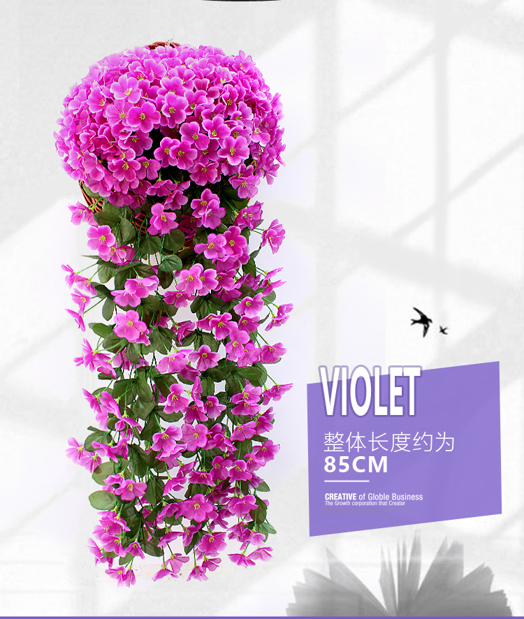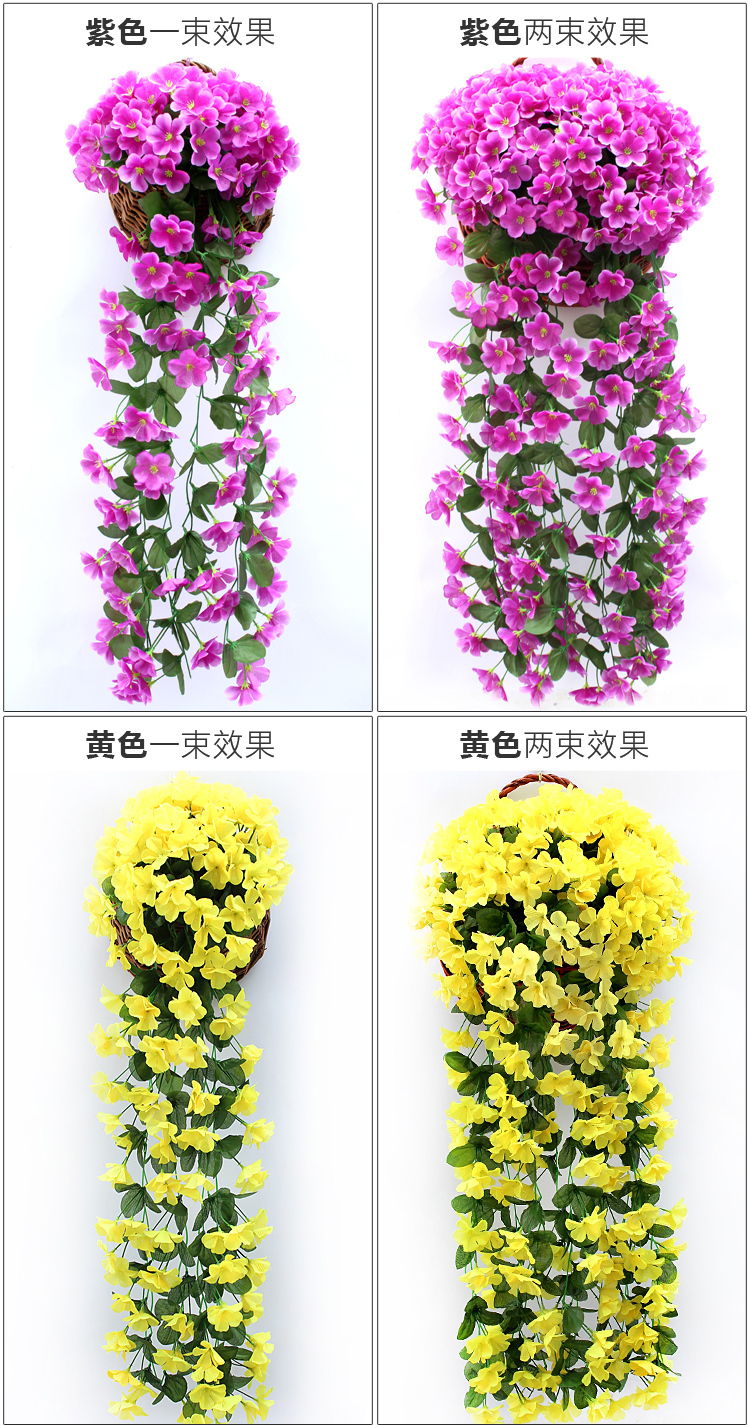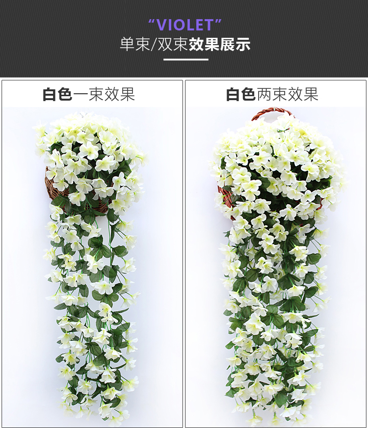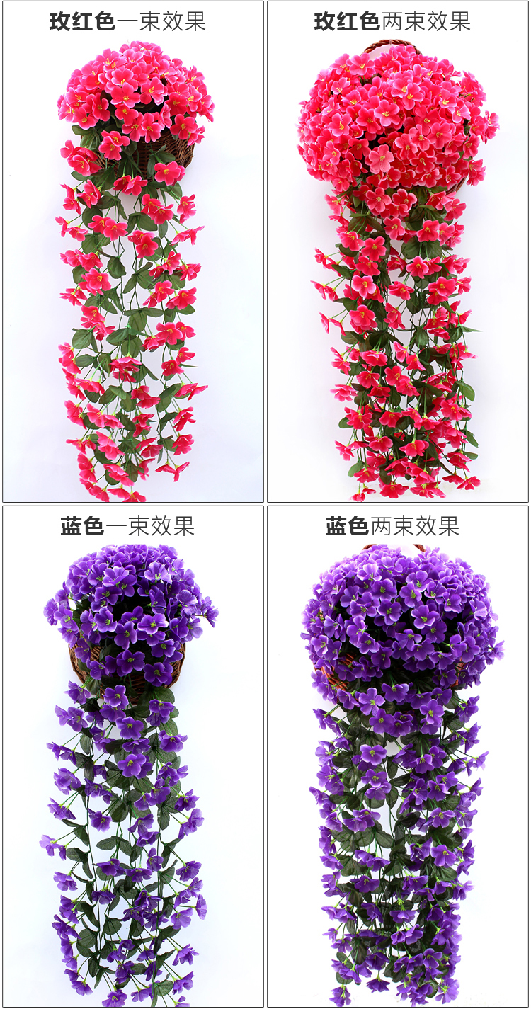 仿真紫罗兰壁挂吊兰花大绣球假花塑料花绢花花藤藤条阳台婚庆装饰