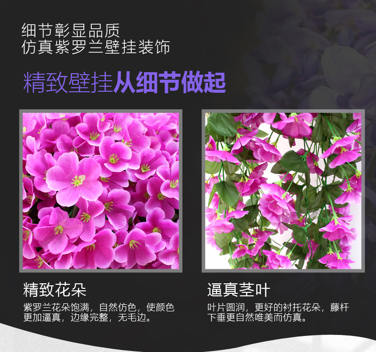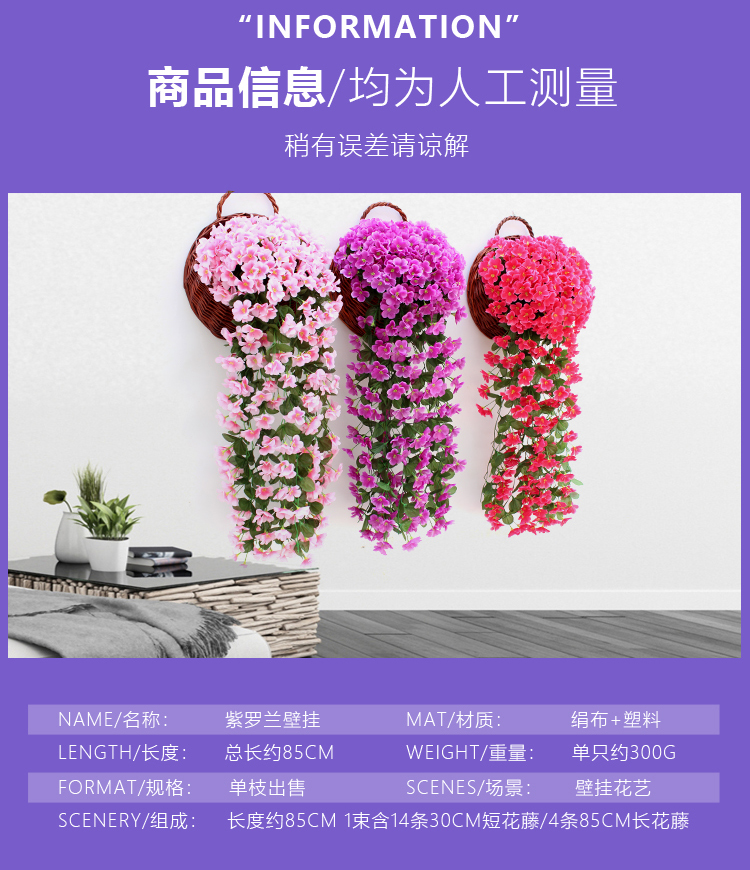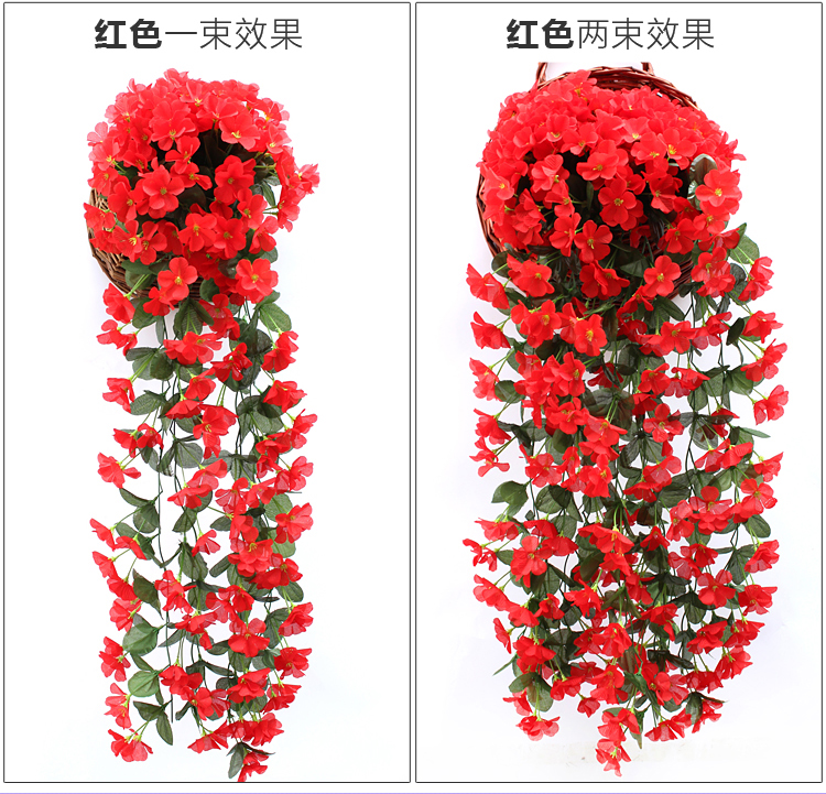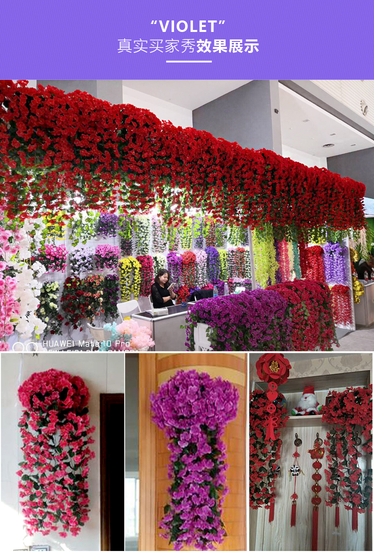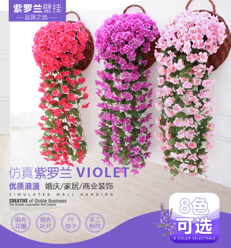 仿真紫罗兰壁挂吊兰花大绣球假花塑料花绢花花藤藤条阳台婚庆装饰