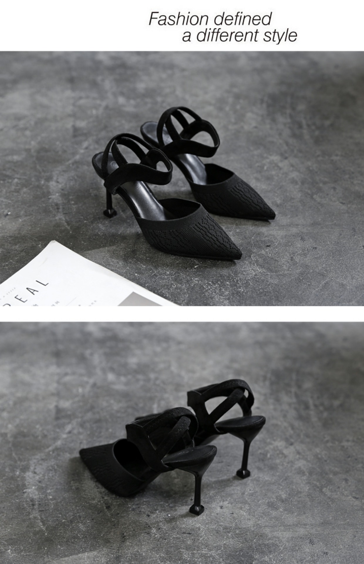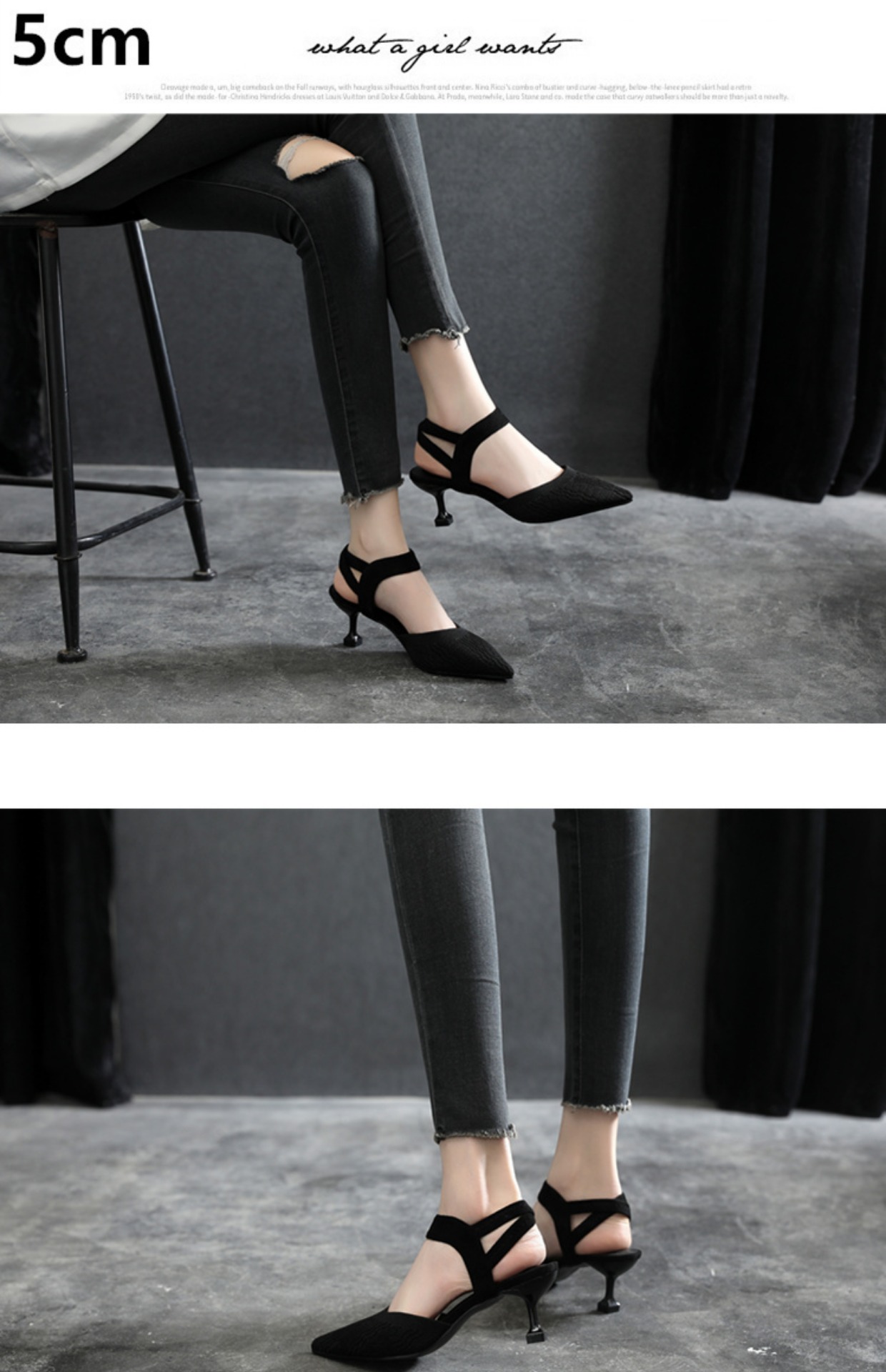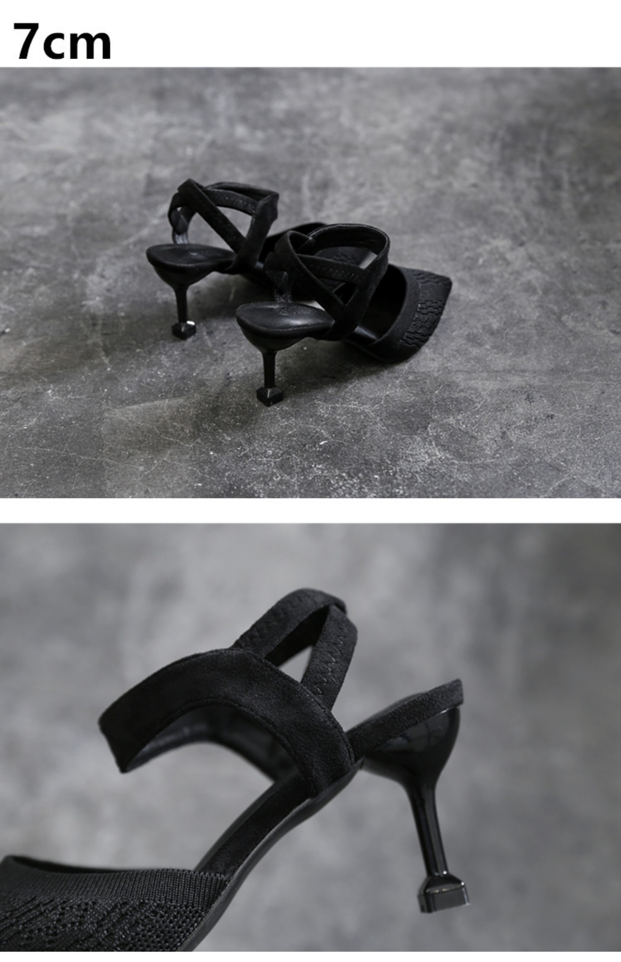 一字带黑色高跟鞋细跟不累脚大码女鞋41-43包头凉鞋女夏尖头单鞋