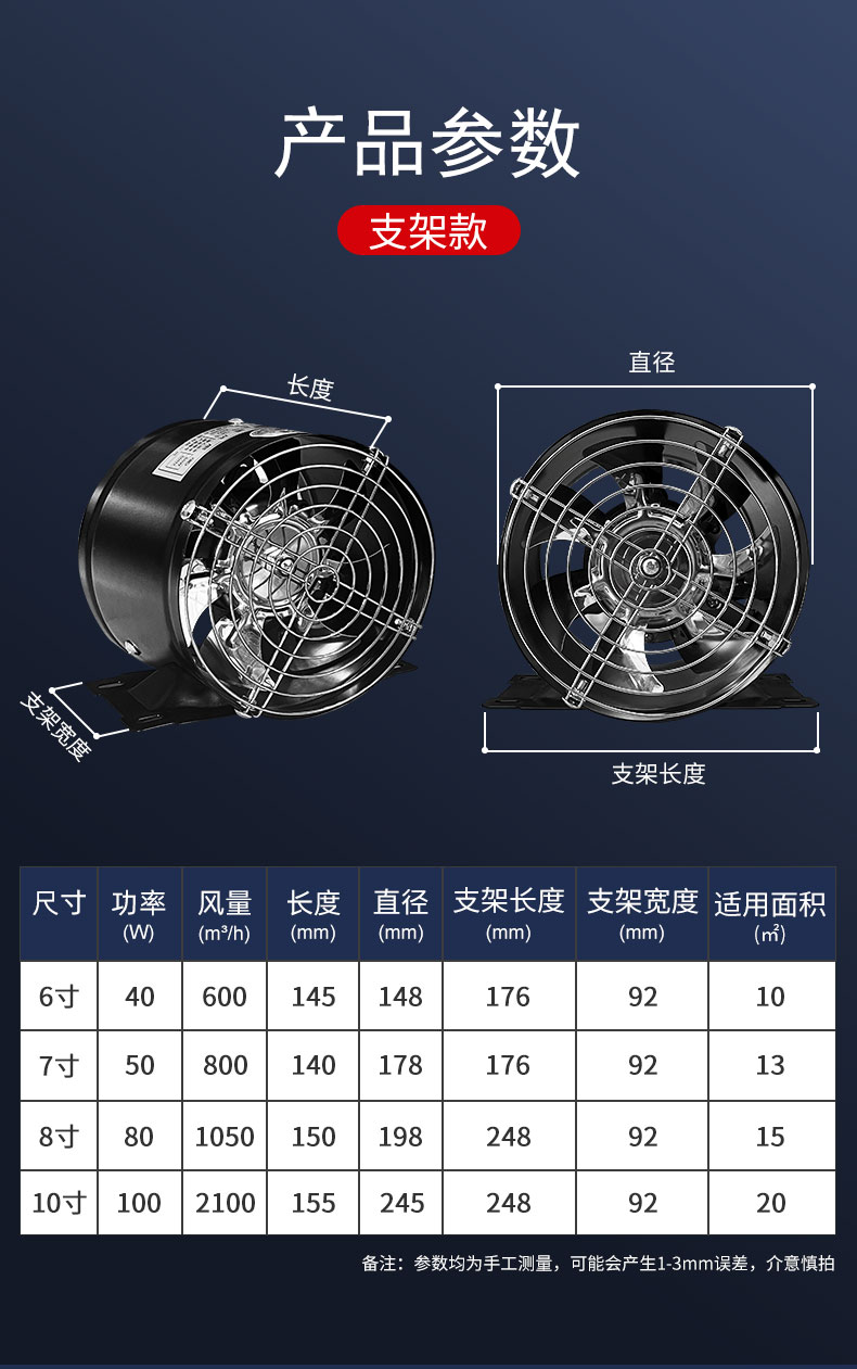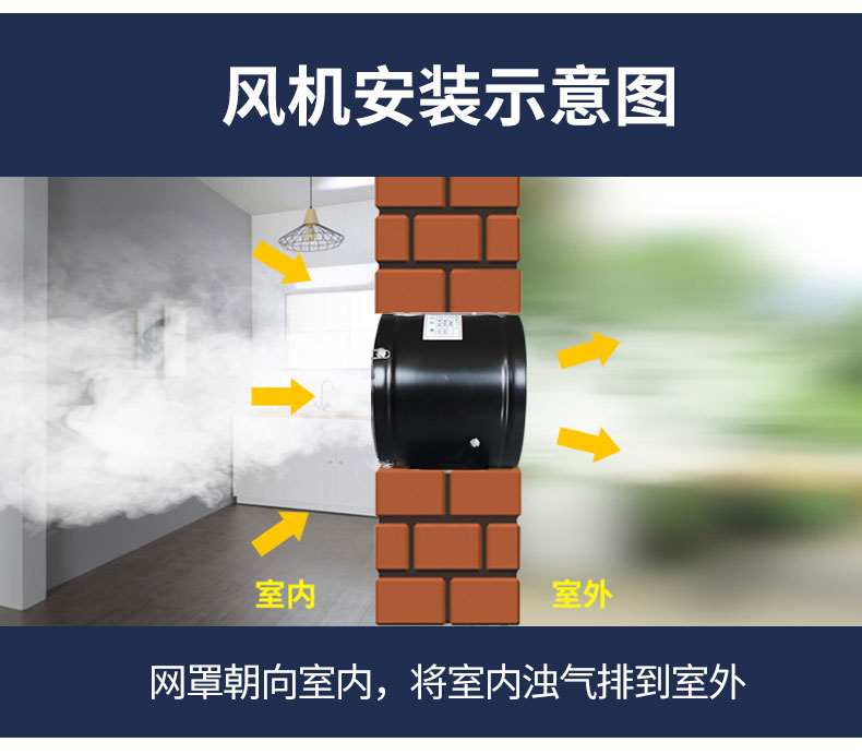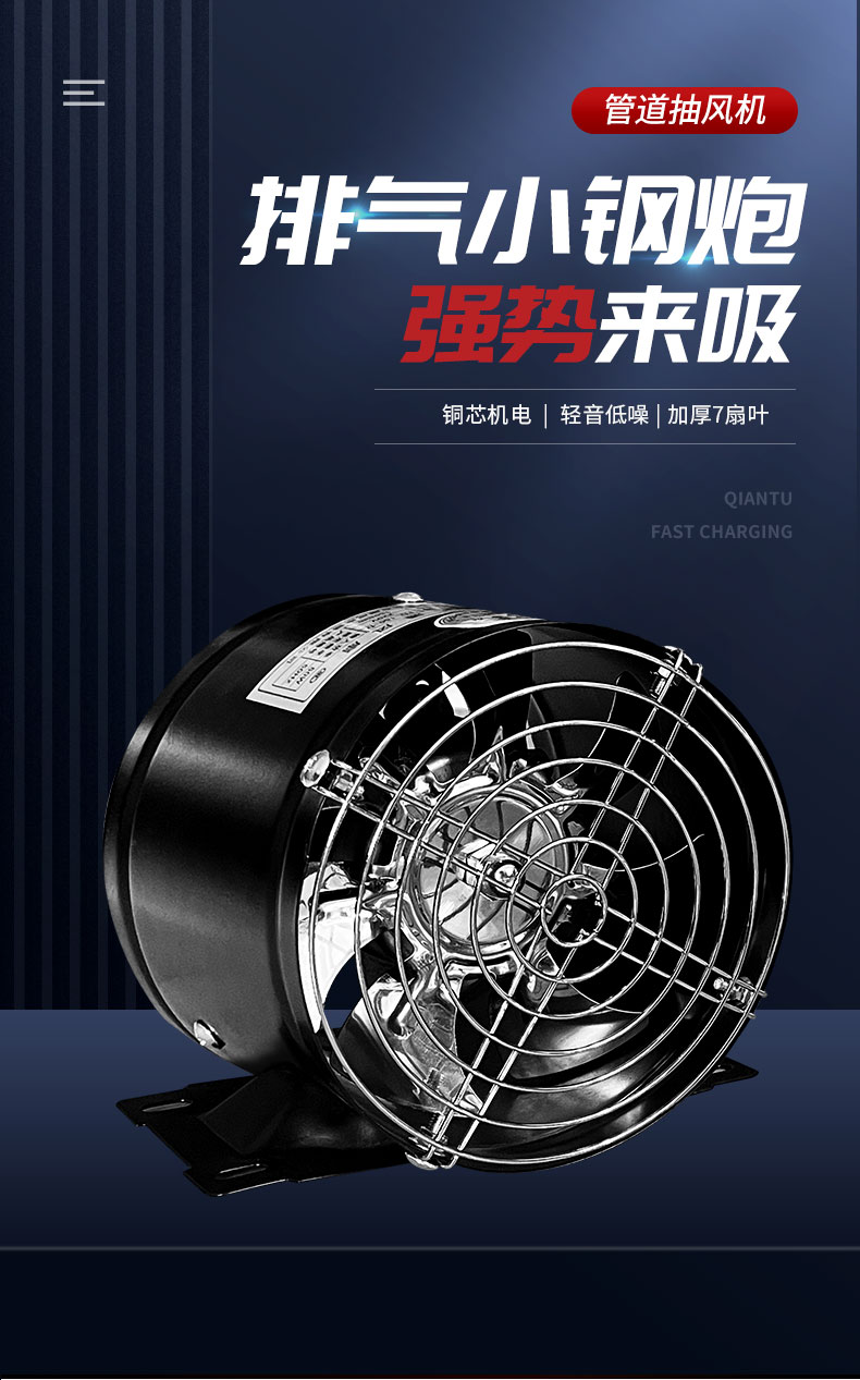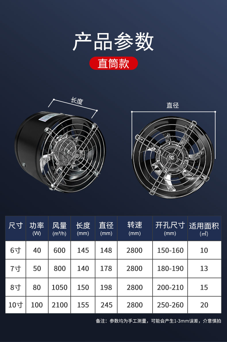 免打洞排风扇排气扇管道抽风机出租房厨房家用油烟换气扇强力静音