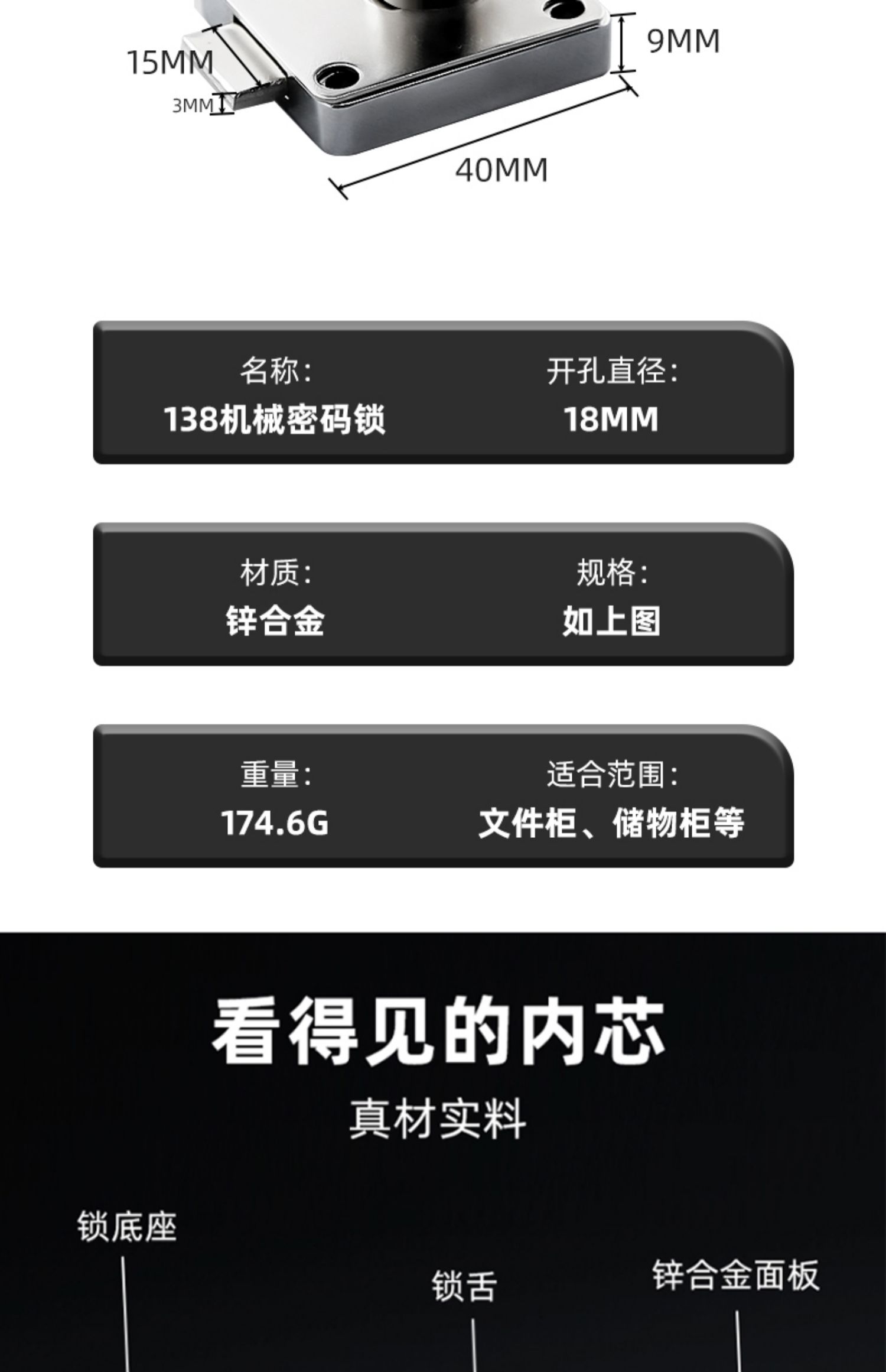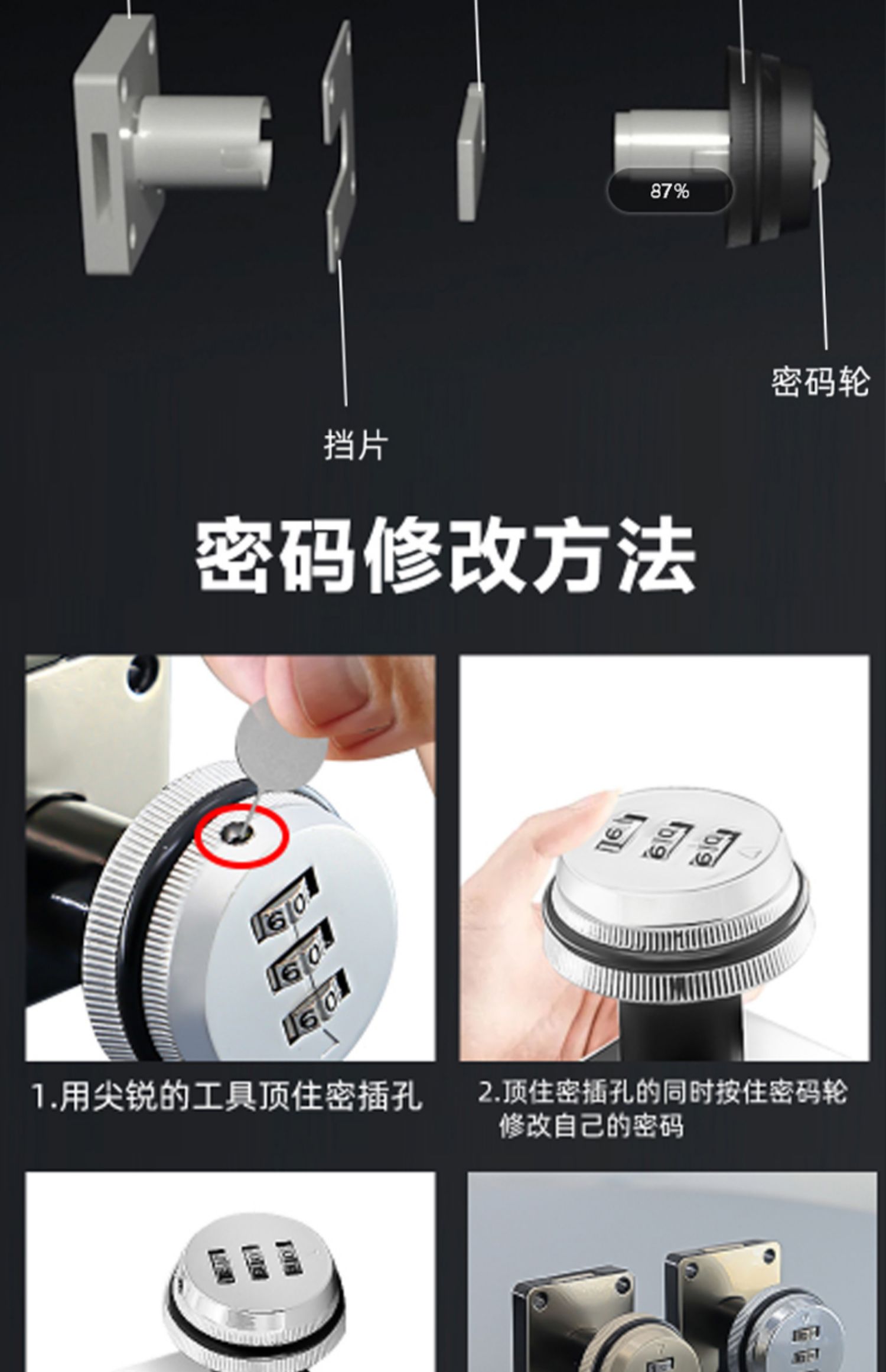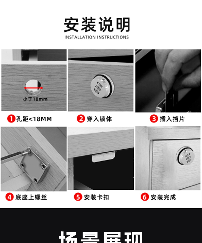办公桌抽屉密码锁床头柜文件柜子暗装老式防盗柜台转舌家用锁具