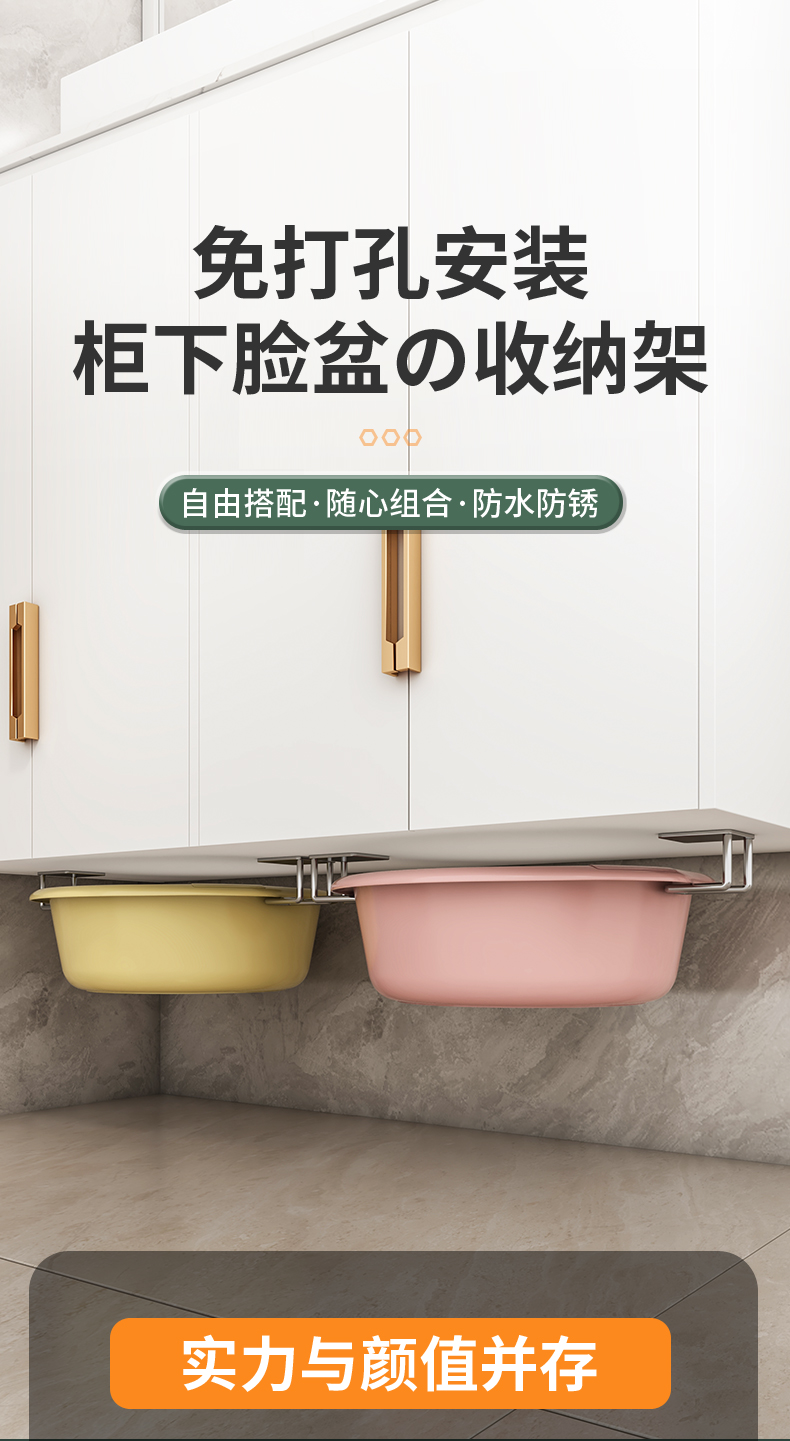 卫生间置物架洗脸盆收纳架子浴室免打孔壁挂式厕所放脸盆挂钩神器