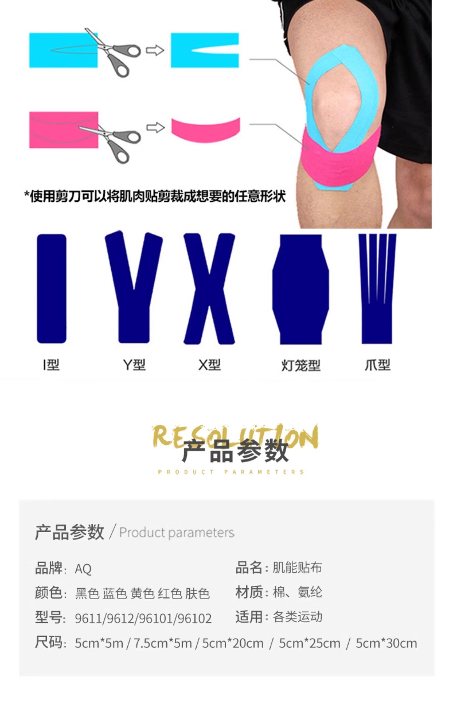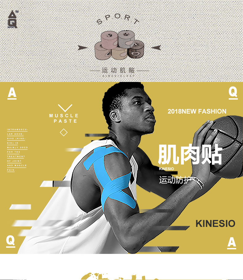 AQ肌贴肌内贴胶布拉伤康复内效贴布运动胶带绷带肌肉贴篮球打脚踝