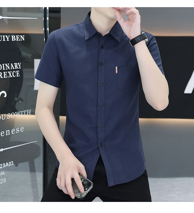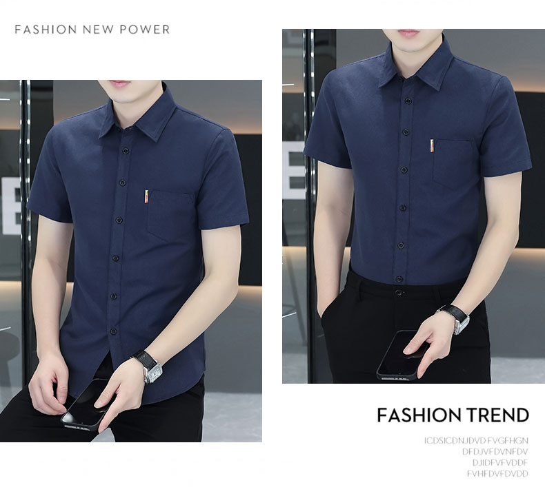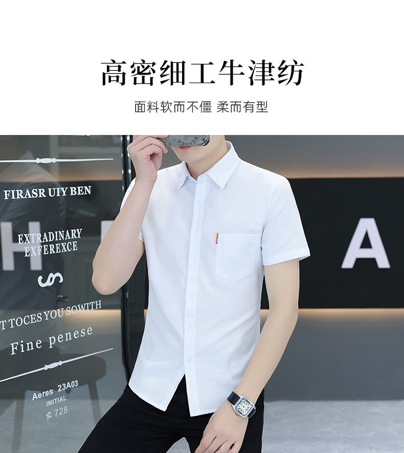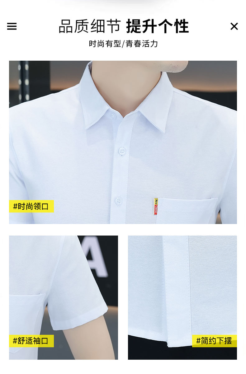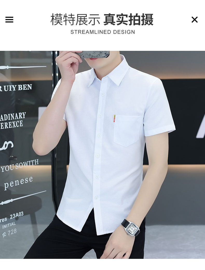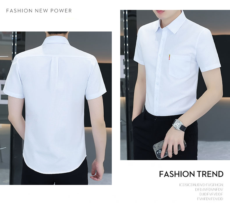 夏季男士短袖有口袋白衬衫纯色商务休闲正装凉感免烫半袖薄款衬衣