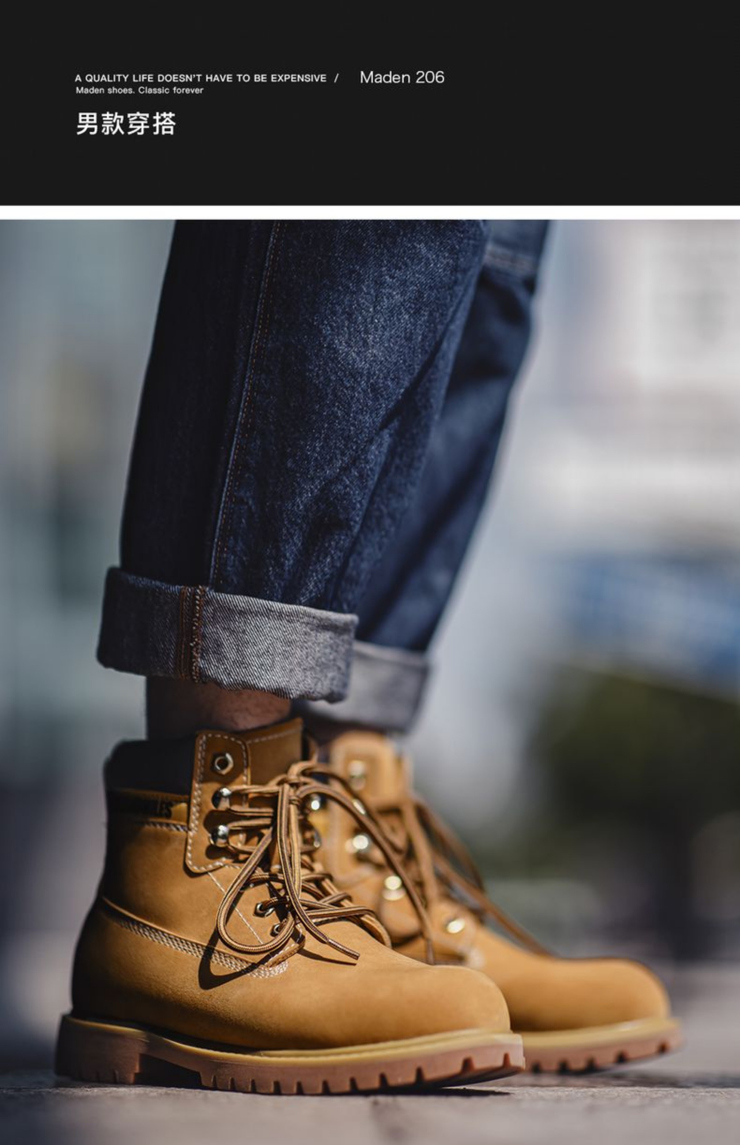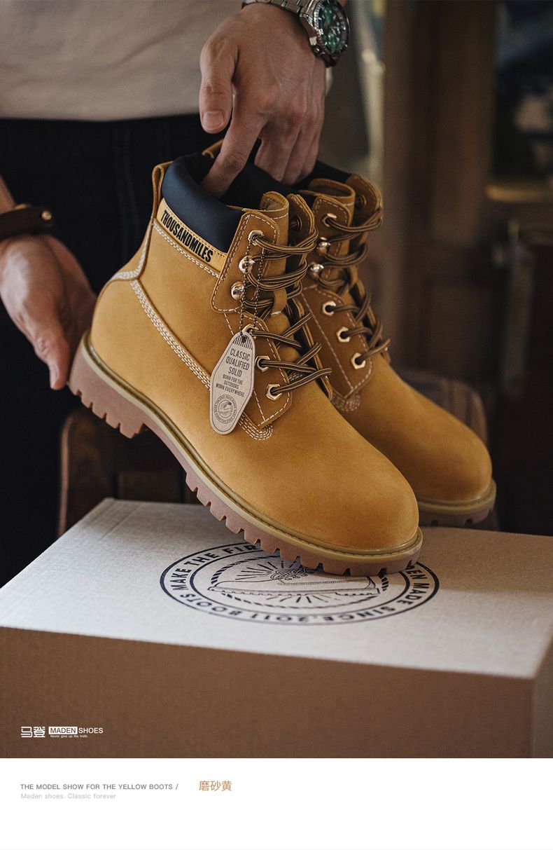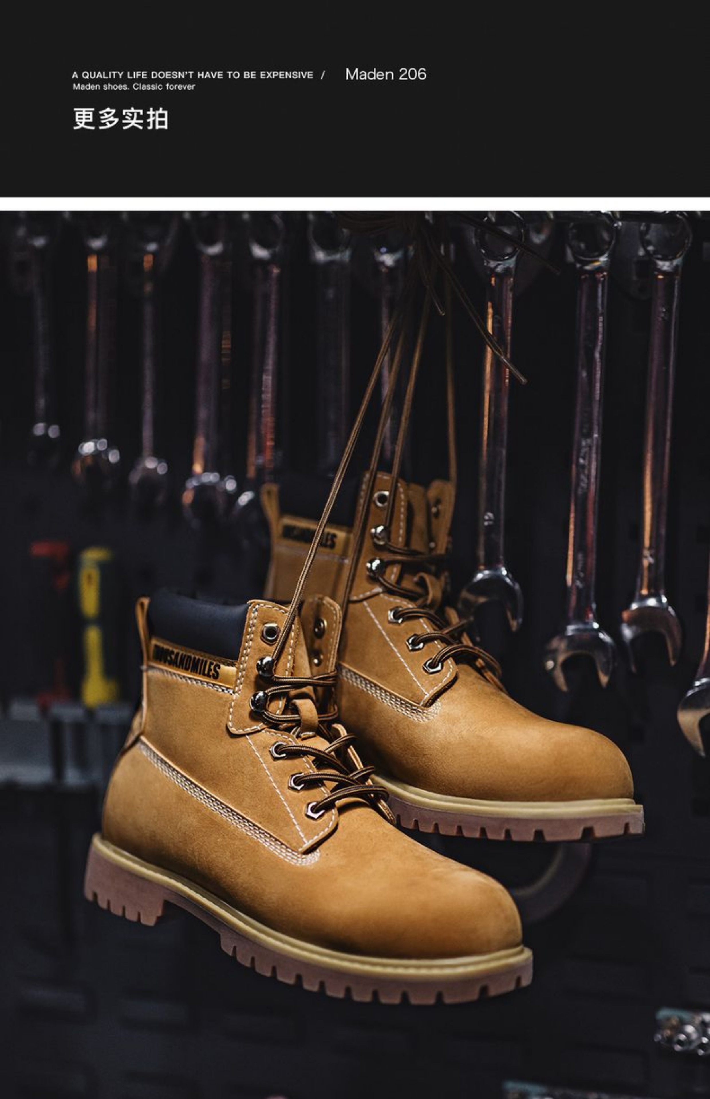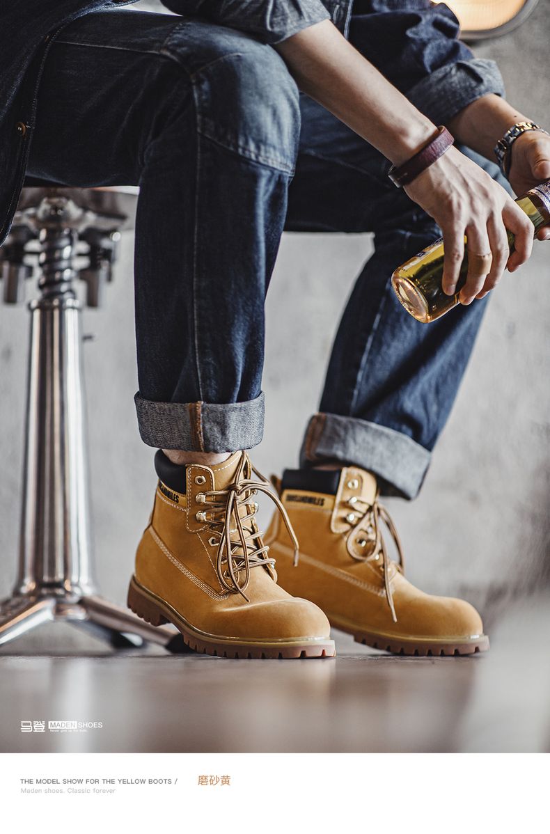 马登工装美式休闲大黄靴中帮马丁靴户外登山靴复古靴子男秋季新款