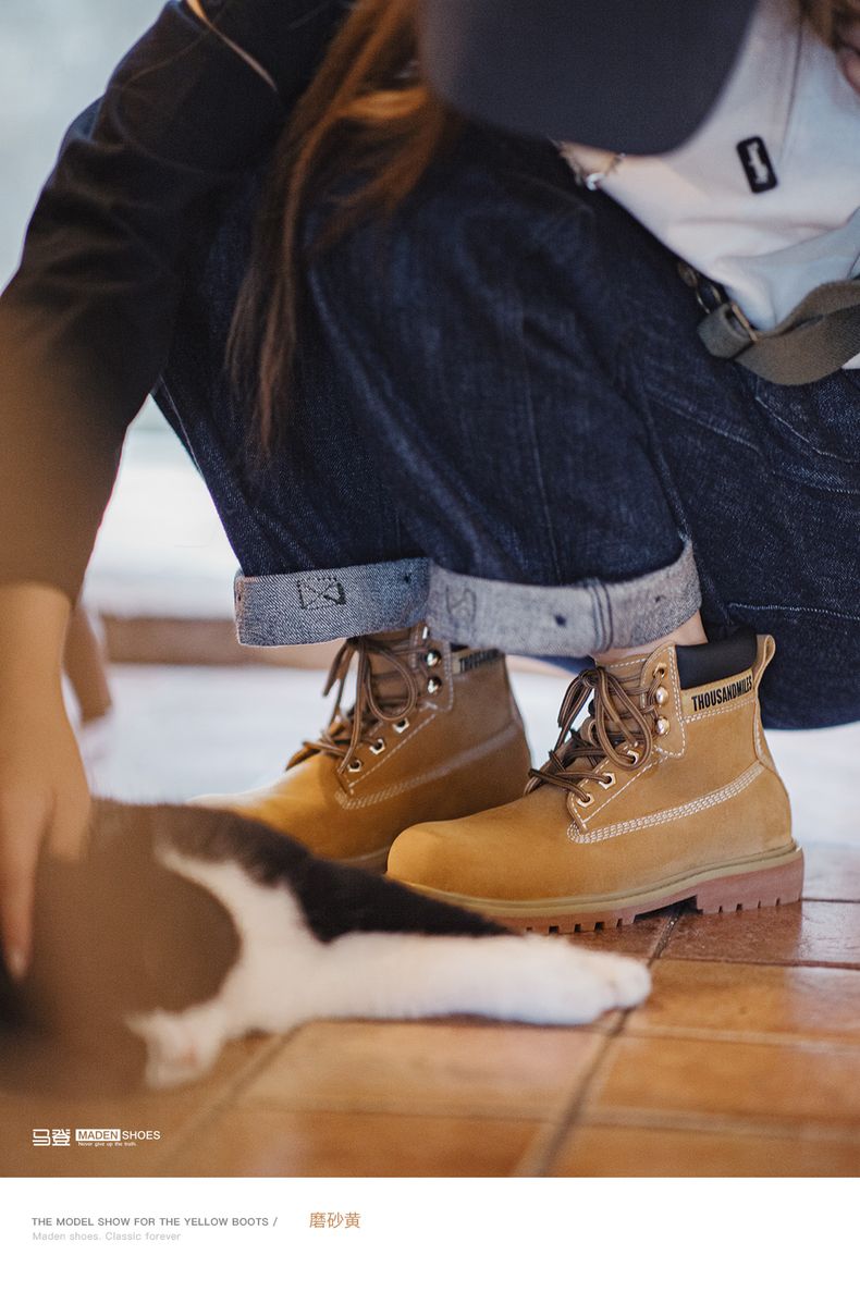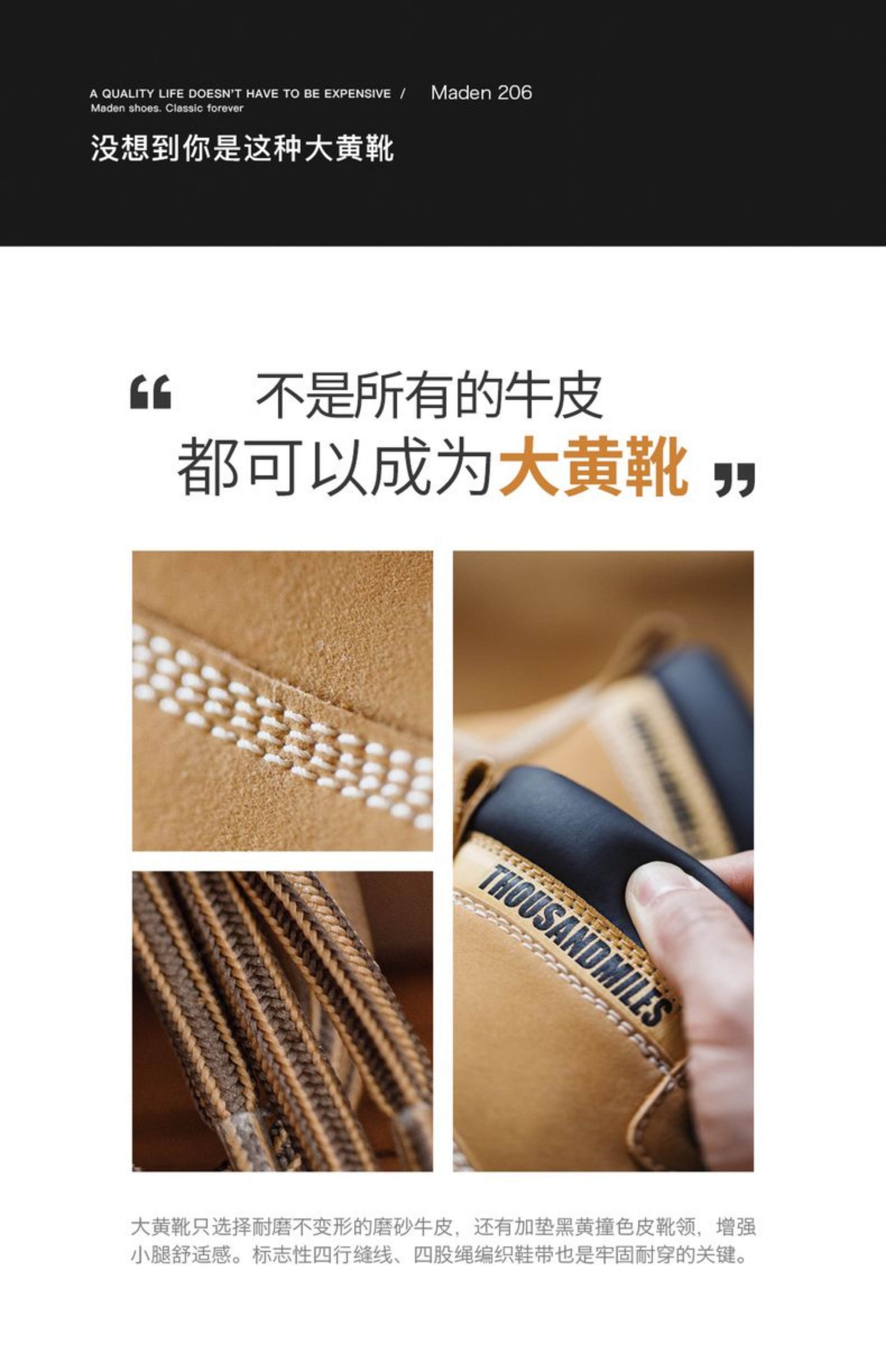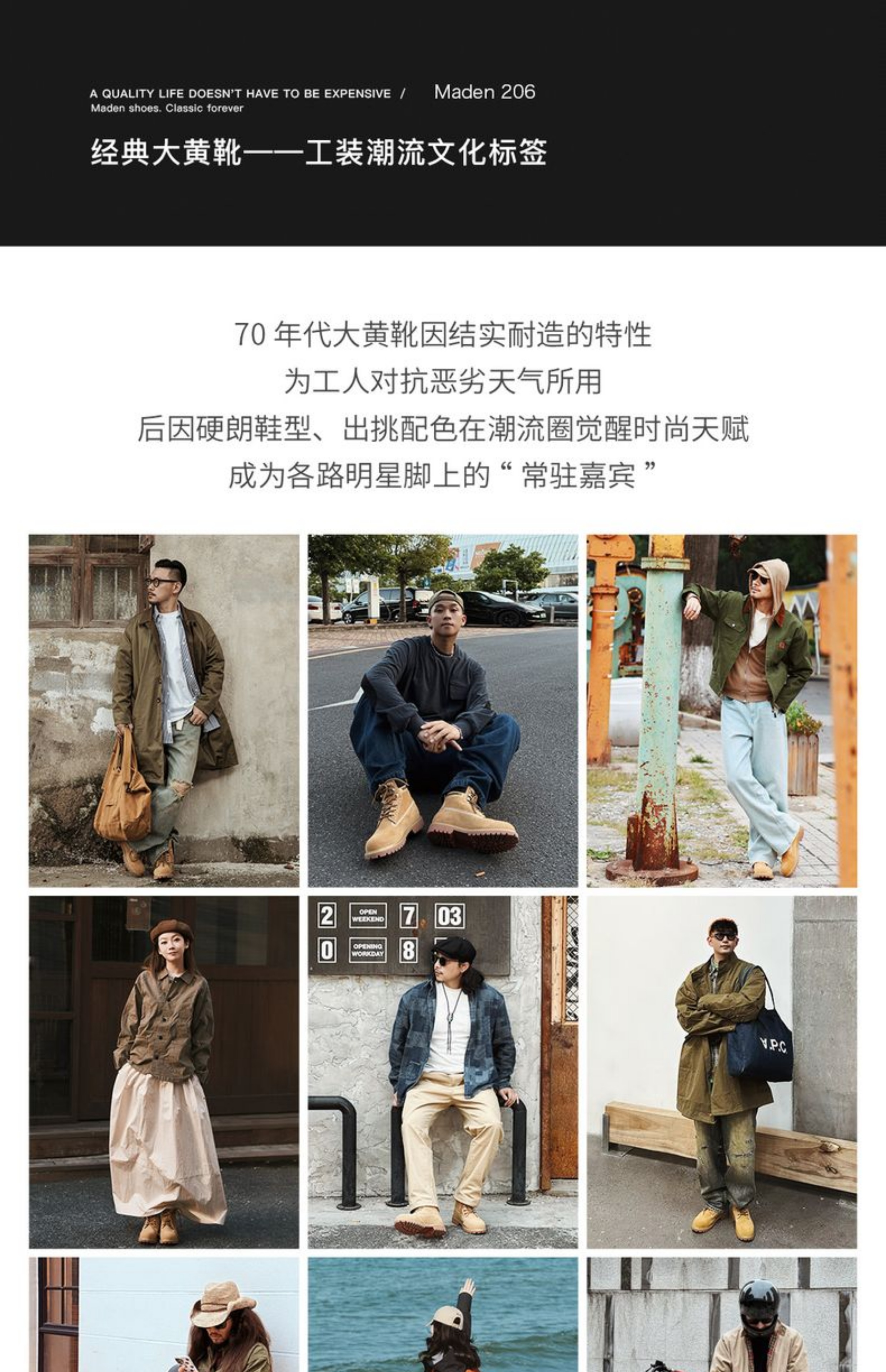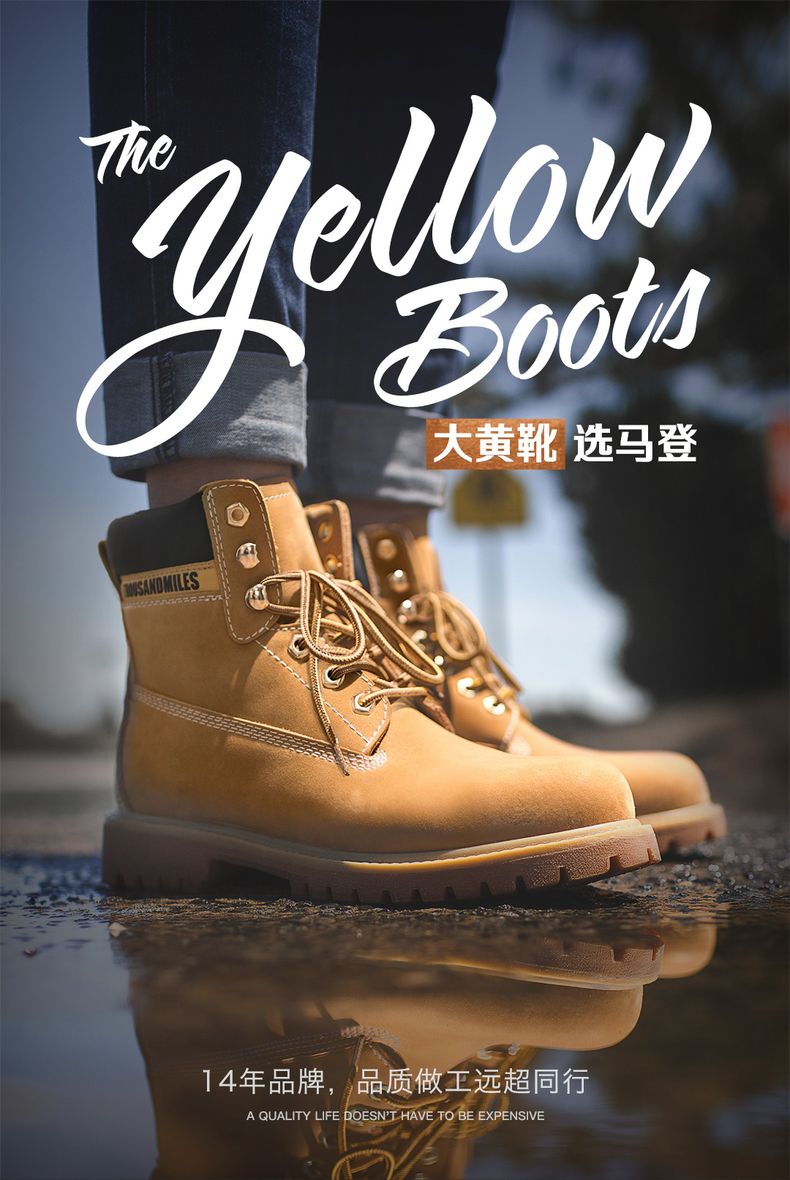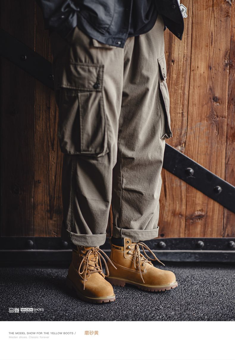 马登工装美式休闲大黄靴中帮马丁靴户外登山靴复古靴子男秋季新款