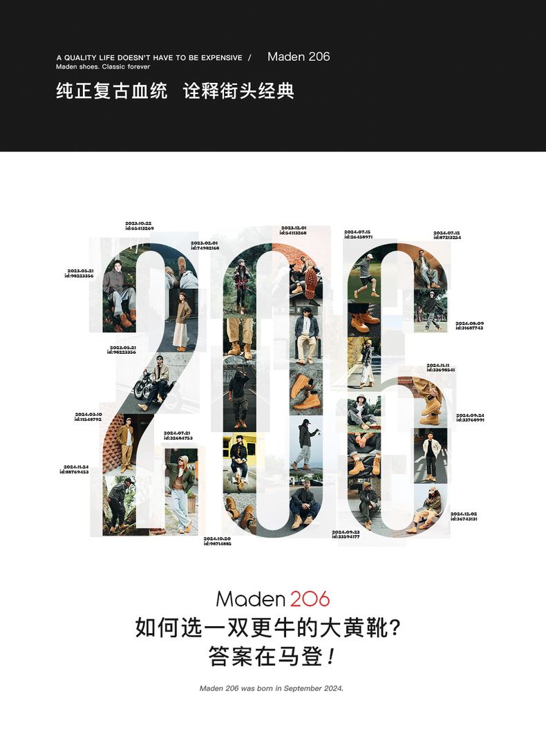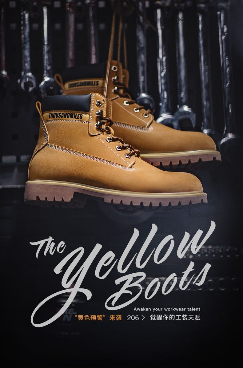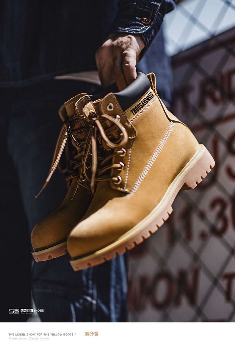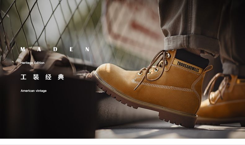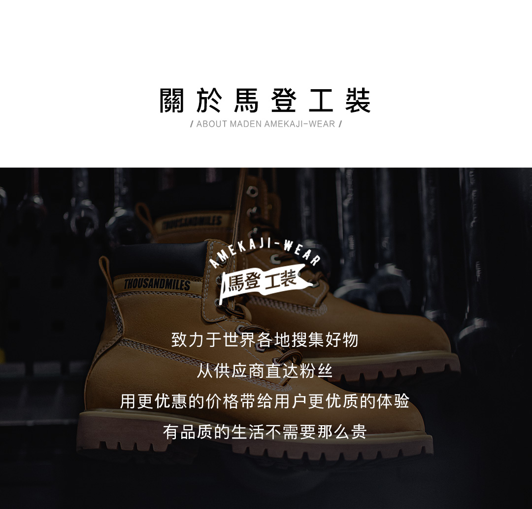 马登工装美式休闲大黄靴中帮马丁靴户外登山靴复古靴子男秋季新款