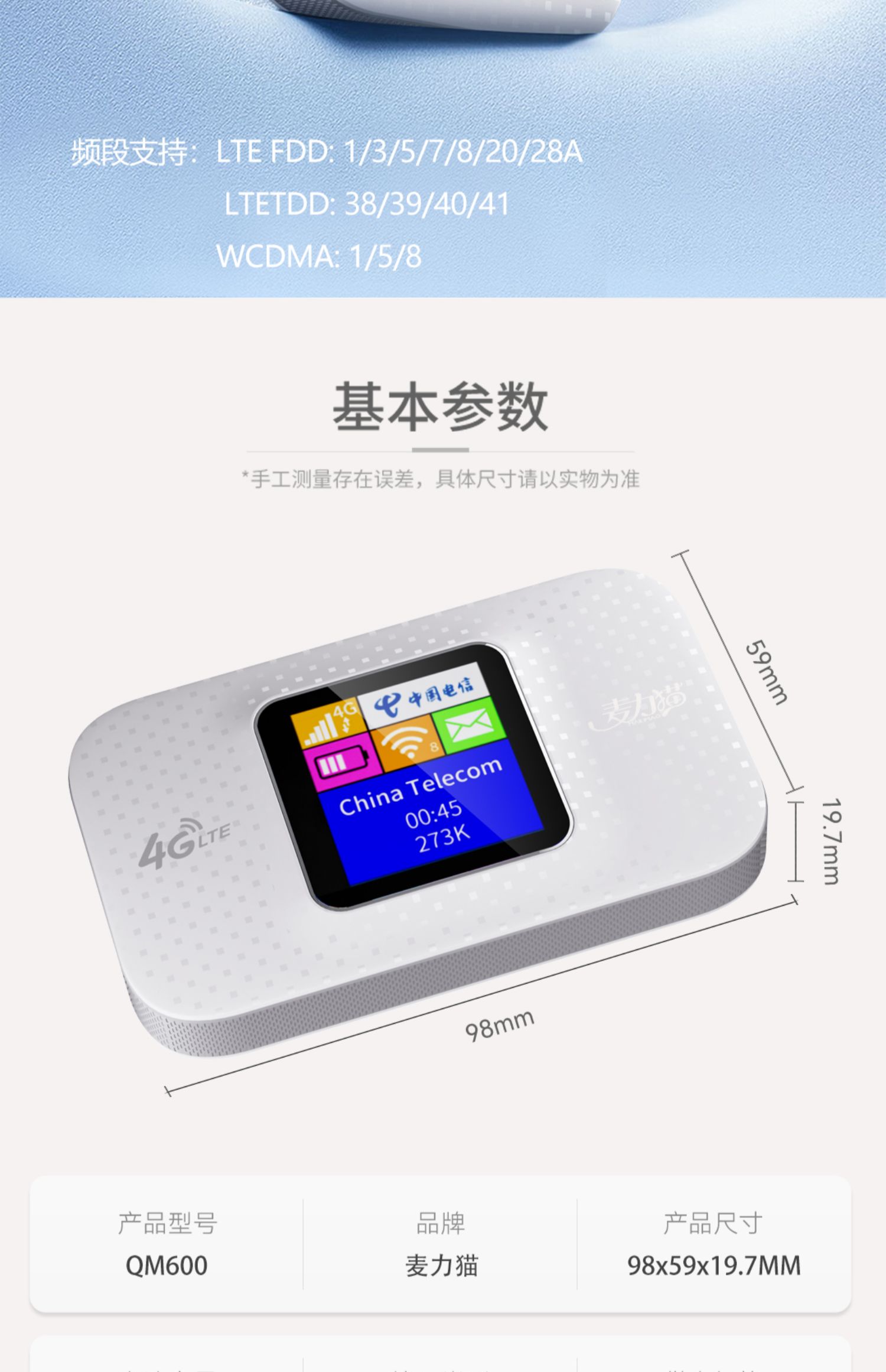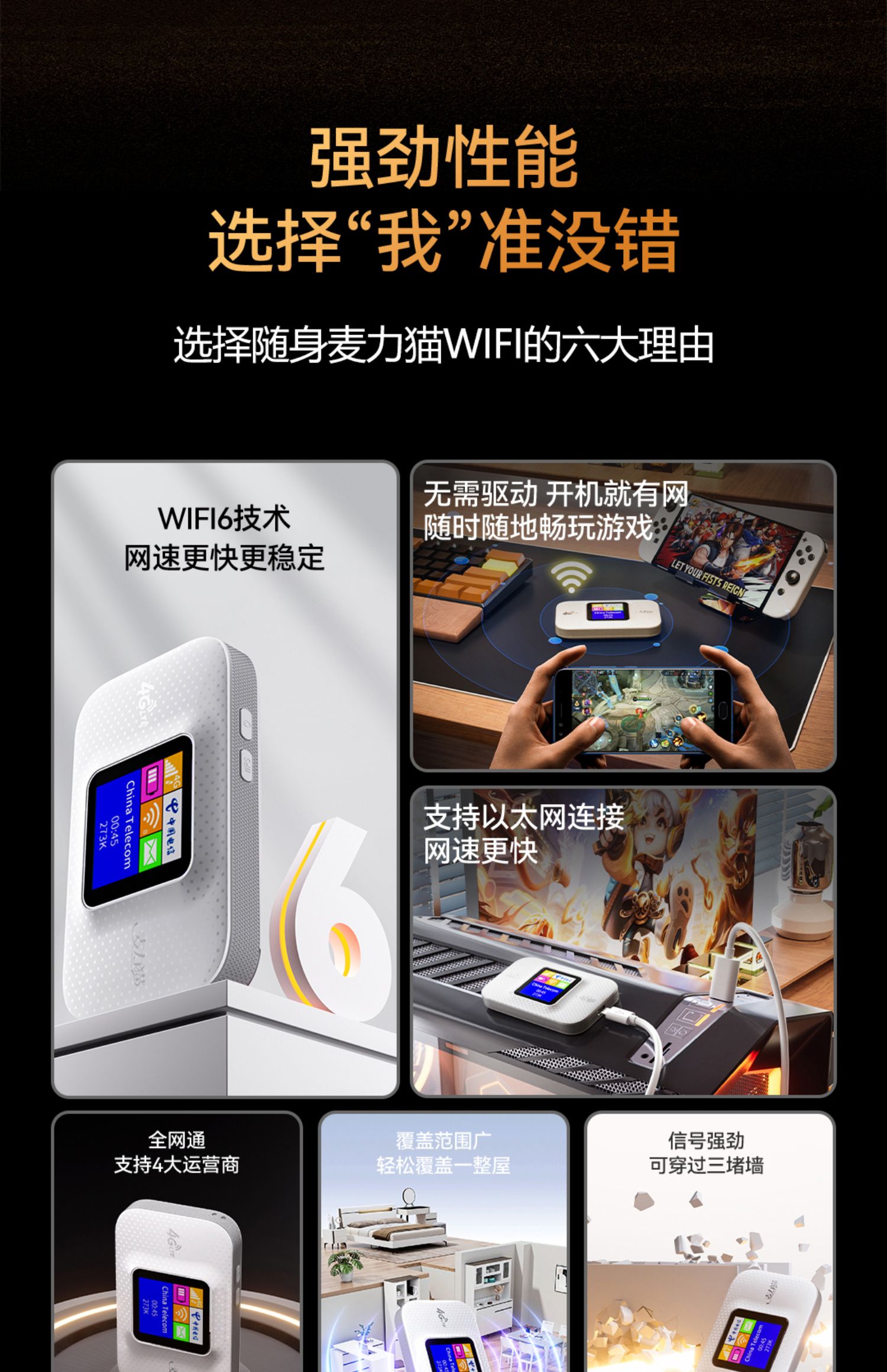 全网通4G随身WiFi6麦力猫无线路由器上网全国上网宝 移动电信联通车载mifi 笔记本热点电脑网络