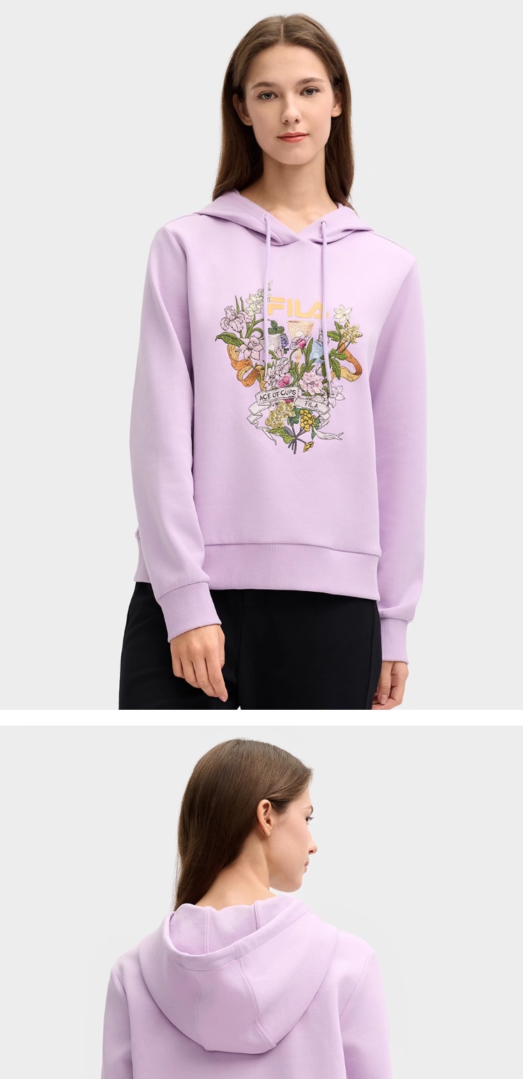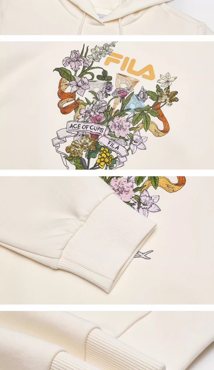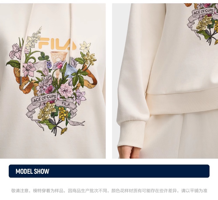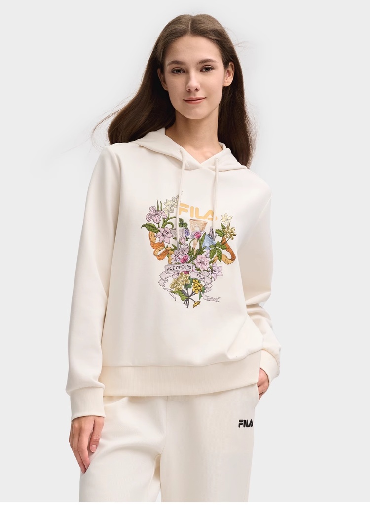 FILA 斐乐官方女子连帽卫衣2025春新款休闲舒适花朵刺绣针织上衣