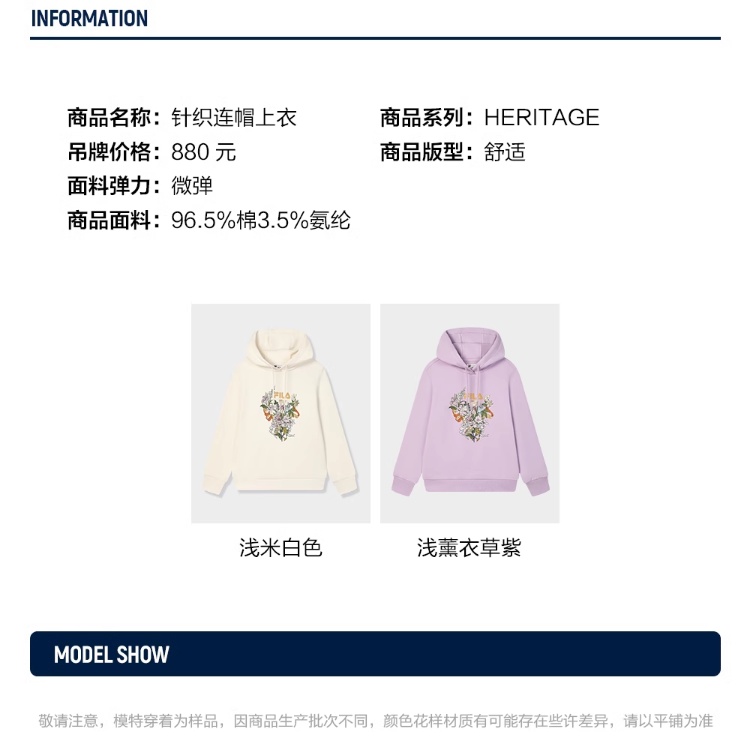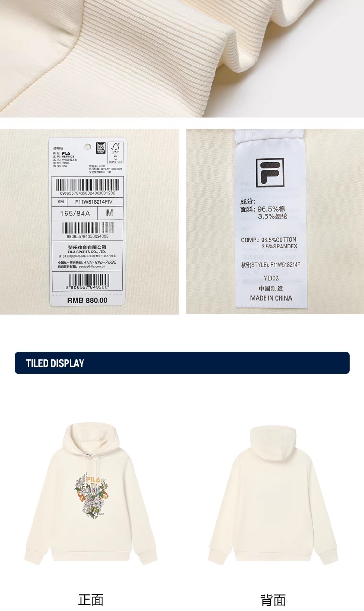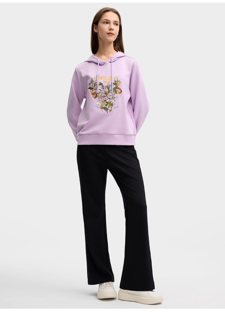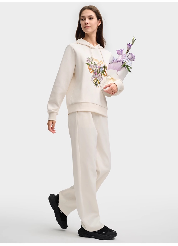 FILA 斐乐官方女子连帽卫衣2025春新款休闲舒适花朵刺绣针织上衣