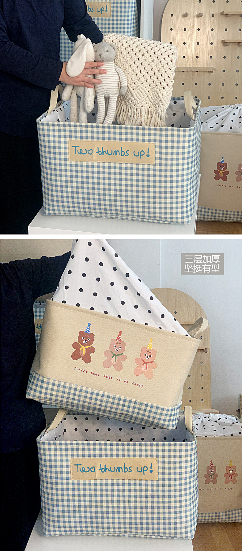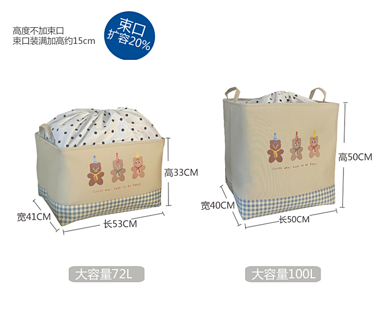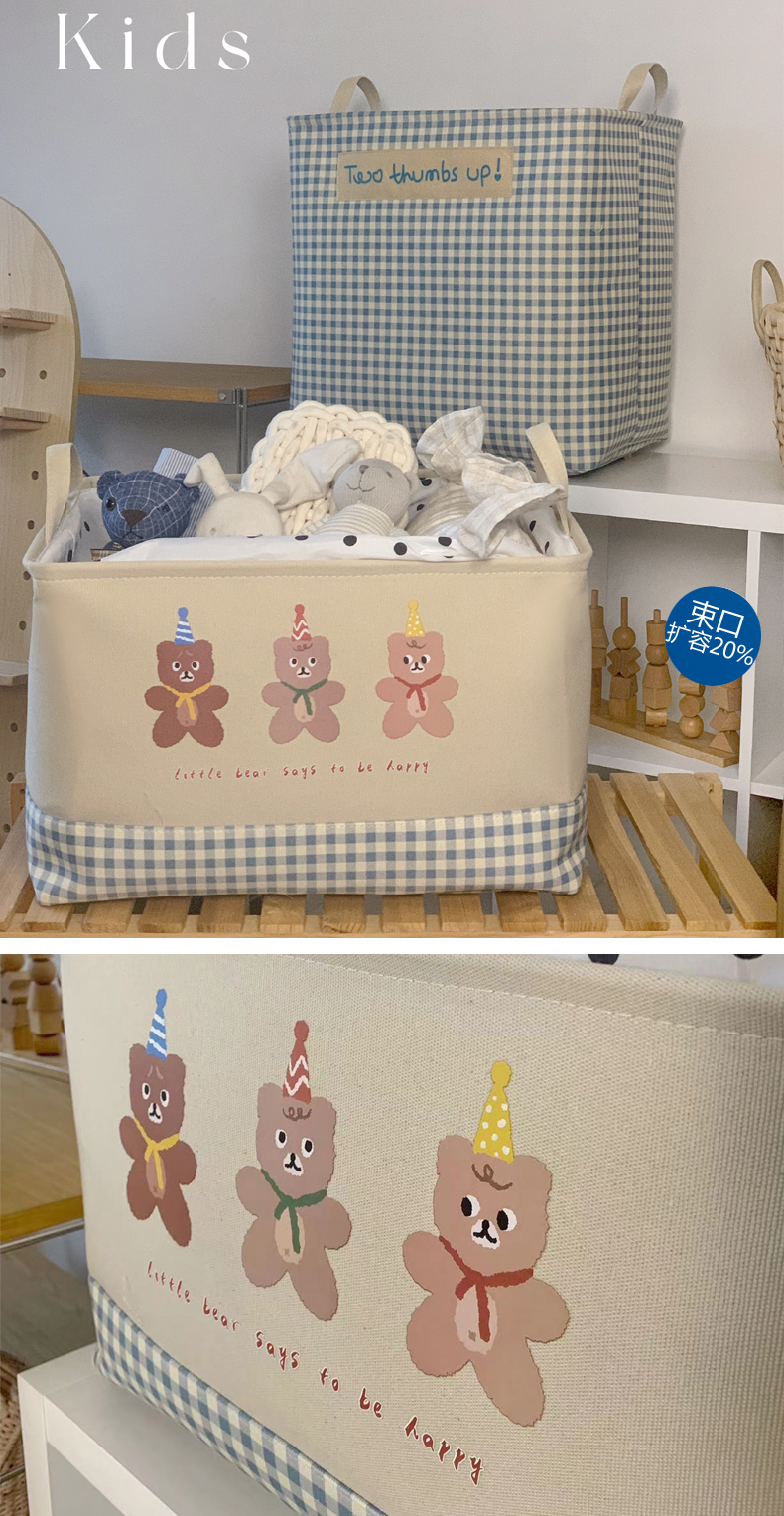 北欧ins风卡通束口防尘加厚布艺收纳筐车载宿舍衣服脏衣桶储物箱
