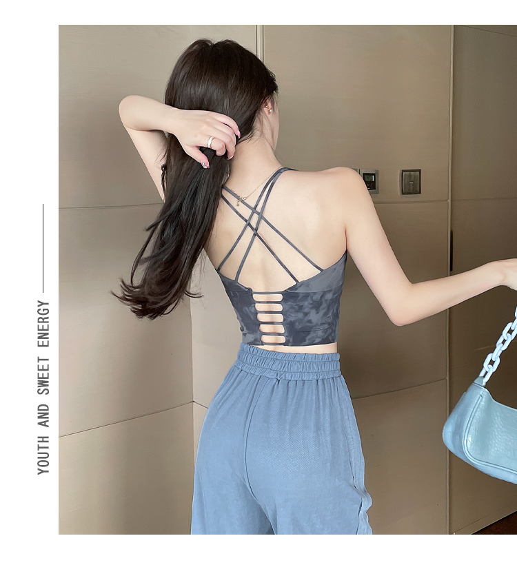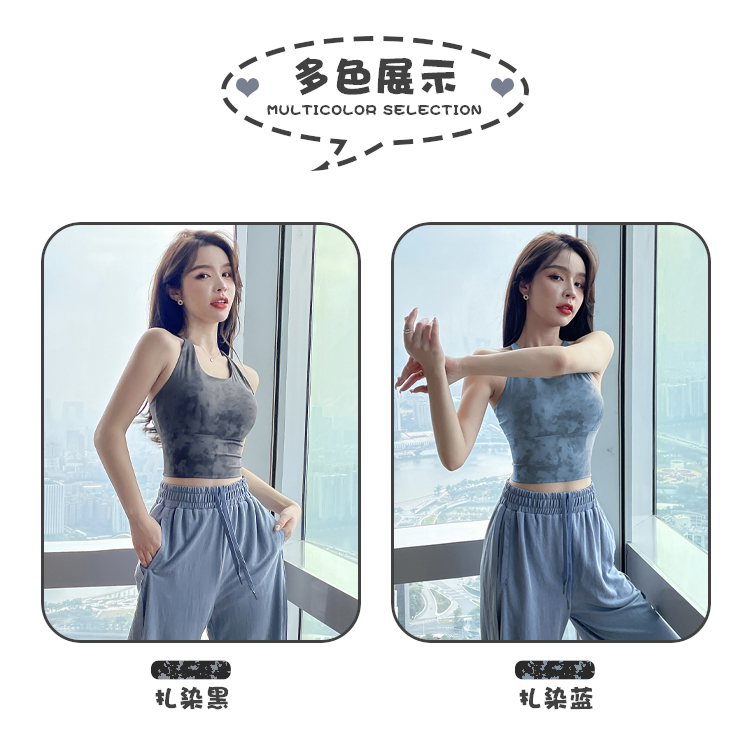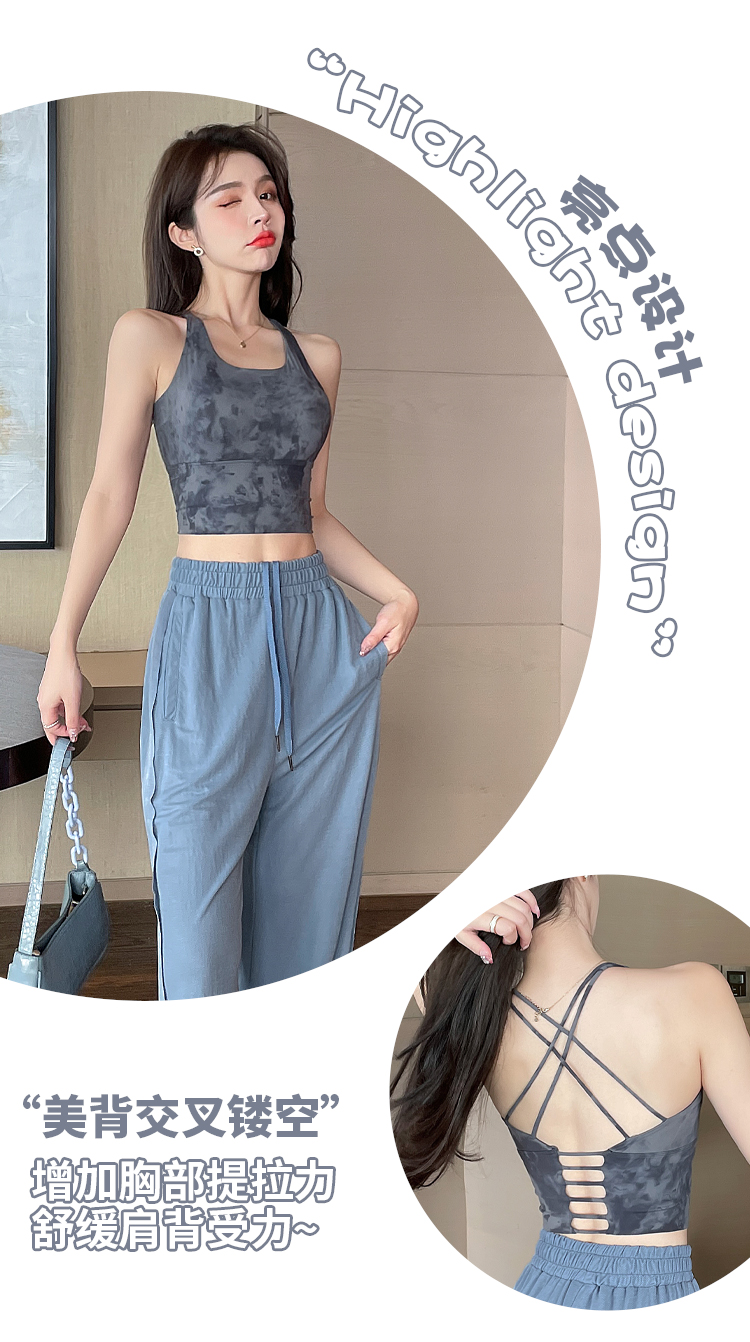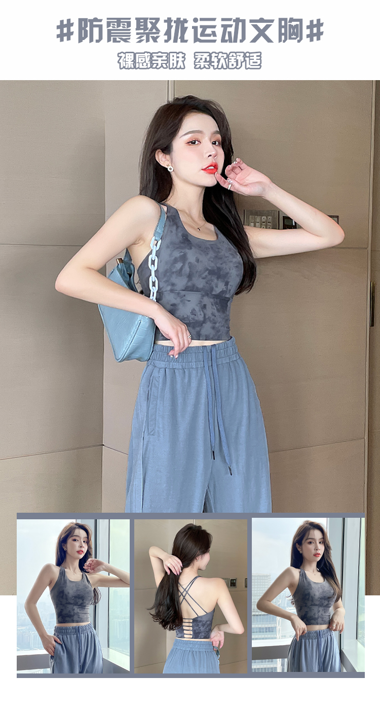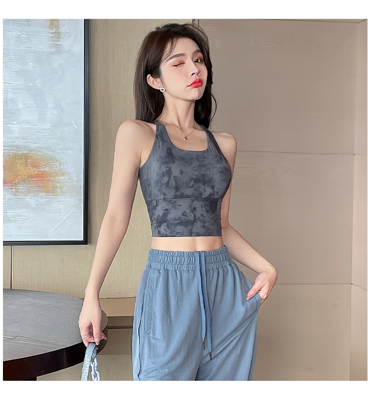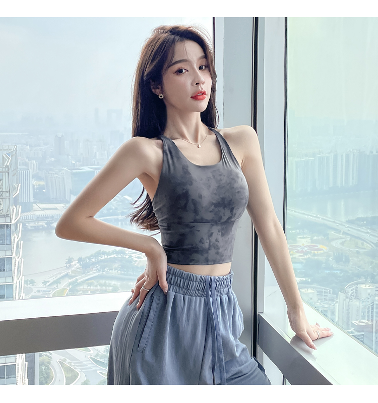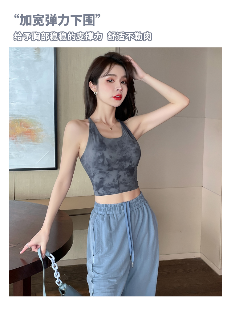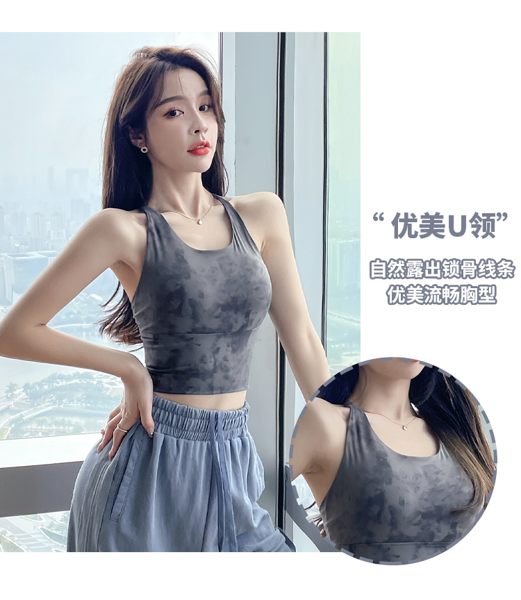 岚纹扎染性感瑜伽背心女防震聚拢跑步运动内衣女美背健身文胸夏季