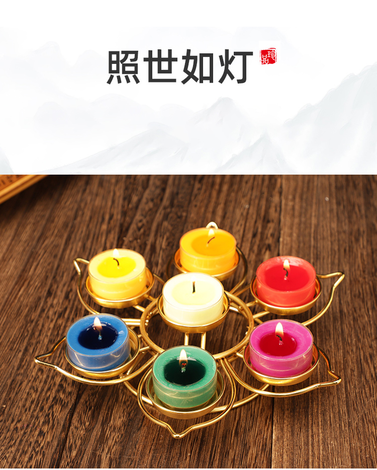 双层合金酥油灯座108盏蜡烛台七星莲花座佛供灯架长明灯佛具用品