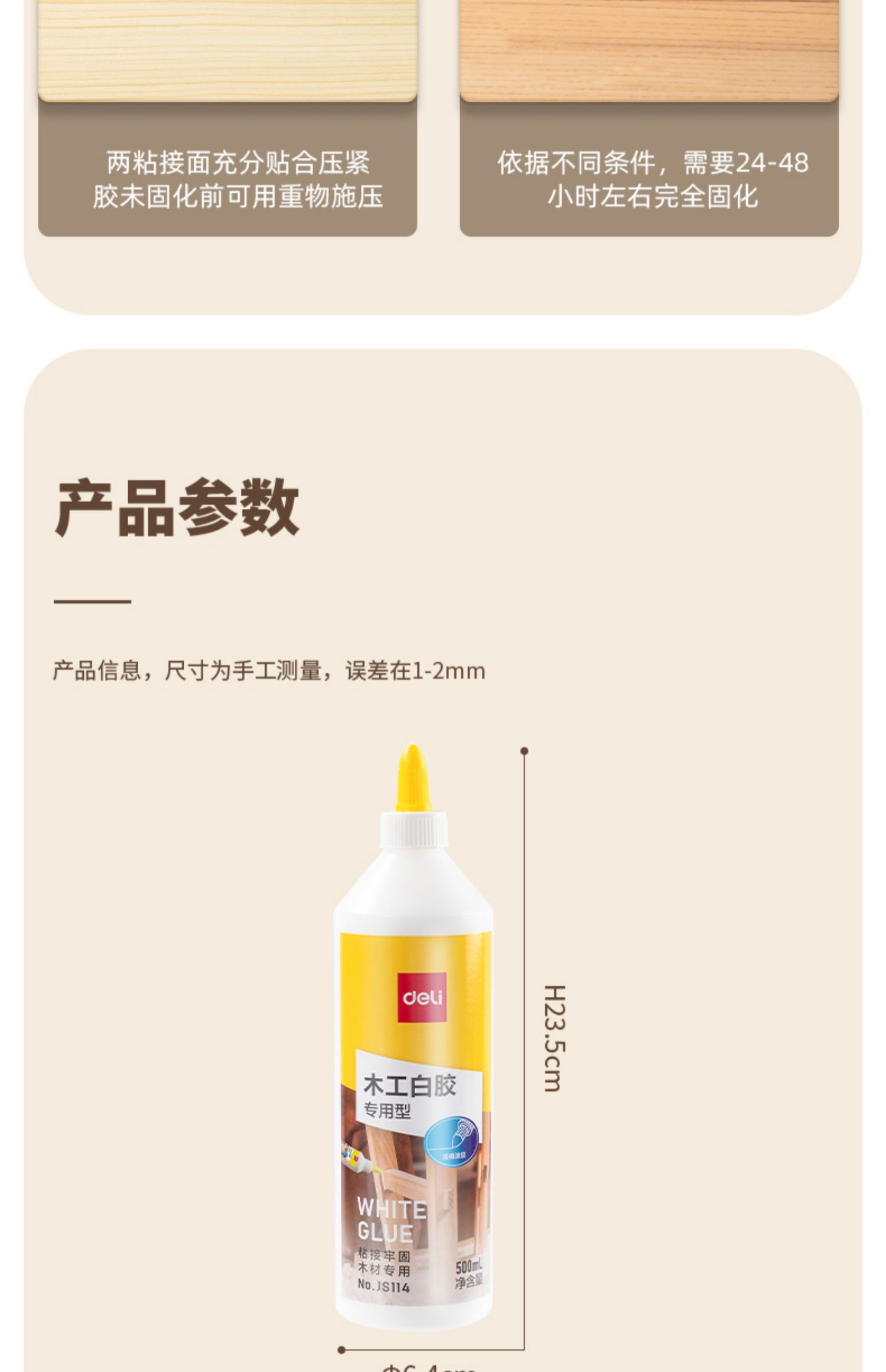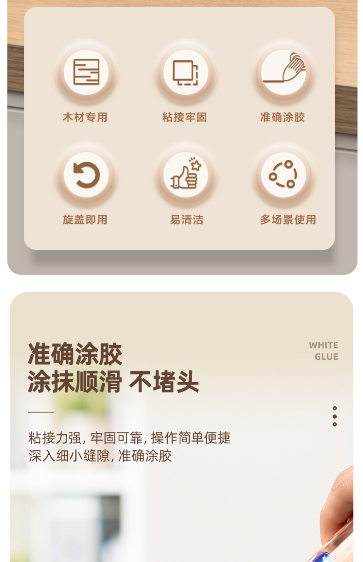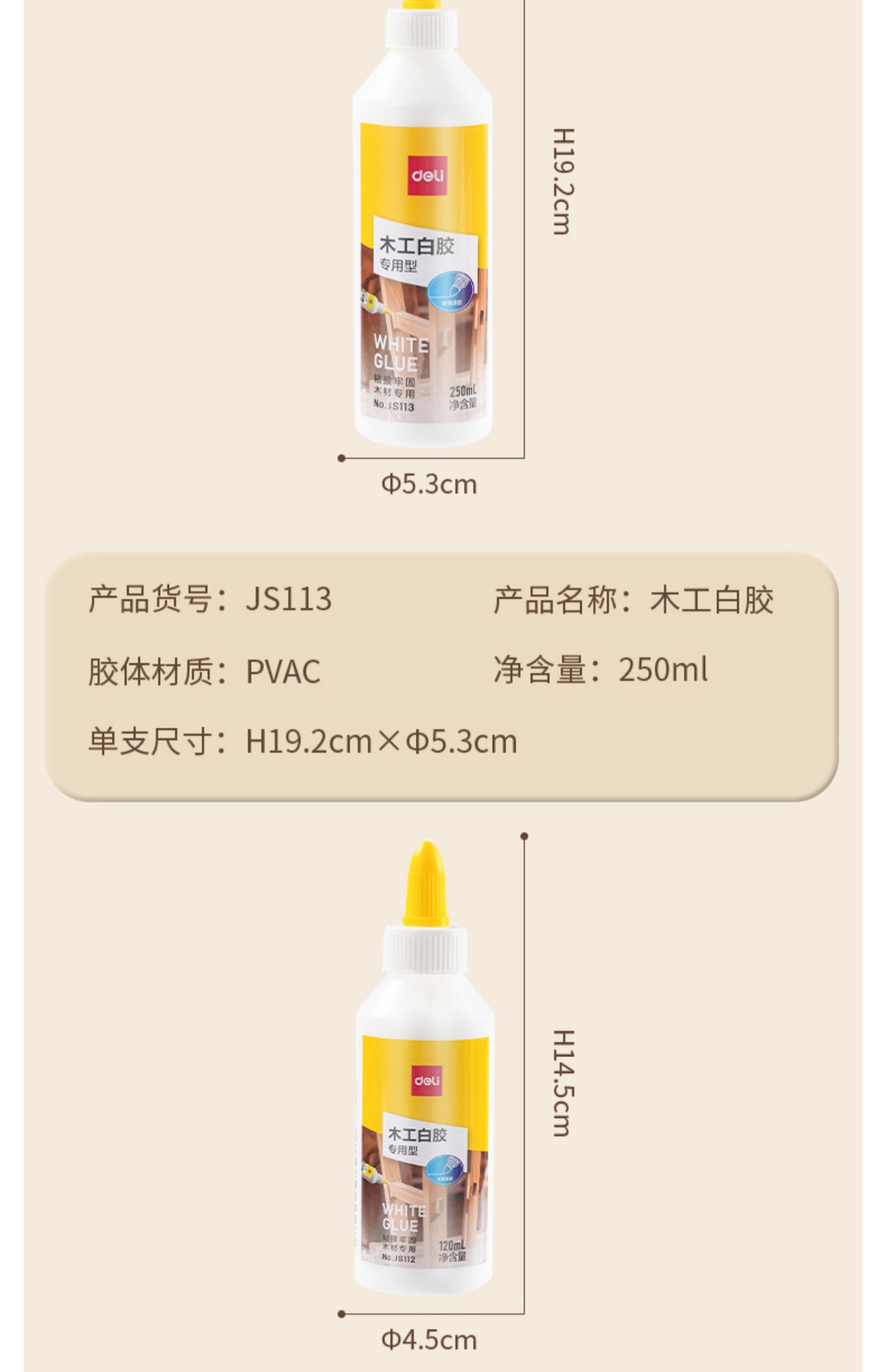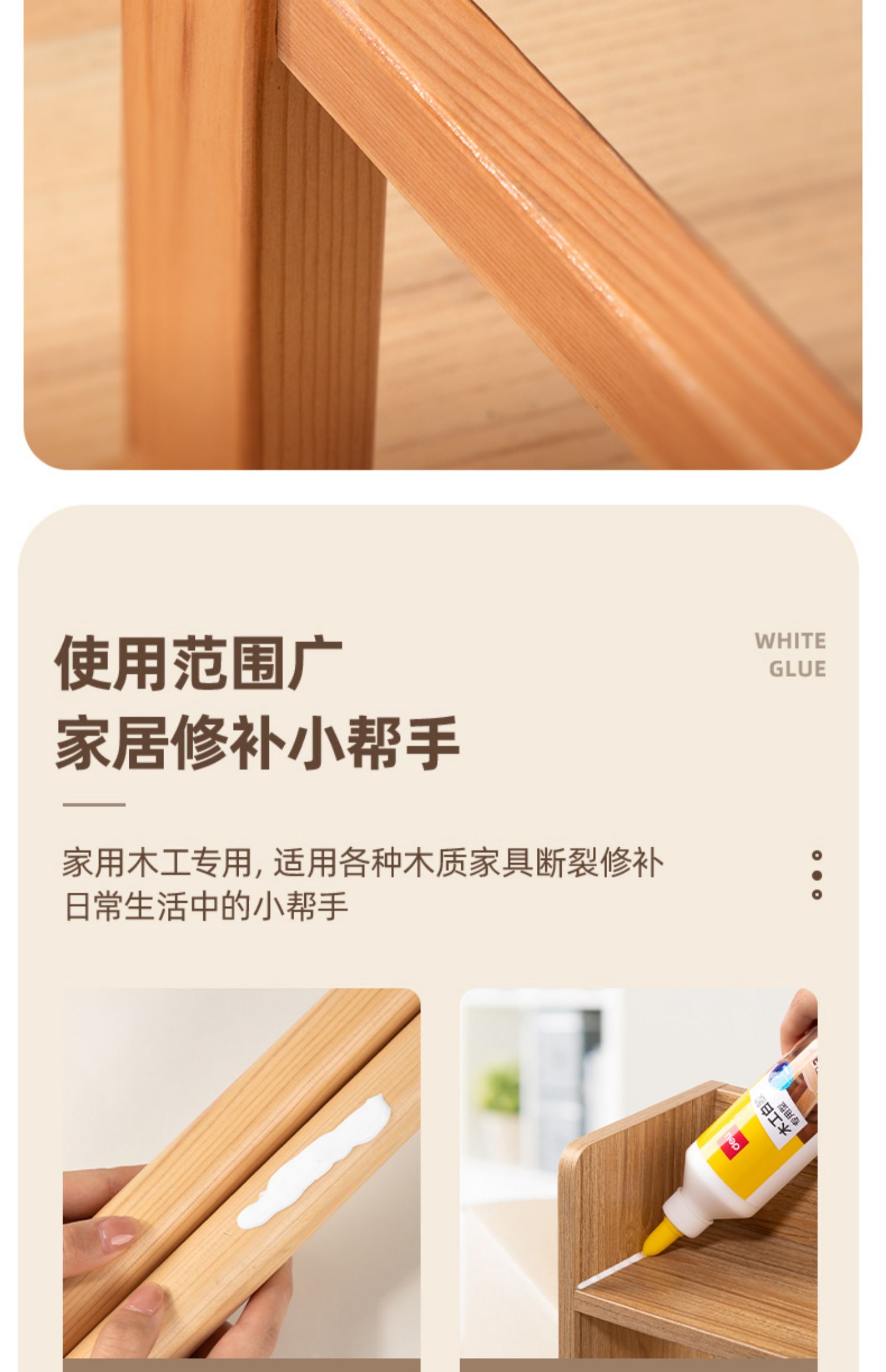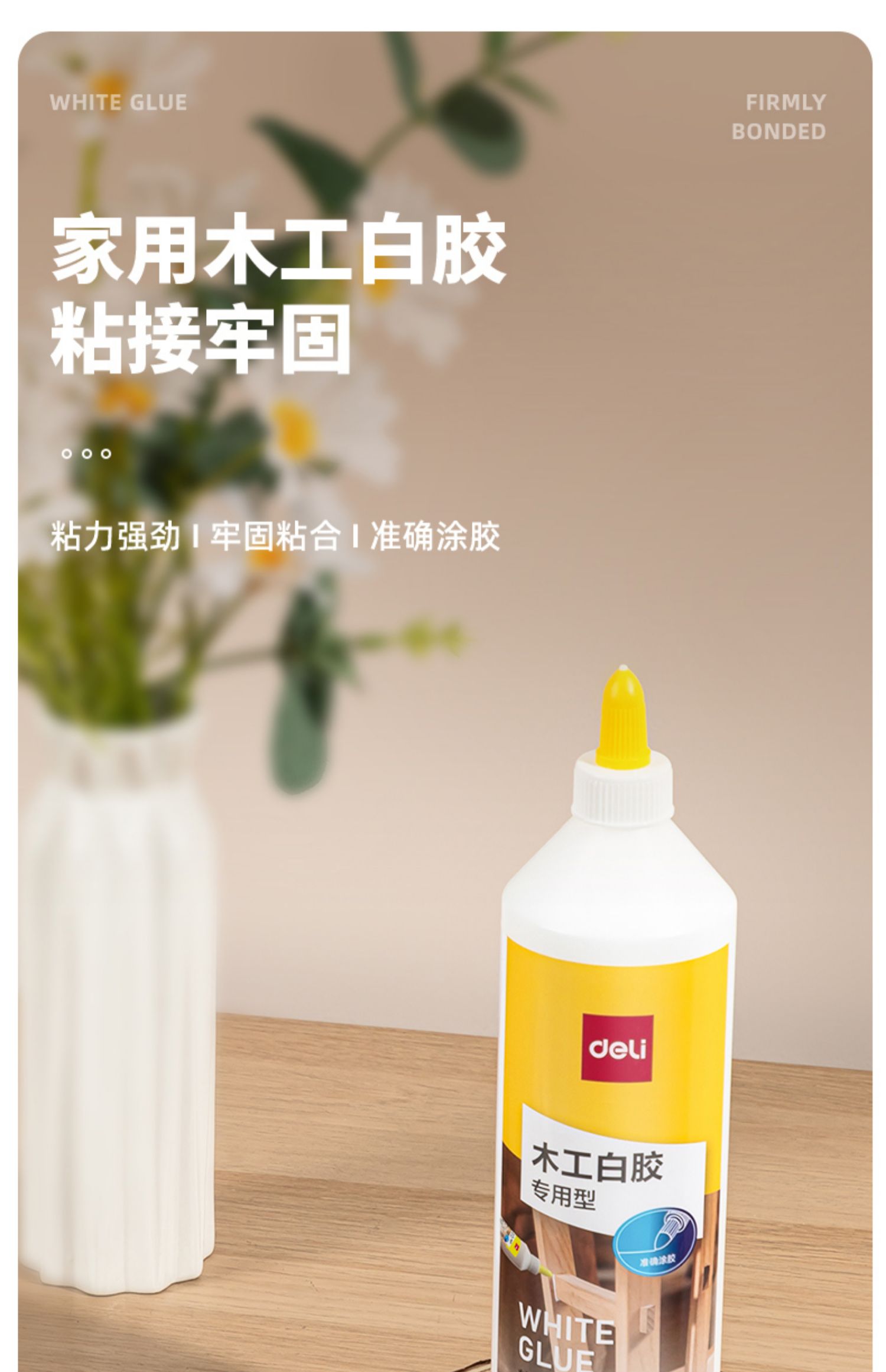得力木工胶水木头胶水手工胶水白胶乳白胶小瓶强力粘贴家具木材专用胶实木地板椅子免打孔粘合剂快干强力胶水