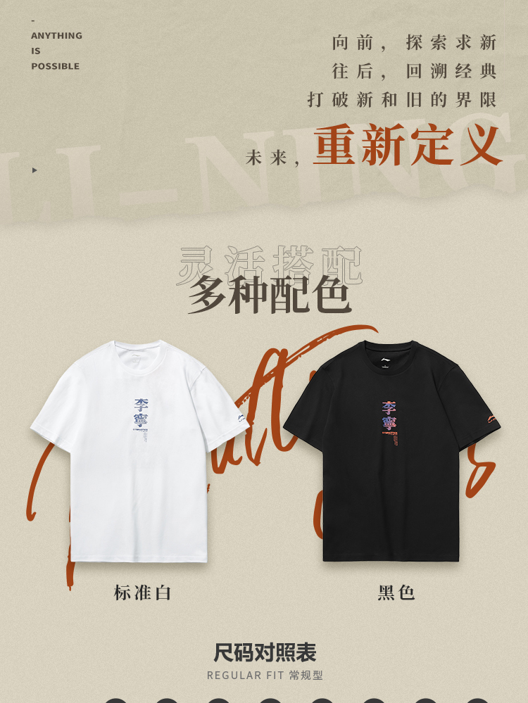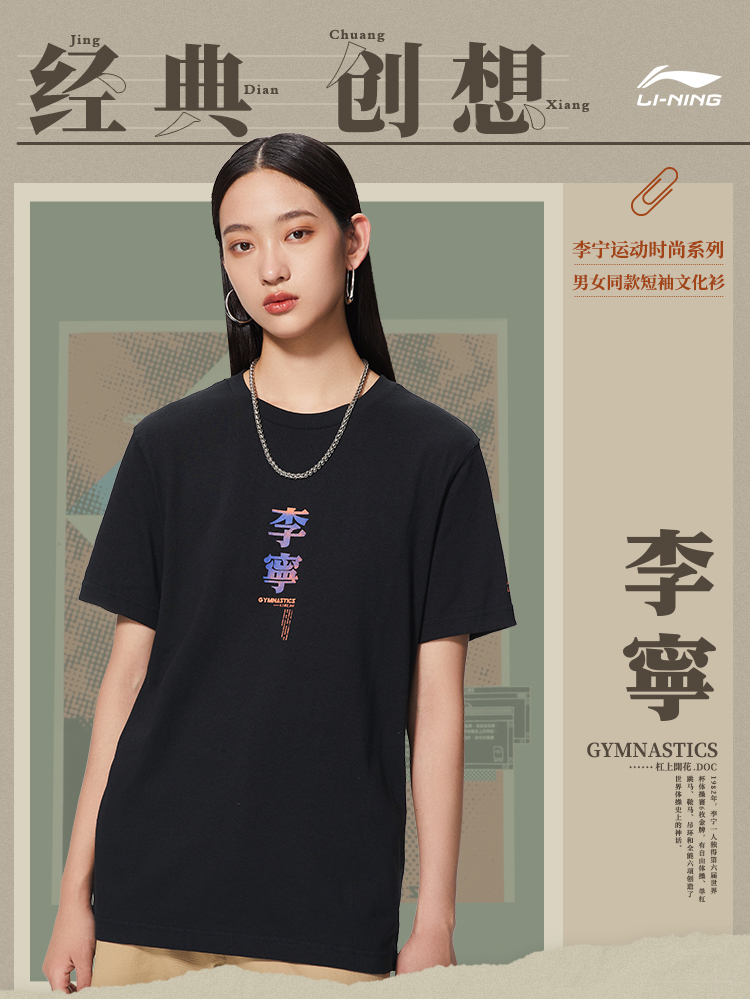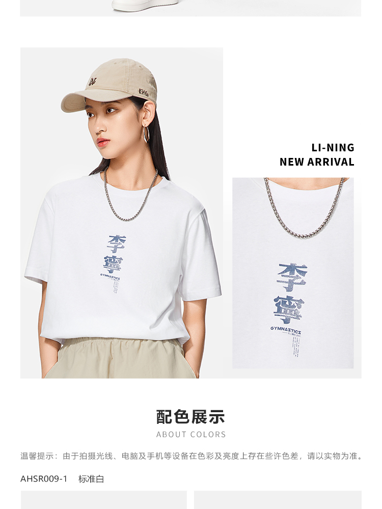 李宁短袖T恤男女同款官方半袖时尚夏季圆领体恤情侣休闲运动服女