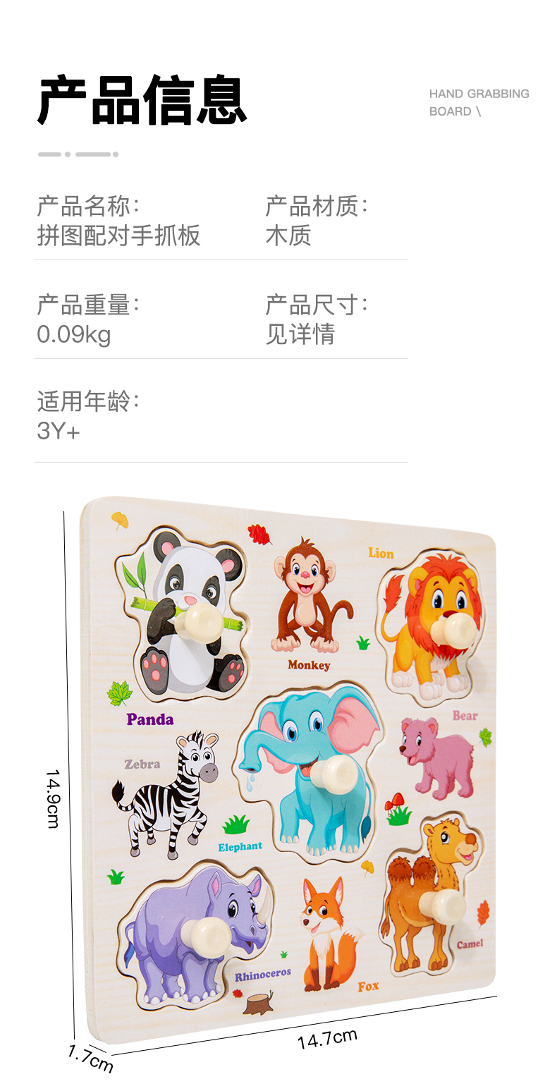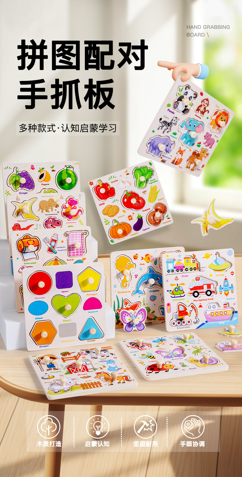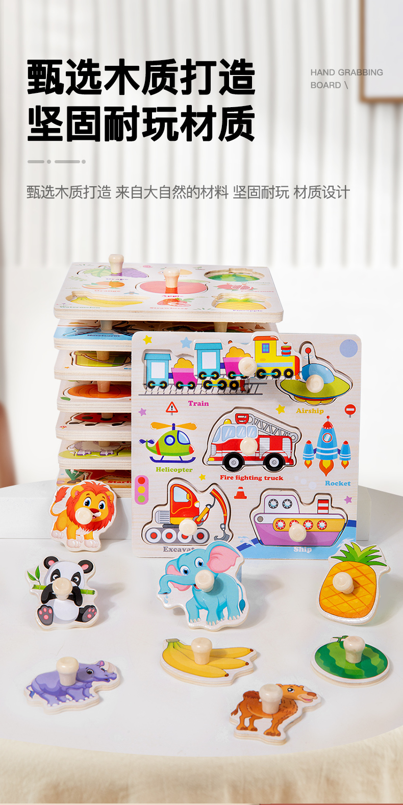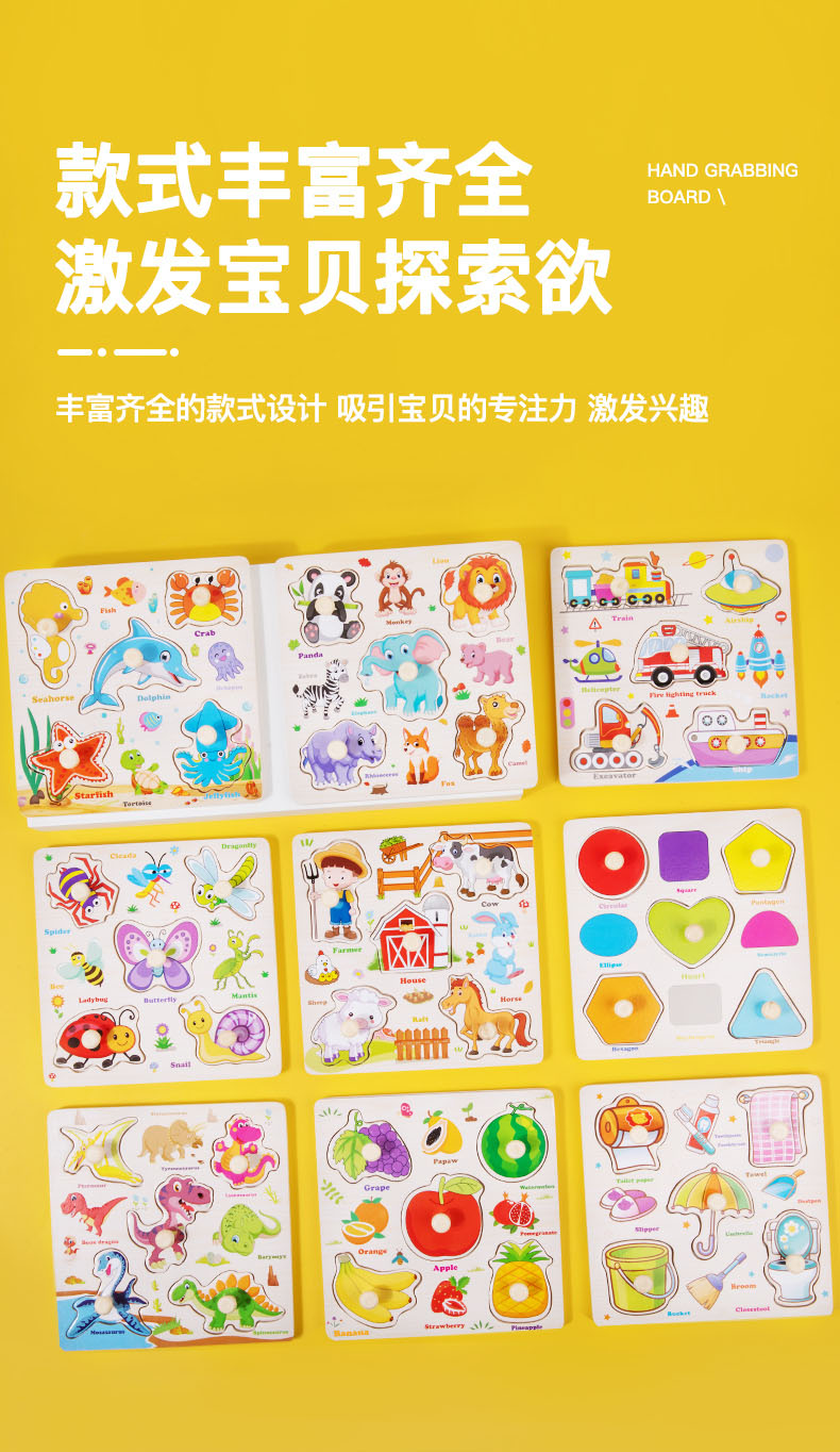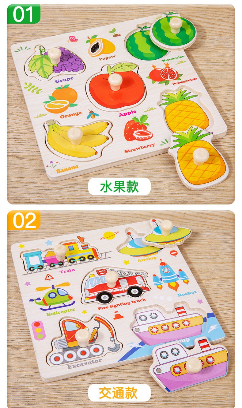 早教拼图儿童益智玩具拼板幼儿宝宝木丁嵌板1-3岁认知配对手抓板