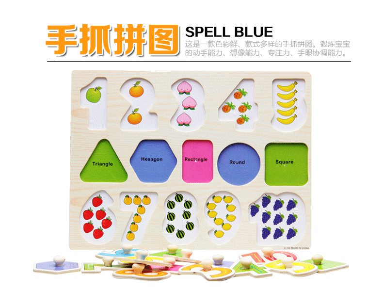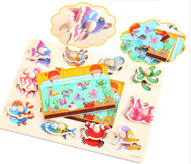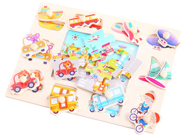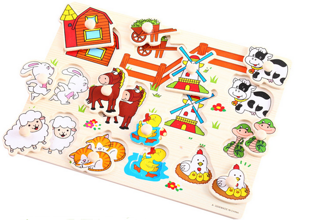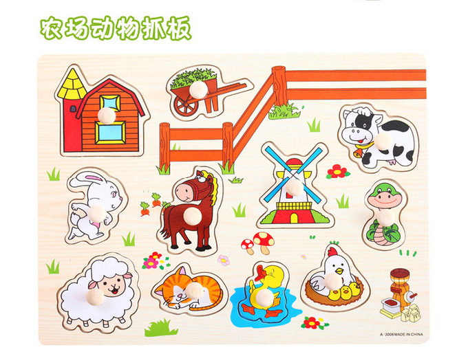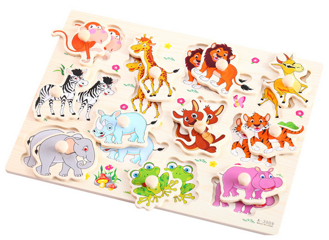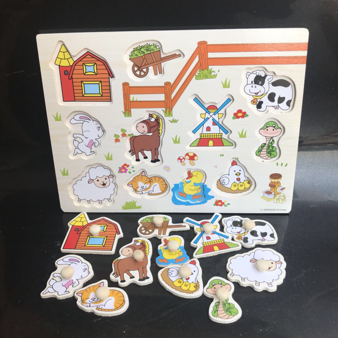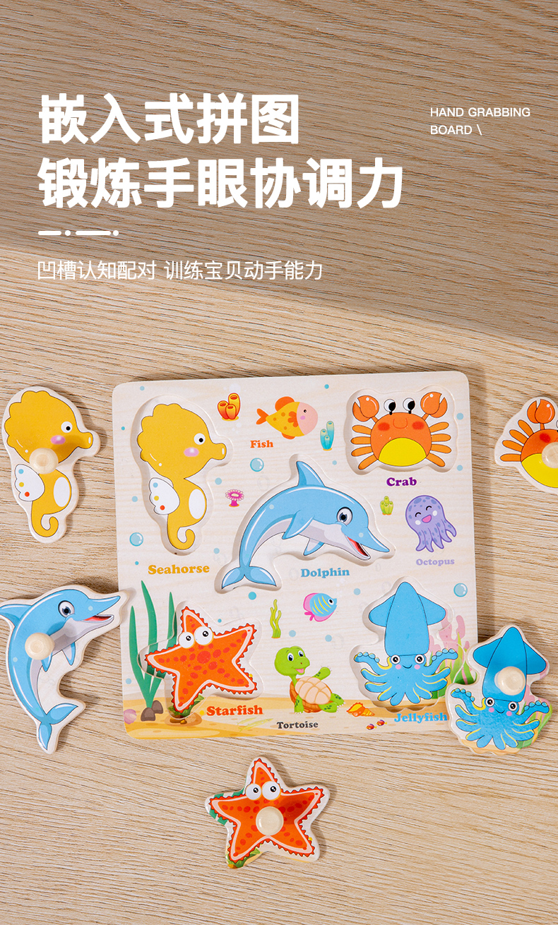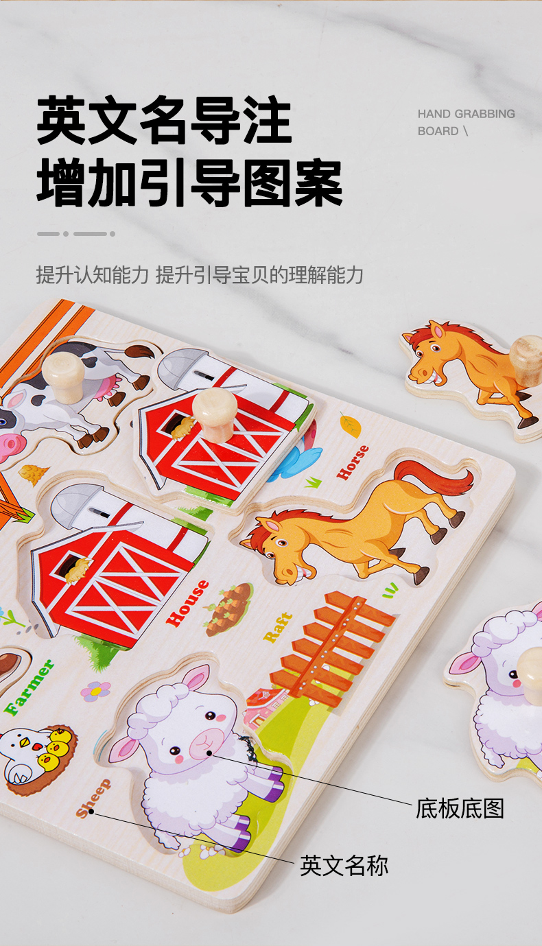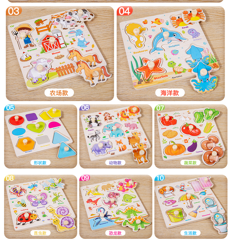 早教拼图儿童益智玩具拼板幼儿宝宝木丁嵌板1-3岁认知配对手抓板