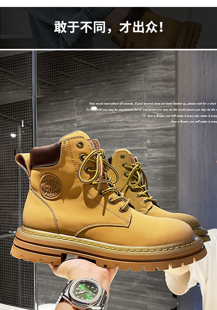特大码马丁靴45真皮男士大黄靴46英伦风工装靴子47高帮加绒男鞋48
