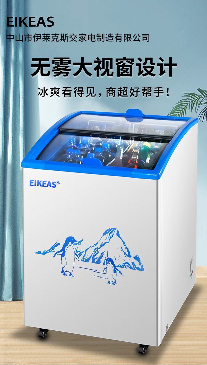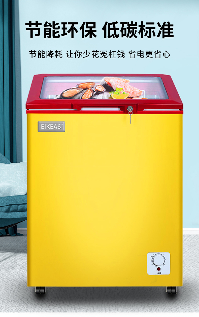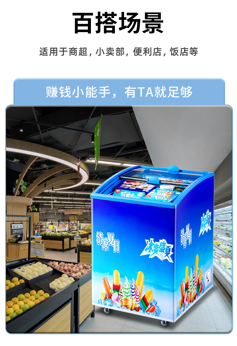 冷柜小型迷你雪糕柜冷冻冷藏商用冰柜冰激凌冷冻柜圆弧带锁展示柜