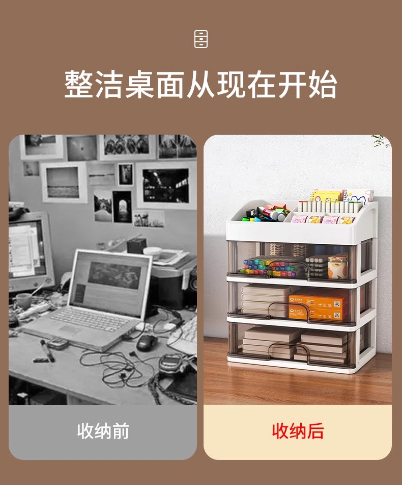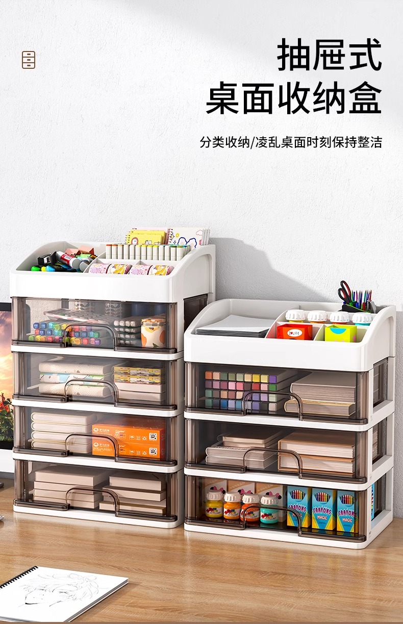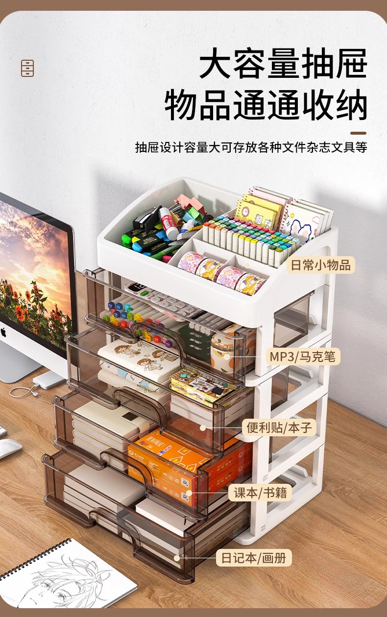 抽屉式桌面收纳盒办公室书桌整理办公桌文件文具置物架桌上储物柜
