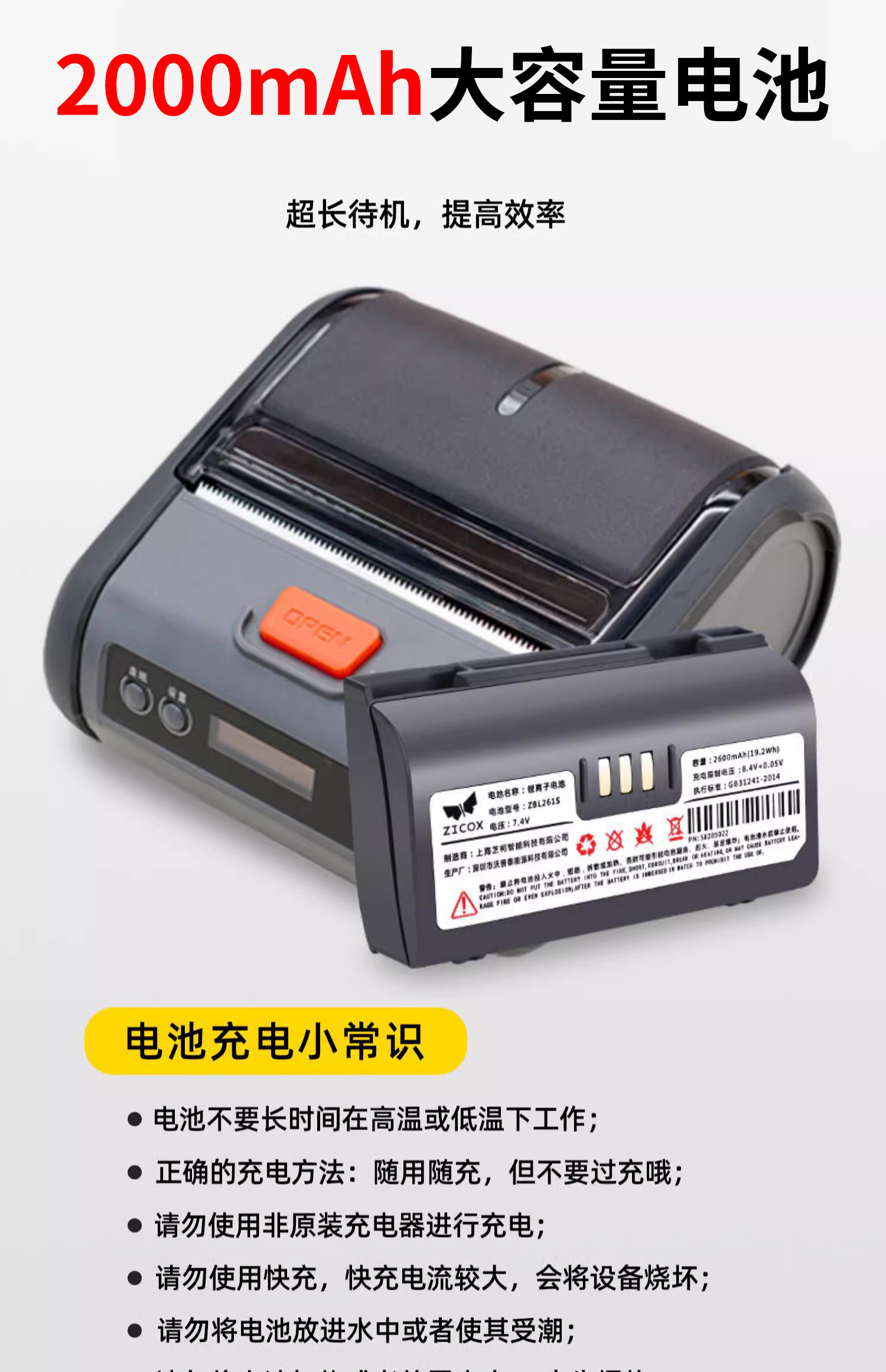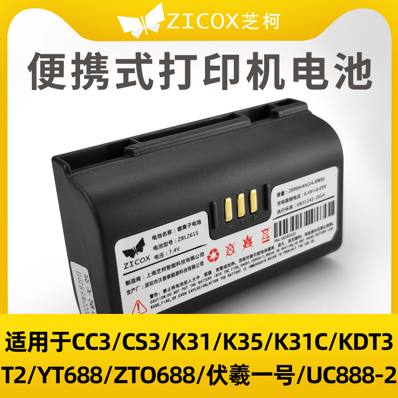 芝柯 CC3/CC4电池CS3便携快递打印机电池K35/K31/KDT3中通ZTO688圆通ZTO588兔喜优速菜鸟驿站原装电池ZBL261S