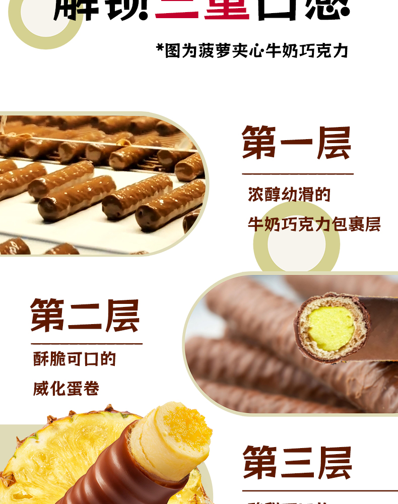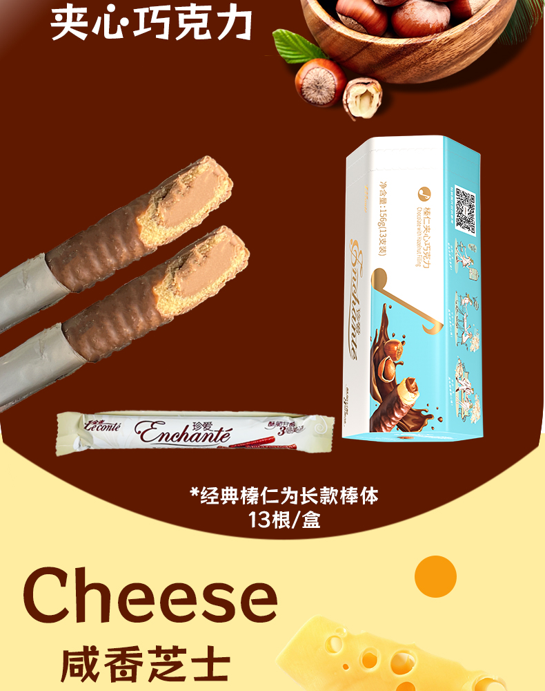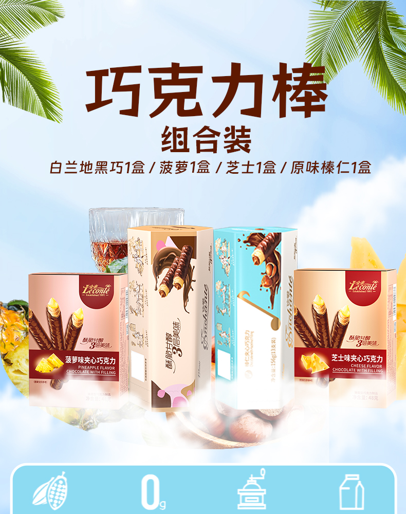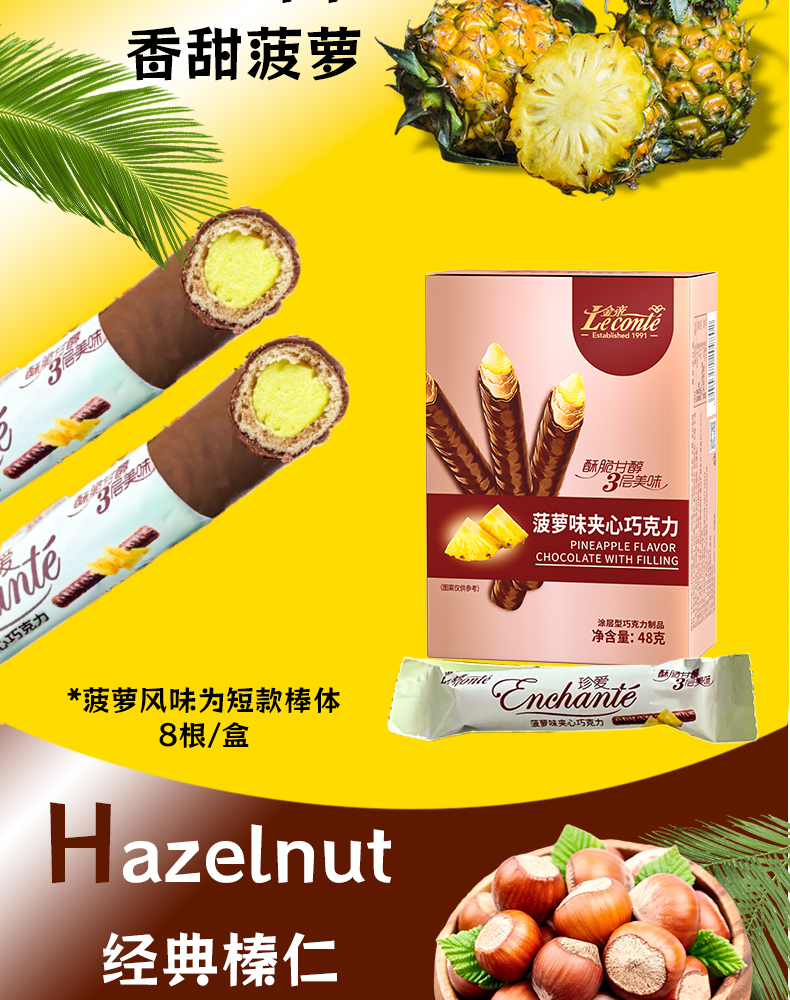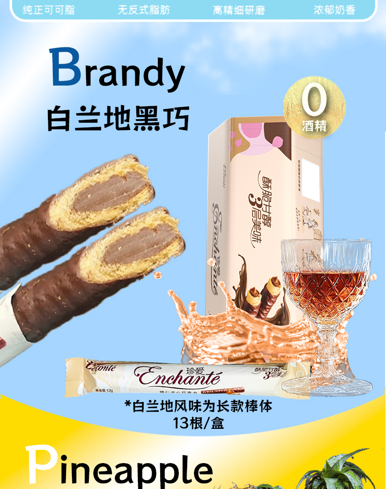 金帝夹心巧克力棒经典榛仁菠萝芝士白兰地纯可脂网红休闲零食生日
