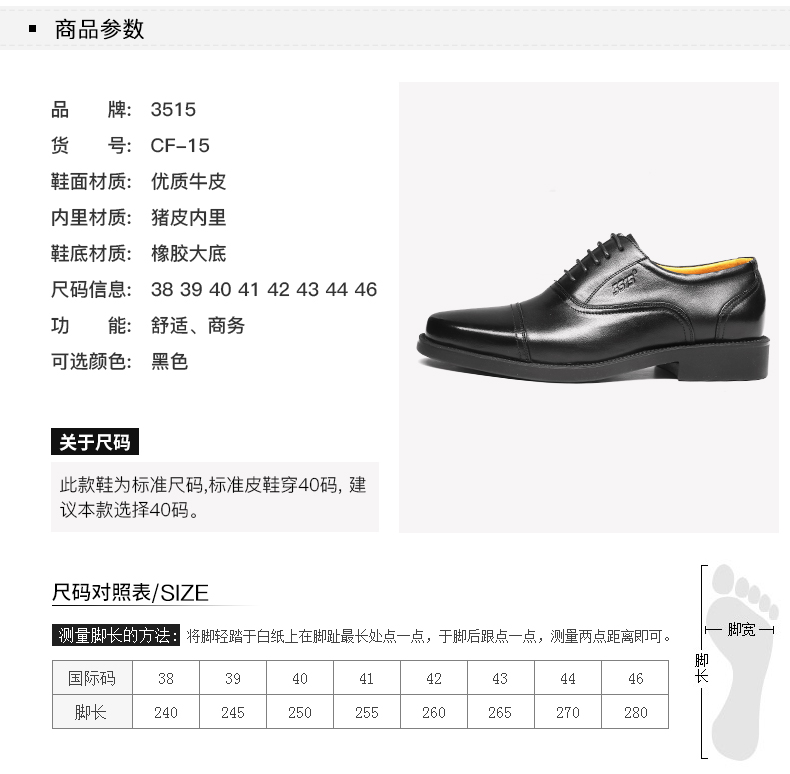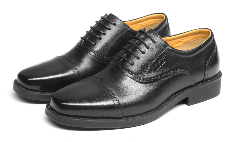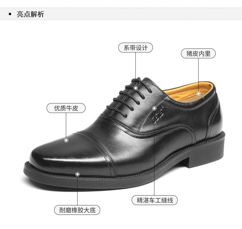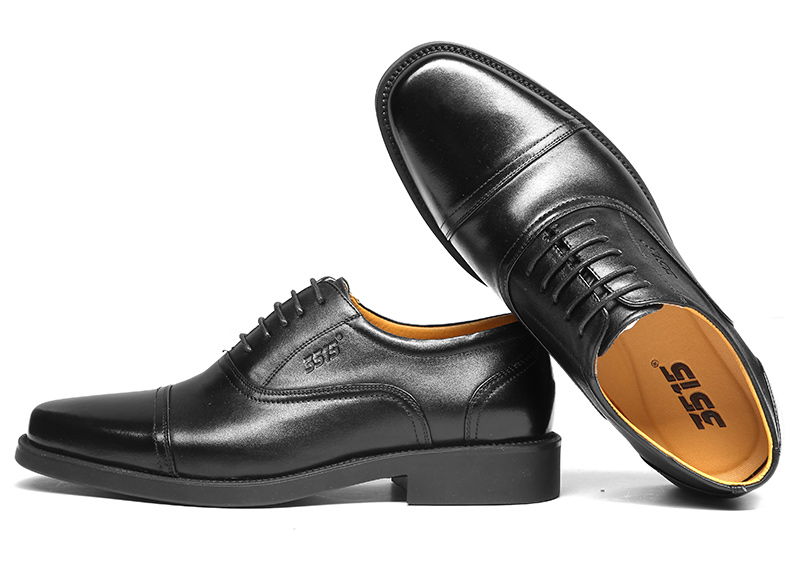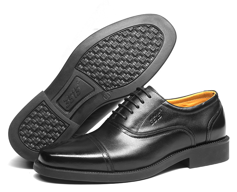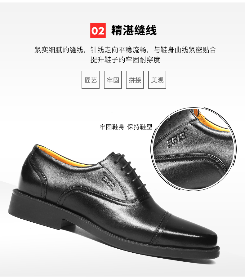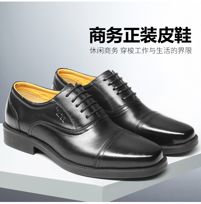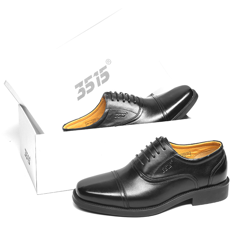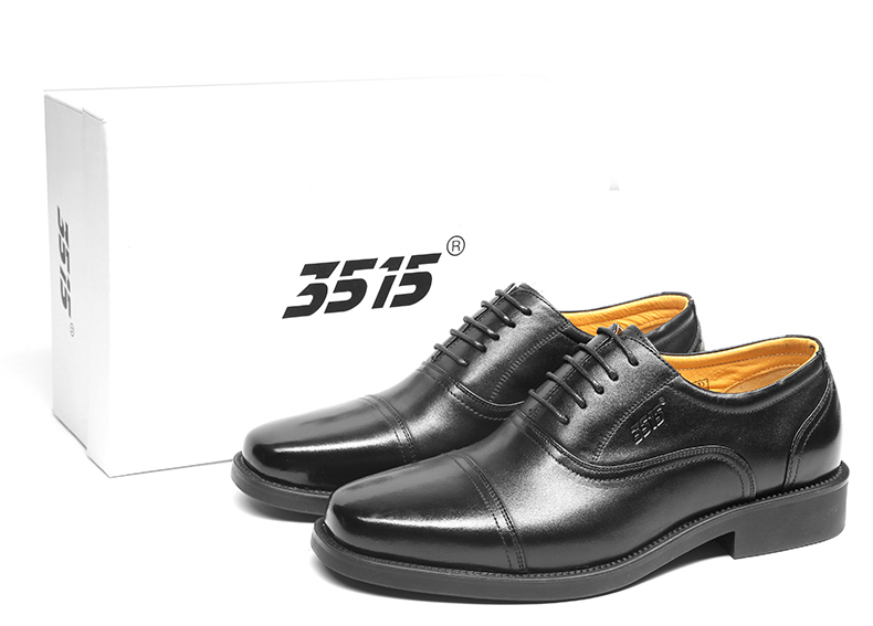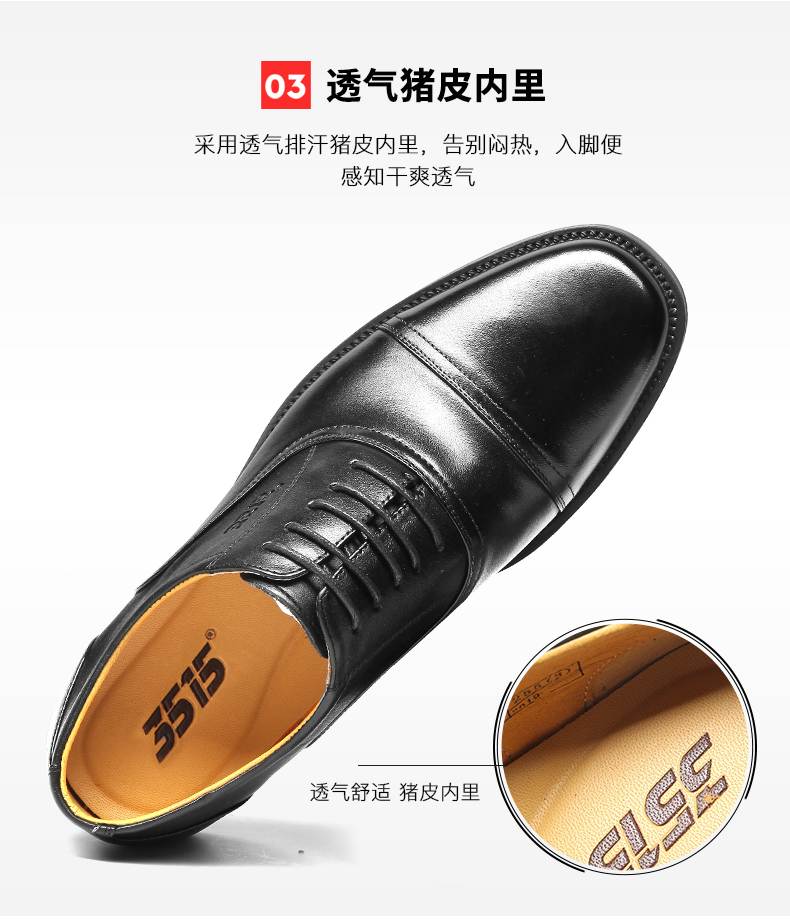 3515强人正品春秋夏季真皮透气黑皮鞋男士商务正装系带三接头皮鞋