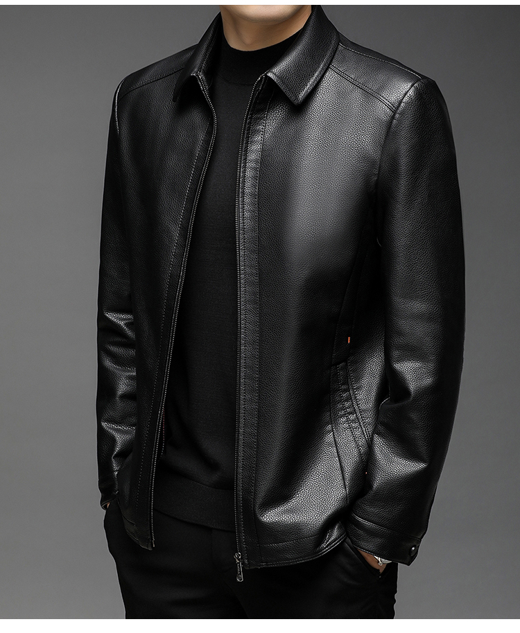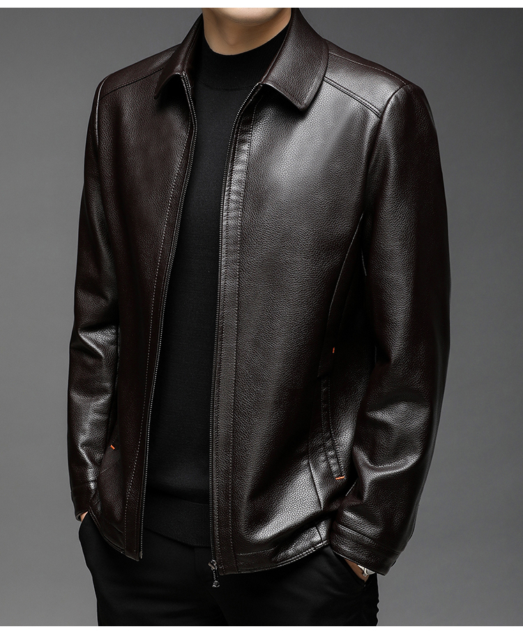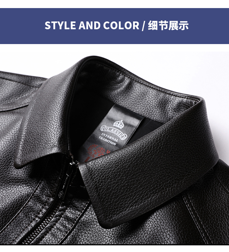 海宁进口头层牛皮皮衣男加绒加厚短款中年秋冬真皮皮夹克爸爸外套
