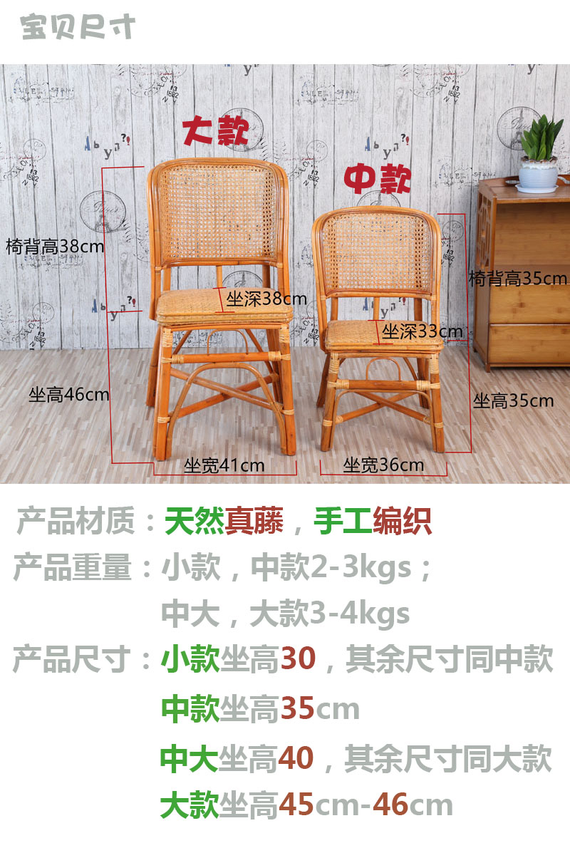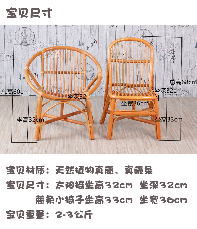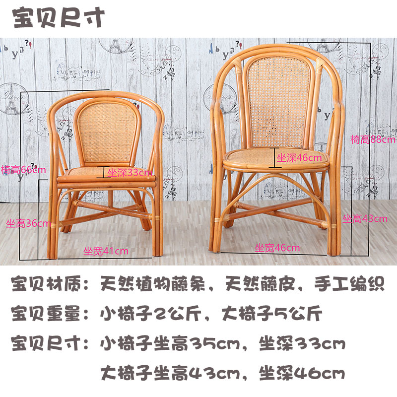 小藤椅子靠背椅天然藤编织家用餐椅儿童椅单人休闲阳台书房送老人