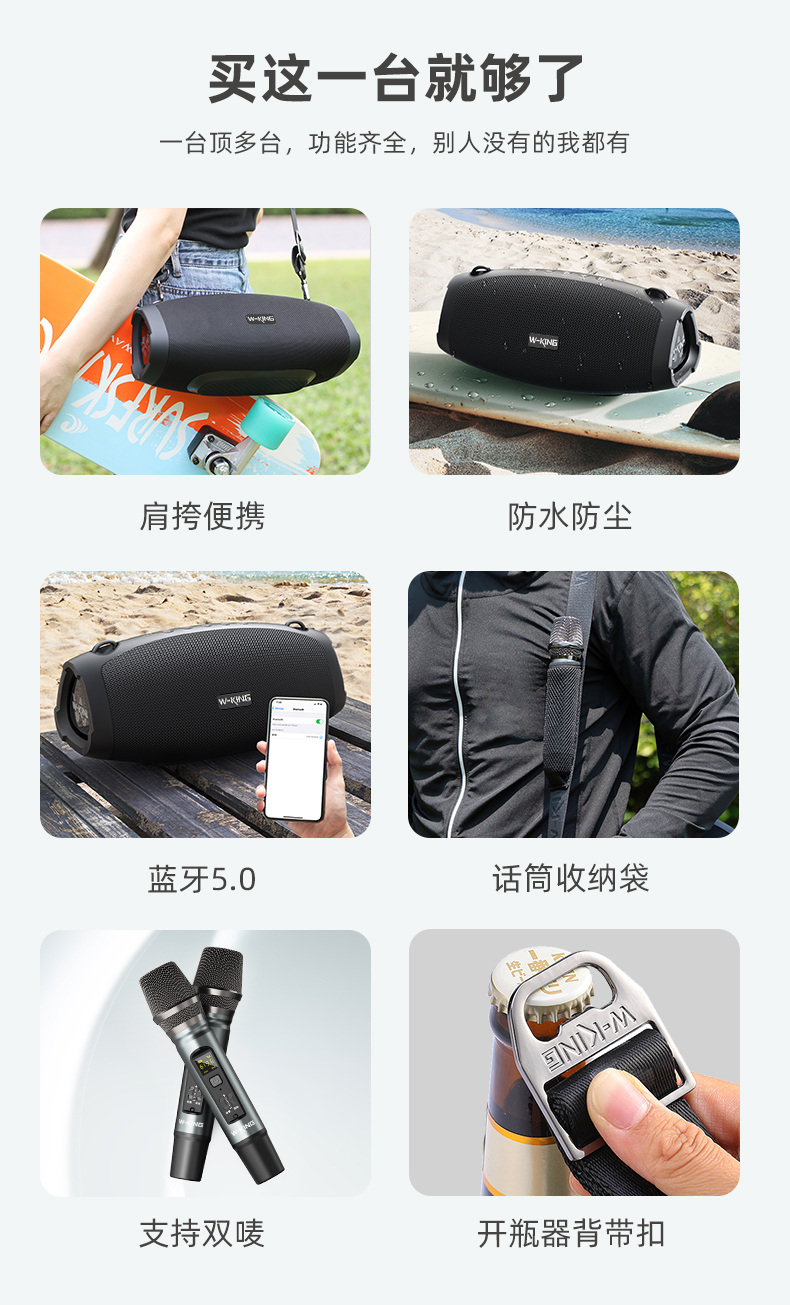 维尔晶D10+户外防水便携式K歌斜挎式唱歌低音炮蓝牙音箱家庭KTV