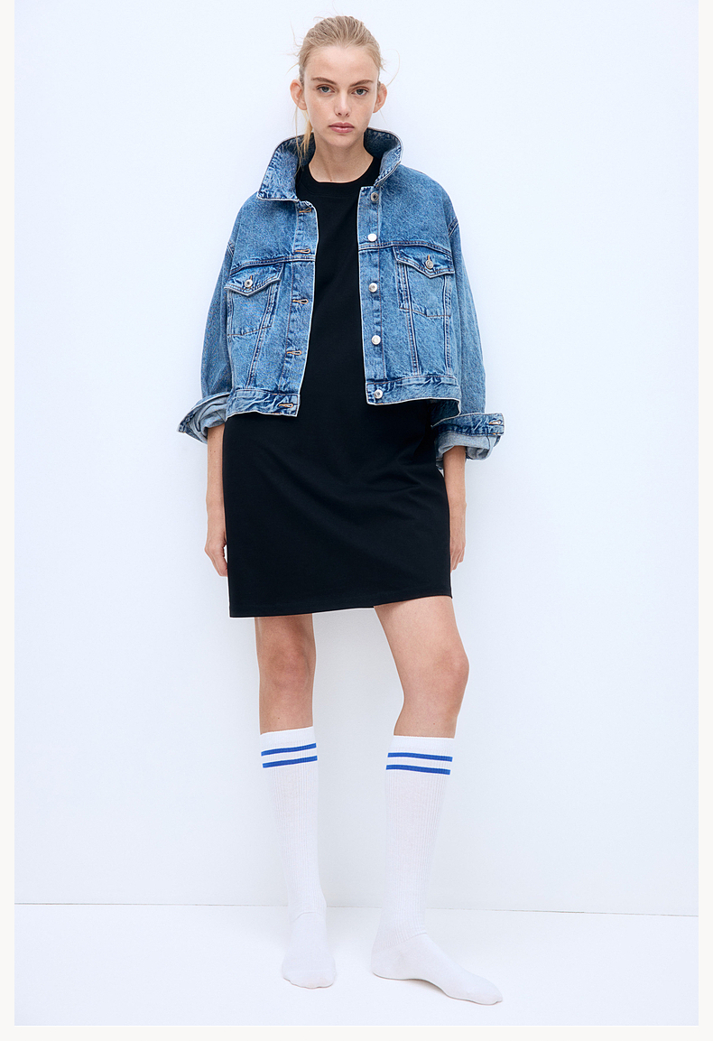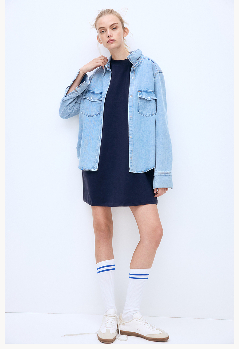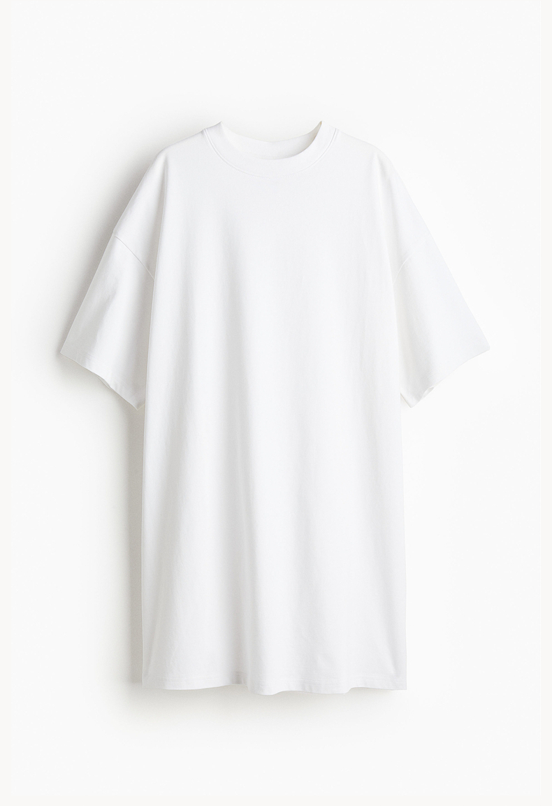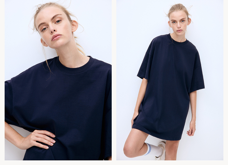 HM女装连衣裙2025夏季新款大码宽松柔软棉质短袖T恤式短裙1128506