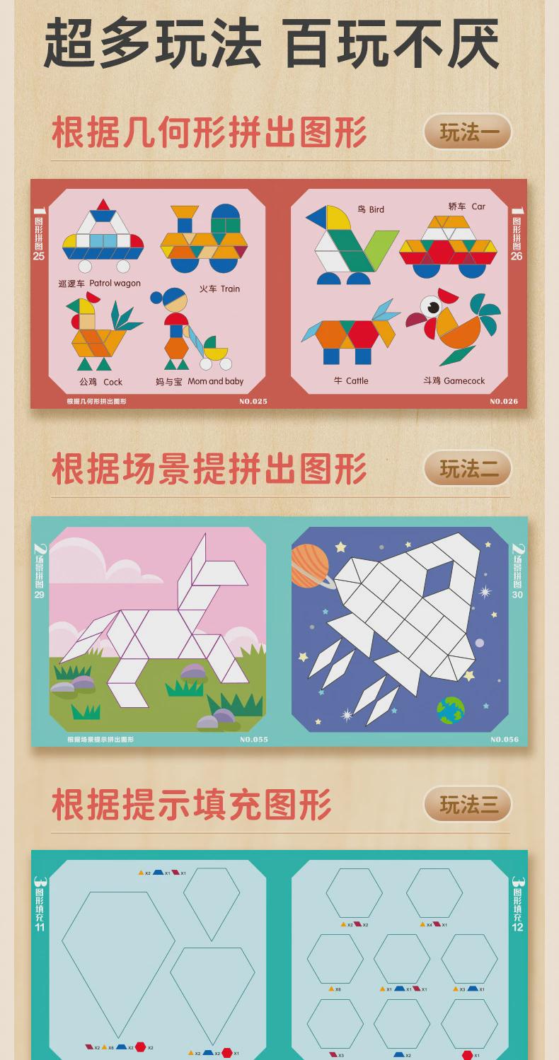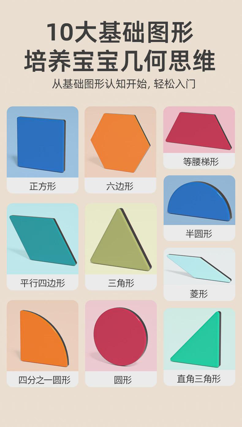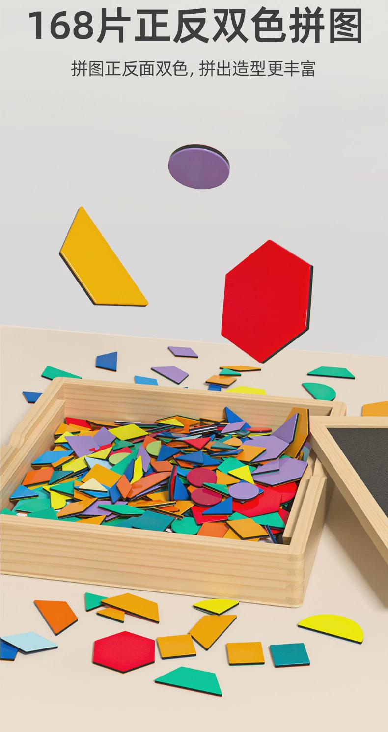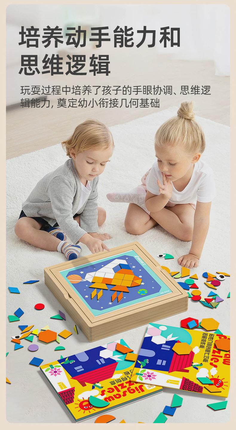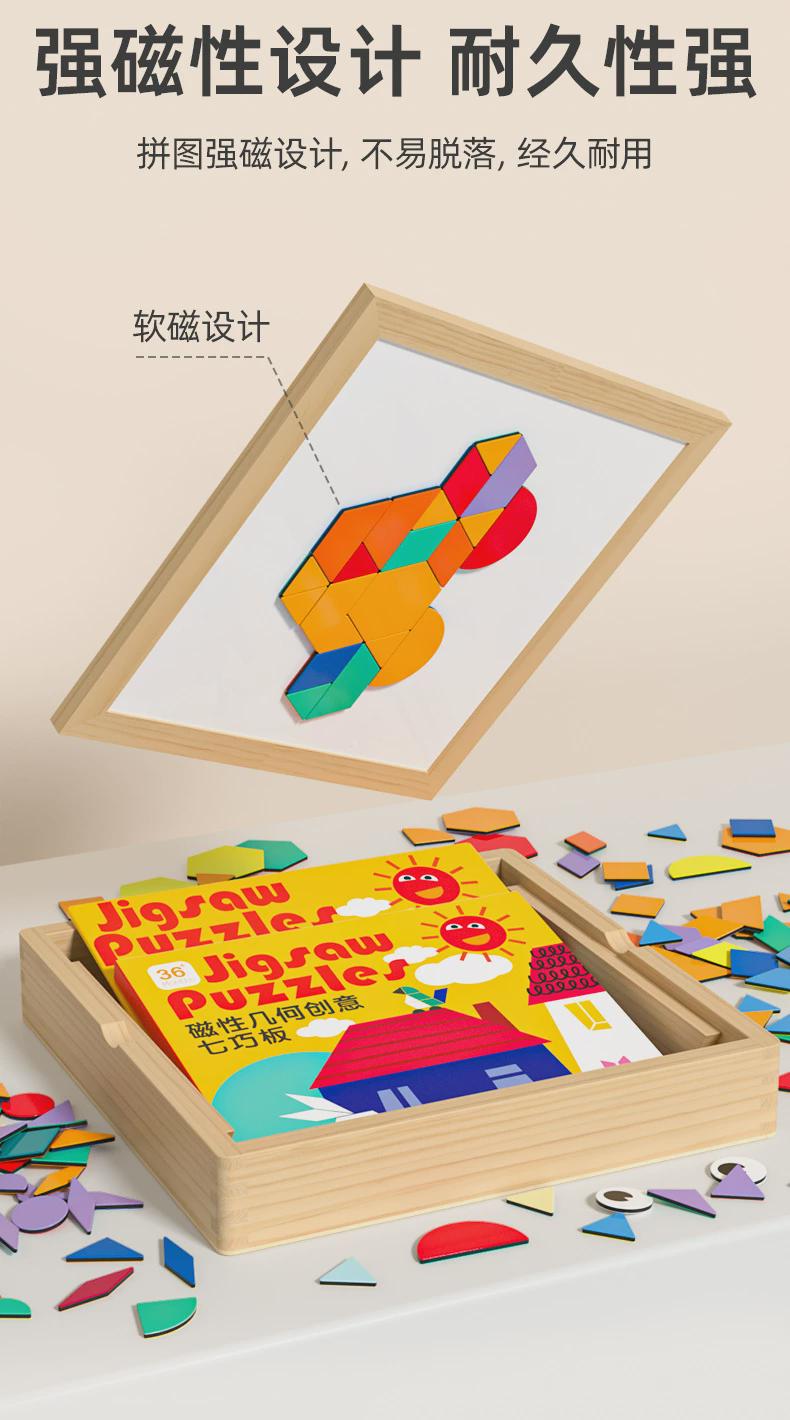 木制创意图形拼图拼板磁性几何七巧板训练宝宝逻辑思维动手能力