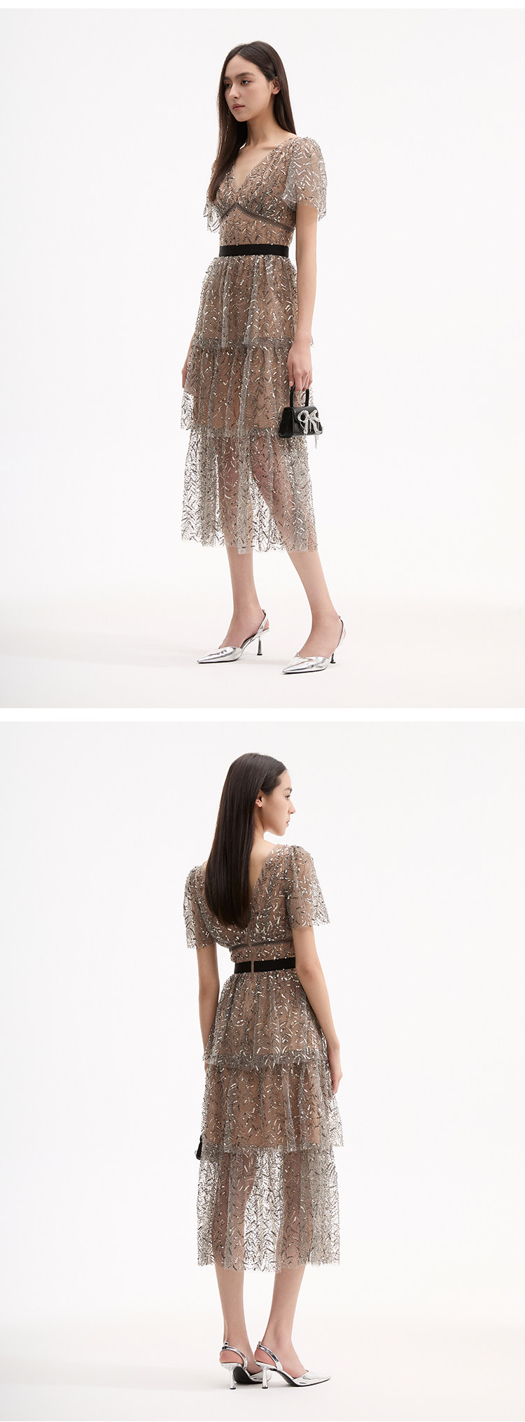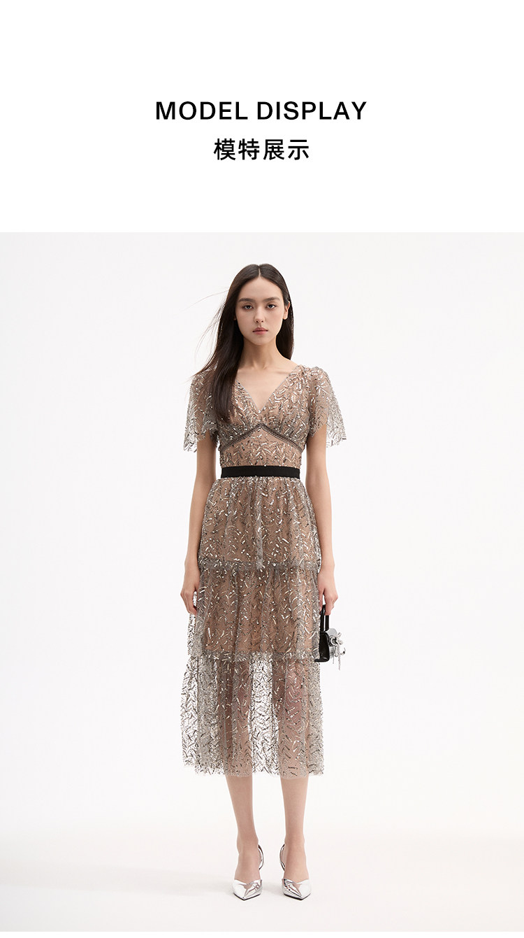 self-portrait 春夏树叶亮片重工钉珠晚宴会轻礼服仙女长裙连衣裙