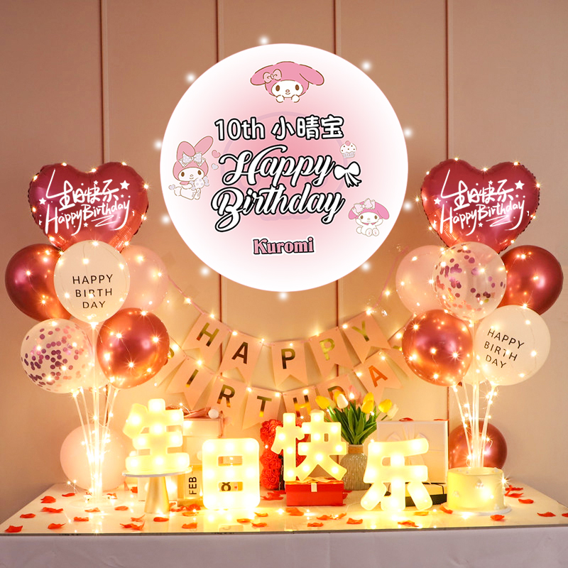 库洛米美乐蒂生日装饰品发光灯惊喜派对装饰场景布置女孩气球海报