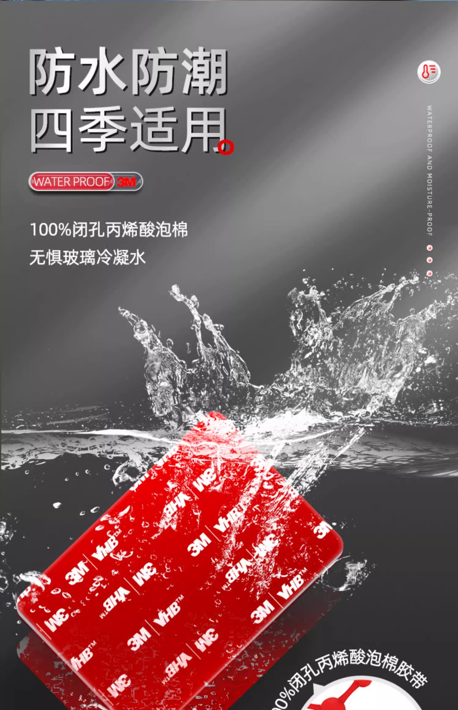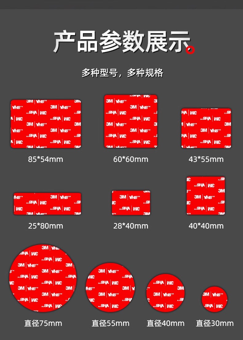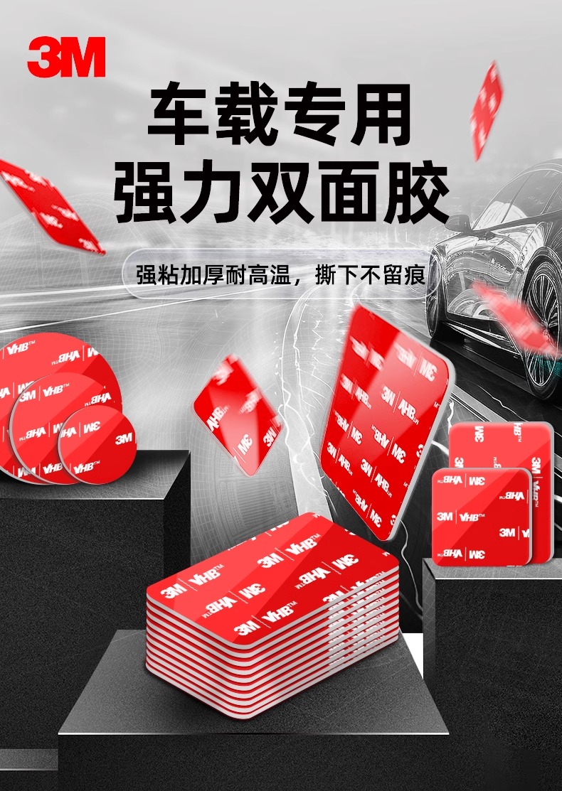 3m耐高温双面胶强力高粘度汽车专用手机支架背胶条防水无痕粘贴片